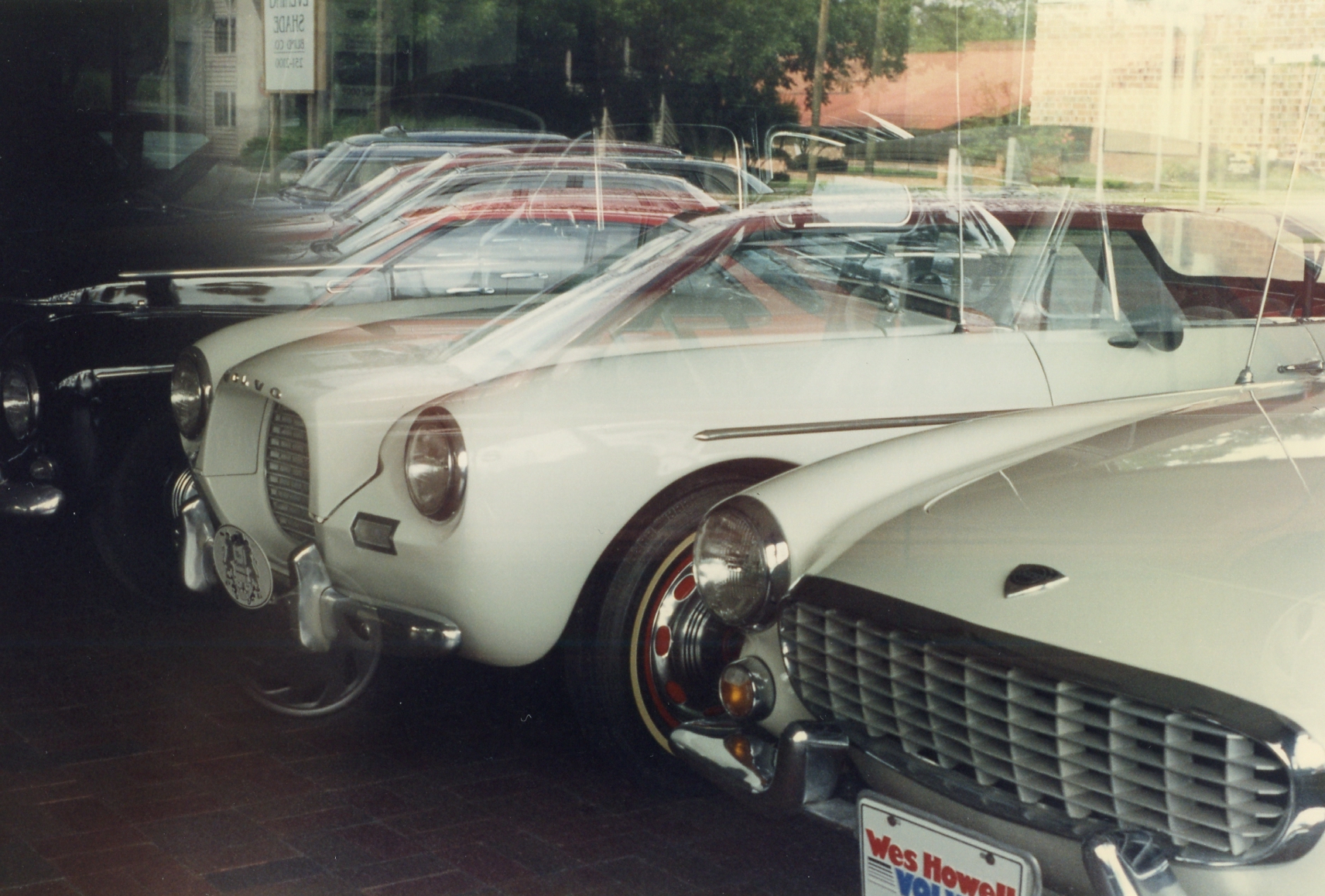 The P1900 came back to my attention when I found the photographs of the Volvo ECC which were the subject of last week’s blog post. I also found photos taken in 1994 during a family reunion trip to North Carolina. I had seen a For Sale ad, likely in Old Cars Weekly, for a Volvo P1900 for sale. The car was at a Volvo dealer, Wes Howell Volvo in Wilmington, NC, so we swung by on our way down. Unfortunately, the only day we could visit was a Sunday, when the dealer was closed, so my photos were taken through a showroom window. This was the first time I had seen a P1900 in the “fiberglass.” The asking price was somewhere in the mid-to-high teens, which I didn’t have, and besides, I was trying to finish the Isetta, and didn’t need another distraction!