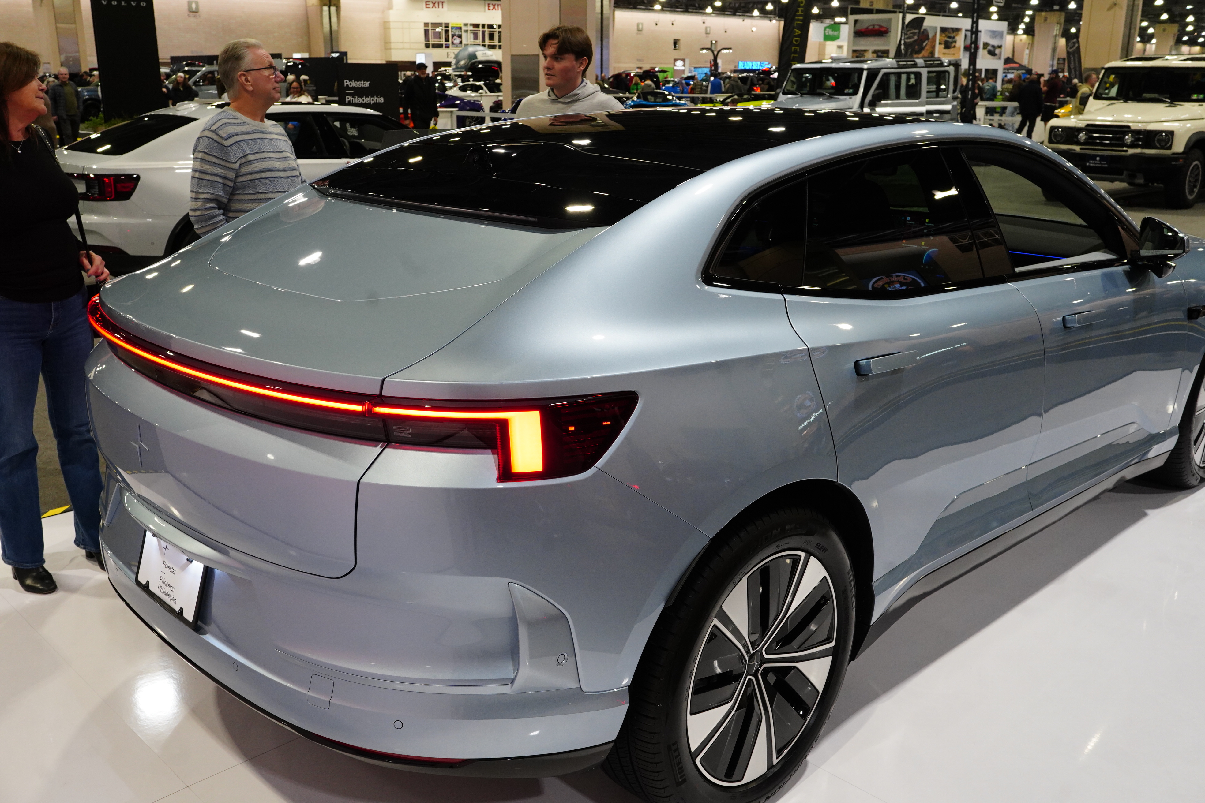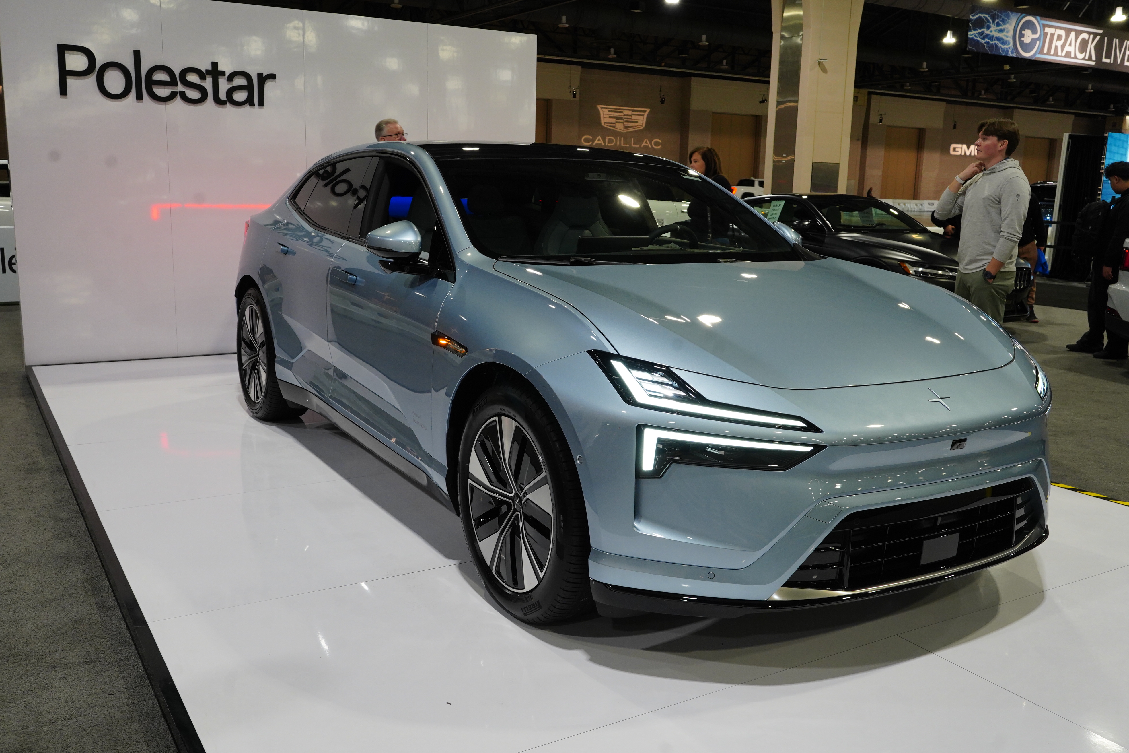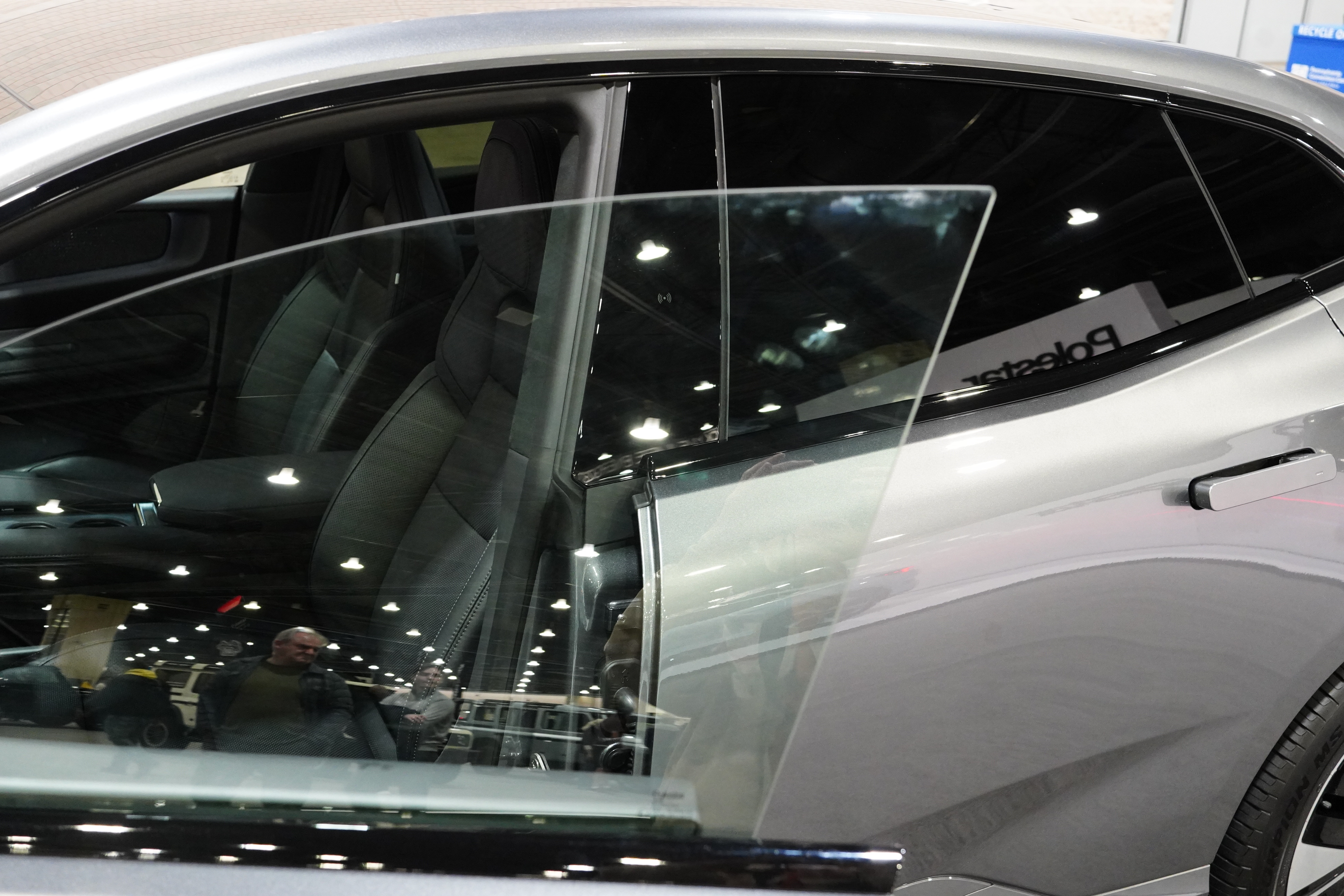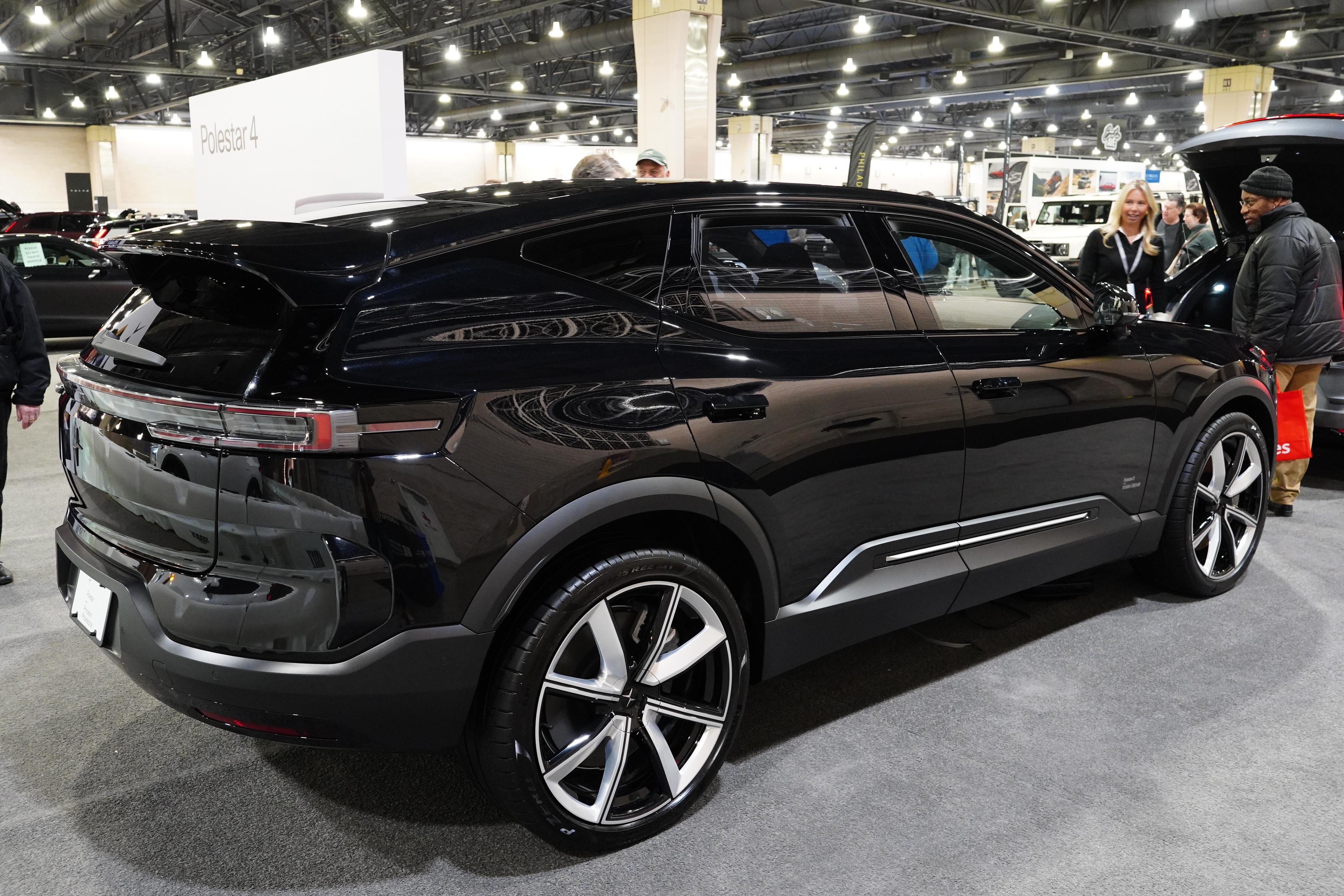 As mentioned above, it was the local dealer which populated the Polestar display, and it included the cleverly-named Polestar 1, 2, 3, and 4 models. All kidding aside, the 1 and 2 are out of production, and the cars on the floor were used cars for sale. (I thought the 2024 Polestar 2 with an asking price of $36,888 to be a bit of a bargain. I had one for a weekend, which you can read about here.) The new Polestars were the 3 and the 4. The 3 is the large SUV, but again, the black paint did nothing to accentuate its rather nice lines. The 4 is the controversial one, as it has no rear window, and the inside rear view mirror is a camera. From what I’ve read, drivers who wear glasses might struggle with a poorly defined depth of field. I must also ask: what happens when (sad to say, not “if,” but “when”) the mirror/camera goes on the blink and you no longer have any vision of what’s directly behind you?