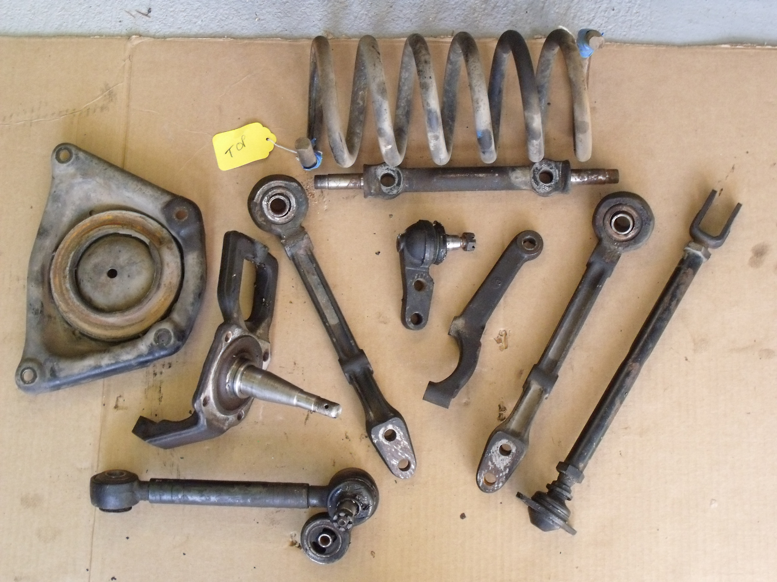 DSCF9130 March 22, 2015March 22, 2015 RichardReina The spring, spring seat, spindle, control arms, steering linkage, and caster rod, ready for cleaning and painting.