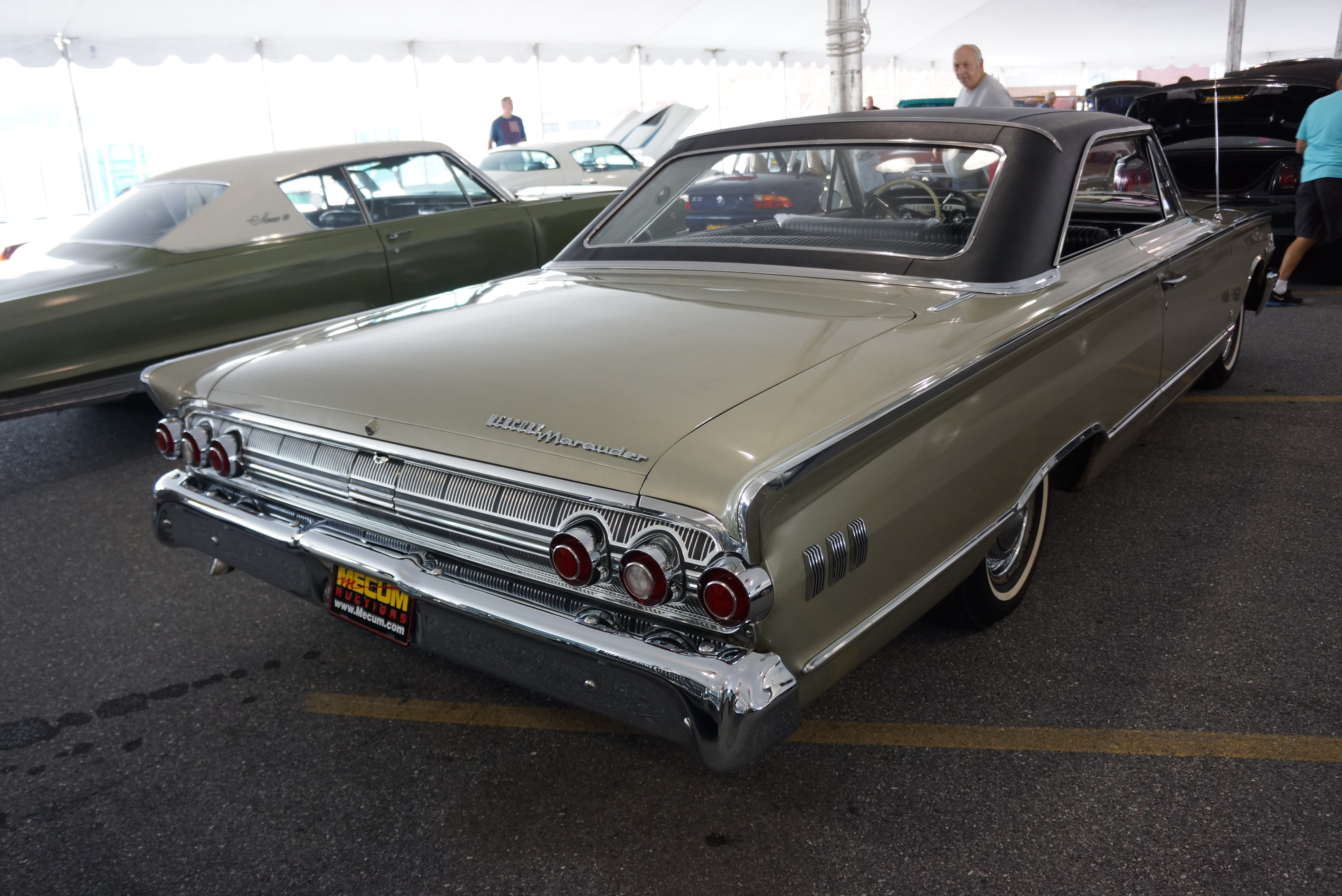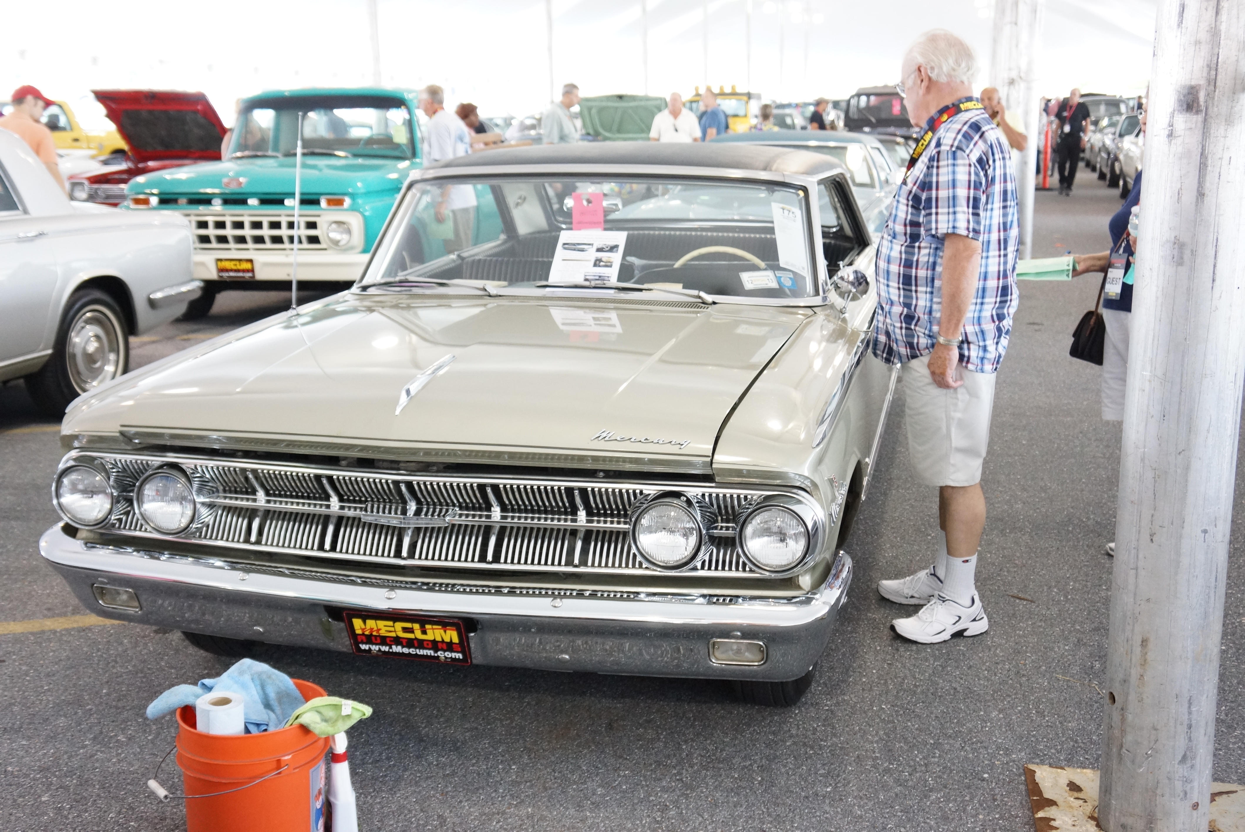 The Big Day arrived soon enough. We were on site by 8 a.m. in order to secure a close parking spot for the daily driver, detail the ‘63, and chat up any potential prospects. Fears that we would not have an audience due to our rather early time slot were allayed when we saw A) the mob lined up at this hour to get into the building, and B) all the attention the Mercury was getting under the tent. Of course, there were about 150 other cars sharing the tent with us, many of them real beauties. But surreptitious listening to observers’ comments reinforced what we already knew: this was a nice car. Most onlookers told each other (or us) that it was great to see such a rare car; that the car’s condition was “fantastic” for an unrestored vehicle; and that it was one of the more striking cars in the tent that morning. We were feeling good! One gentleman in particular lingered long enough that he asked for the car to be started, and he was the only one to peer into the trunk. He told Larry that he would be bidding.
