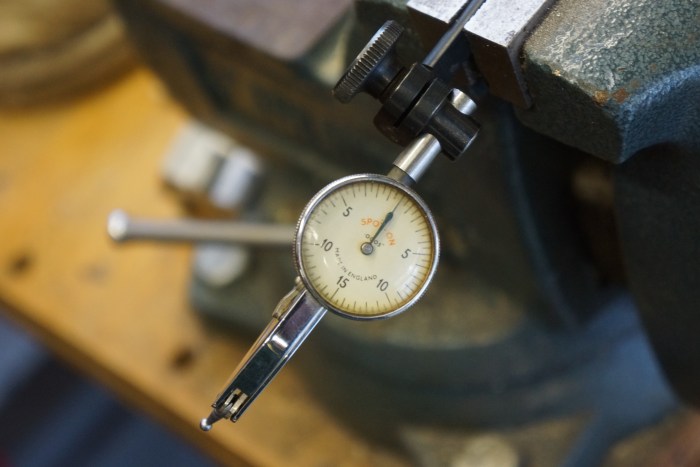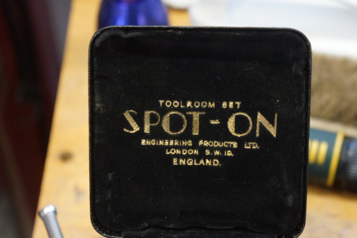 Spot-On Engineering Products of London England produced this lovely dial indicator, in its own protective hard-shell case. Little else is known about Spot-On, at least based on futile Google searches. However, the tool lives on in my garage, seeing occasional use for run-out measurements. It’s delightful to operate, and I especially enjoy watching the dial move around the face of the gauge.