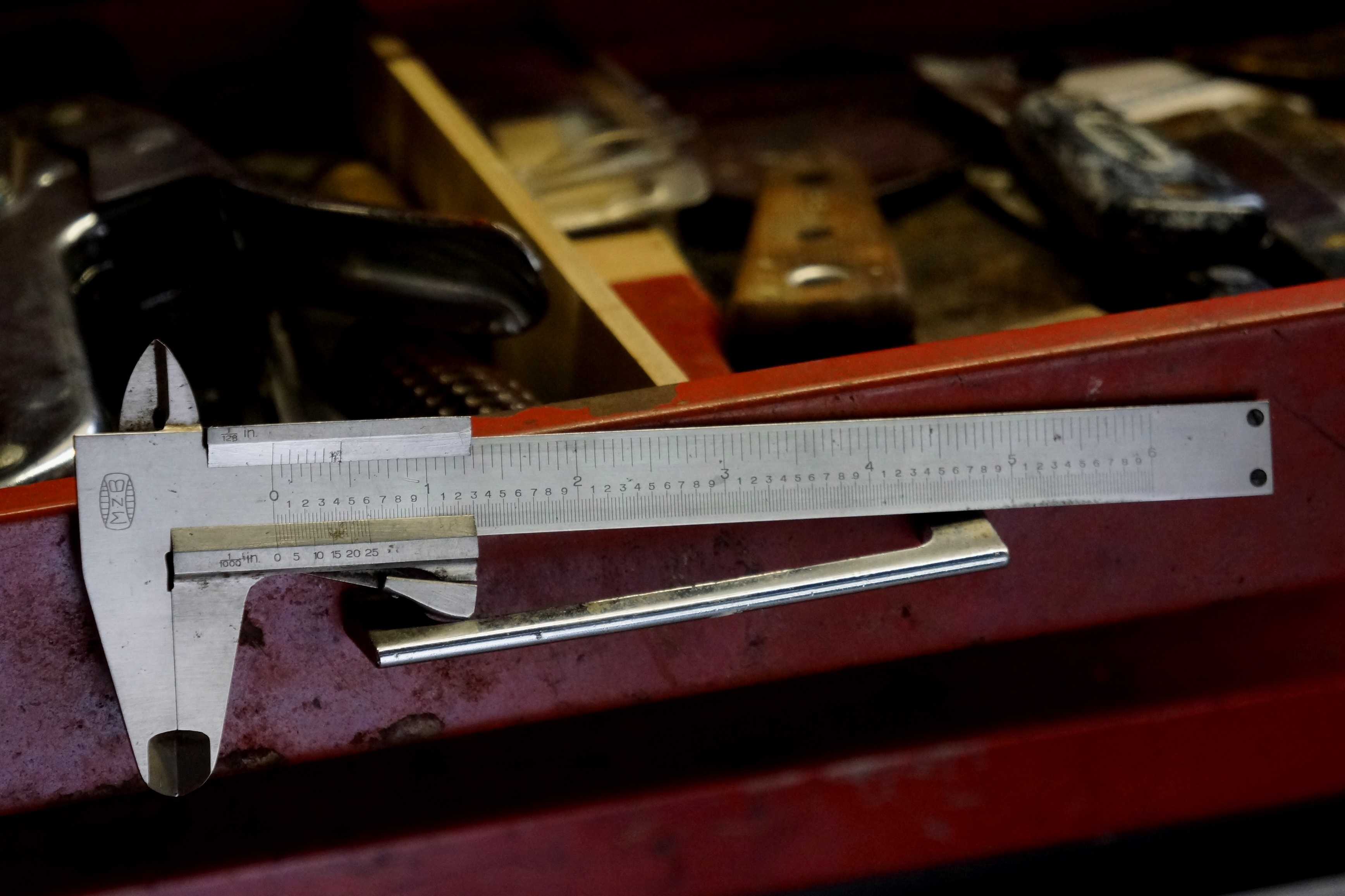 While it’s a cliche to say “they don’t make ‘em like they used to”, in many cases they don’t (but in some cases they still do!). To the point: these measuring tools, each about 60-70 years old in my estimation. Their metal composition gives them heft in the hand, yet operating their slides and dials is to exercise their silky smoothness. Their markings are for the most part stamped into their faces; no printing or transferring to wear away. They feel like they will last another 75 years. They may see infrequent use; but there is no doubt that they have maintained their measuring accuracy.