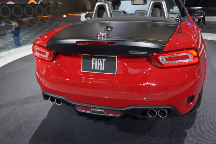 The star on the Fiat stand was the new 124 Spider, due to go on sale later this year. Most know that the 124 shares its platform and interior with the new, 4th generation Mazda MX-5 Miata. The Fiat has unique sheetmetal, and uses an FCA 1.4L turbo engine. There were only two on display: an “Azzurro” first edition car, and a red/black Abarth. The Spider looks much better in person, and seeing it up close brought home the realization that it looks nothing like its Mazda sibling, other than the fact that they are both 2-door convertibles.