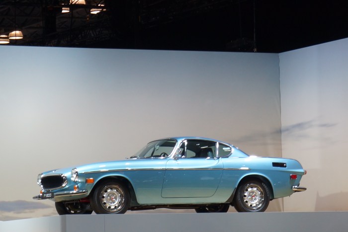 My former employer surprised me by having the new S90 sedan at the show. The rear end treatment, polarizing in pictures, looked softer and more integrated in person. Volvo cleverly displayed not one but two 1800 coupes, one white and one blue, high above the ground. And what other automaker would think to display an elk at an auto show?