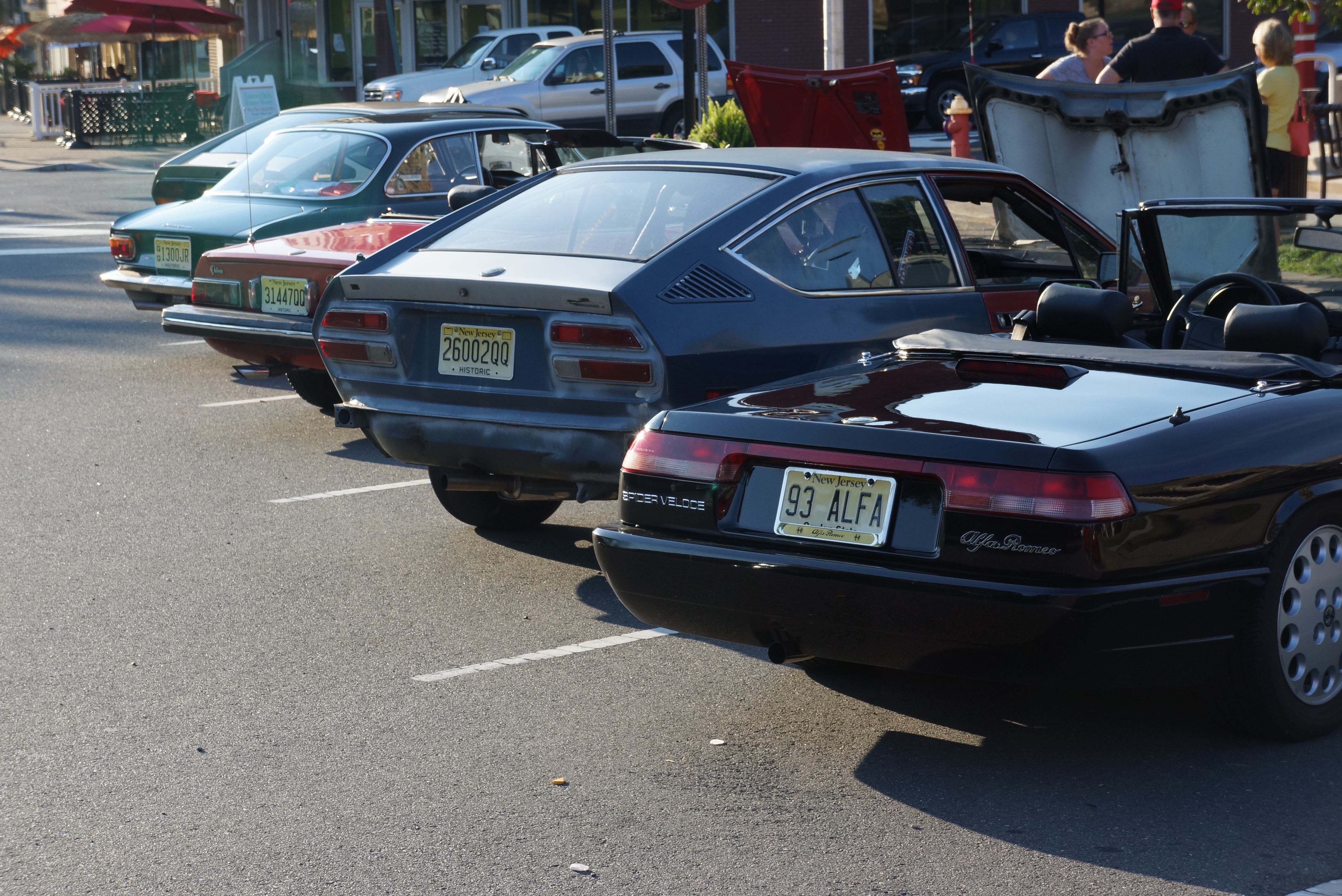 The Friday tradition known as the Somerville NJ cruise night took place as expected on August 26, 2016. However, the usual swarm of domestic muscle cars and old-school hot rods was invaded by members from the NJ Region of the Alfa Romeo Owners Club (AROC). In total, there were 9 Alfa Romeos present, which was an excellent showing for this sweltering late summer evening.