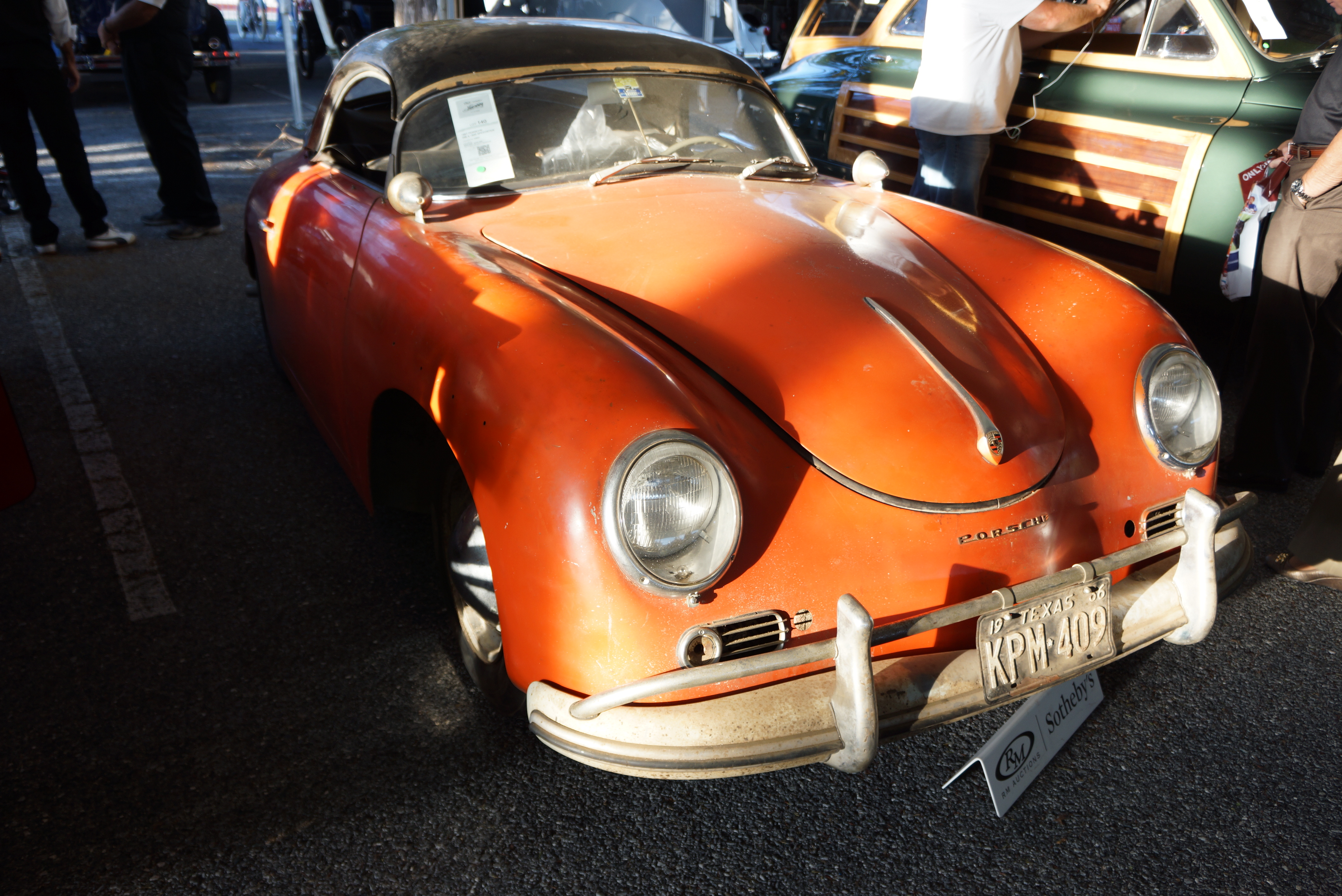 Lot #140, 1957 Porsche 356A Speedster, orange, black hardtop, black interior. 60-hp 4-cylinder engine, 4-speed manual. Pre-sale estimate of $200-250,000