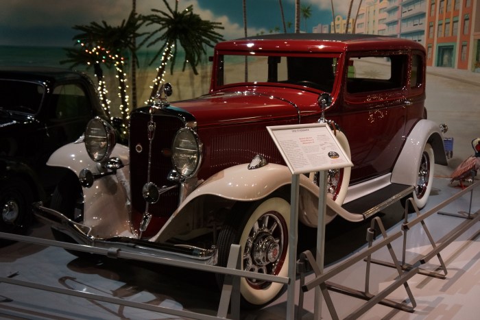 The trip was planned weeks ago as a “rain or shine” event, and our travels were assuaged by riding in modern chariots, that is, two brand new Volvo XC90 SUVs. After an obligatory Dunkin’ Donuts stop, we were at the Museum by 11 a.m. Once there, Museum employees informed us that the basement had been emptied of many of its cars in preparation for an afternoon private event, so the daily admission fee was discounted. (AACA members are granted free entry.) But with the main floor fully stocked, there was plenty to see.