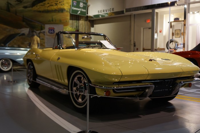 A mid-60s Corvette is the centerpiece display of numerous Chevrolets