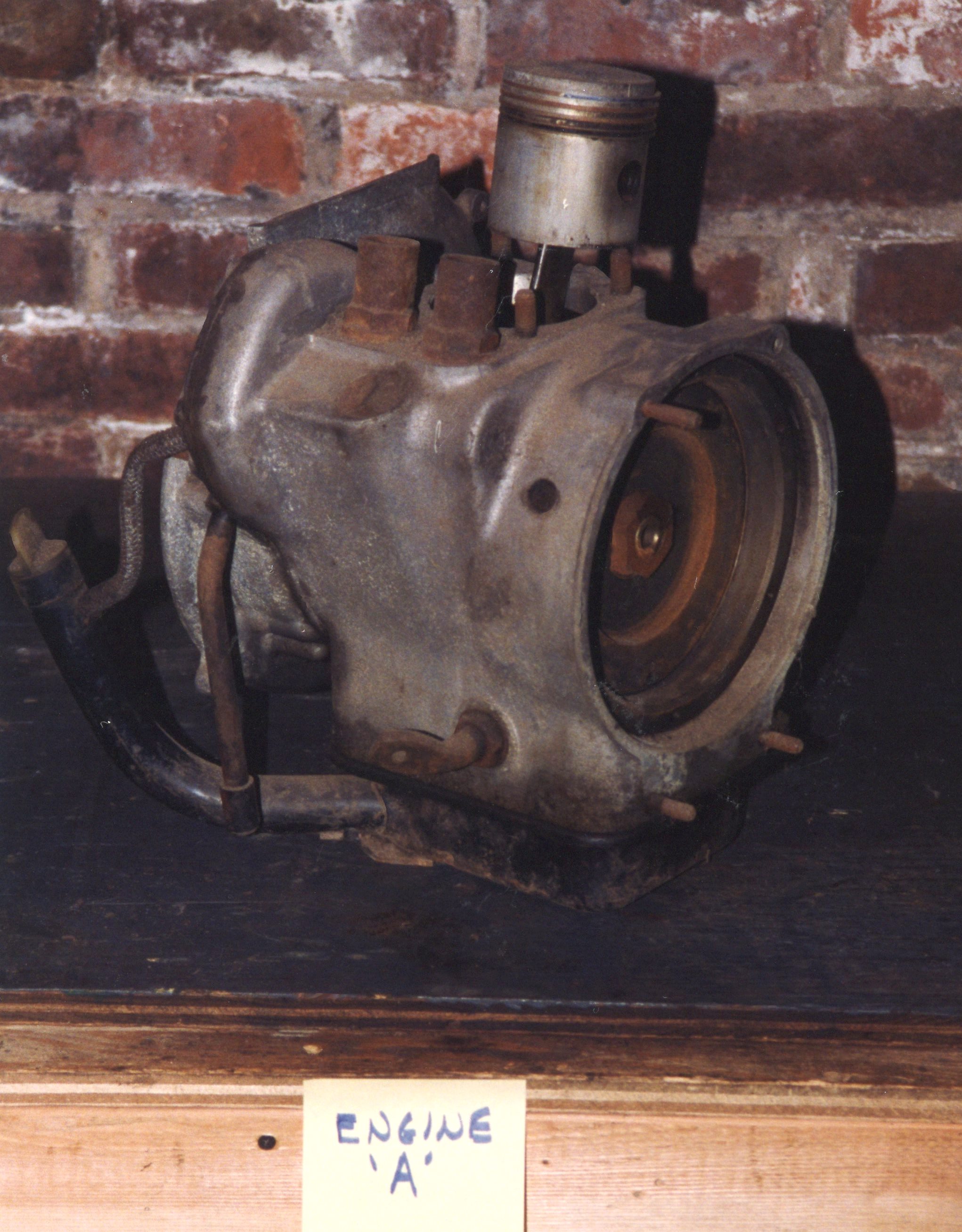 Engine A on plywood stand, about to be disassembled (stand is bolted to workbench)