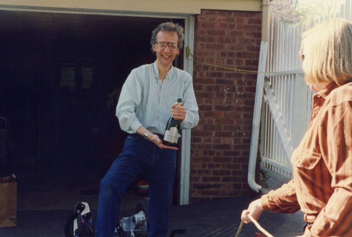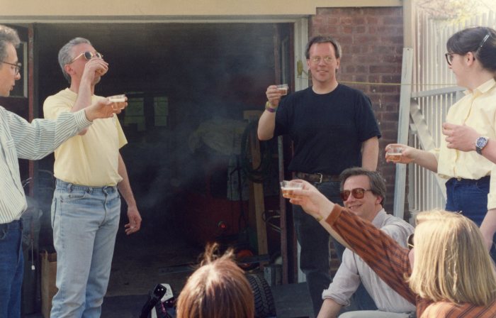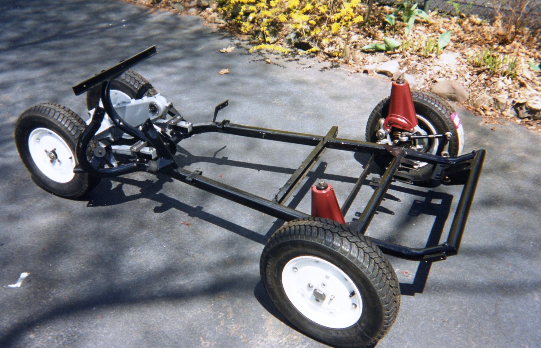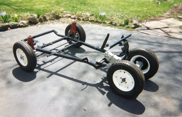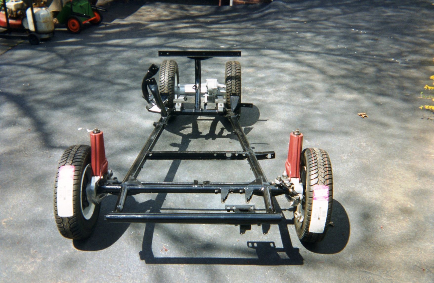 Turning my attention back to the chassis, the restoration of the rear axle along with its various attachment points brought me that much closer to a very important goal: the completion of a chassis rolling on its own four wheels. That goal was reached early in 1994, and I celebrated that accomplishment by throwing a party. Why not?