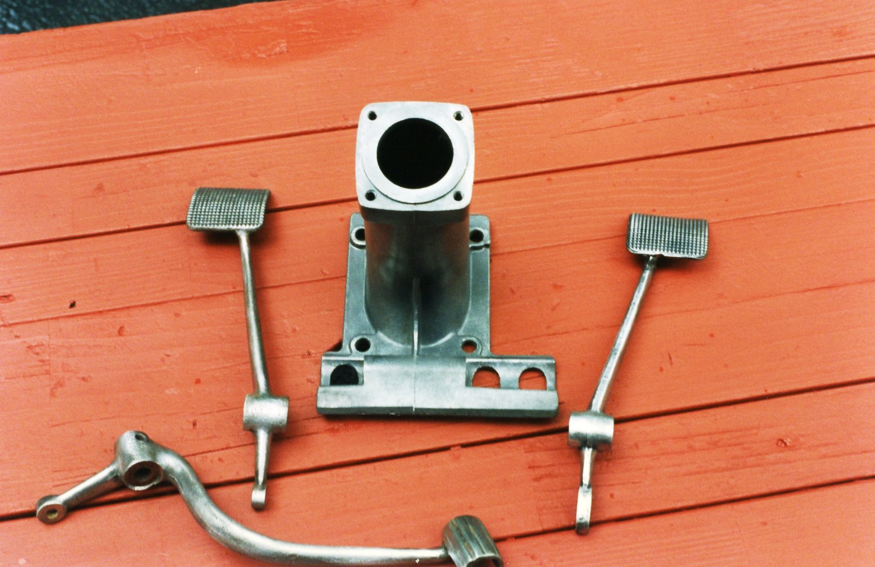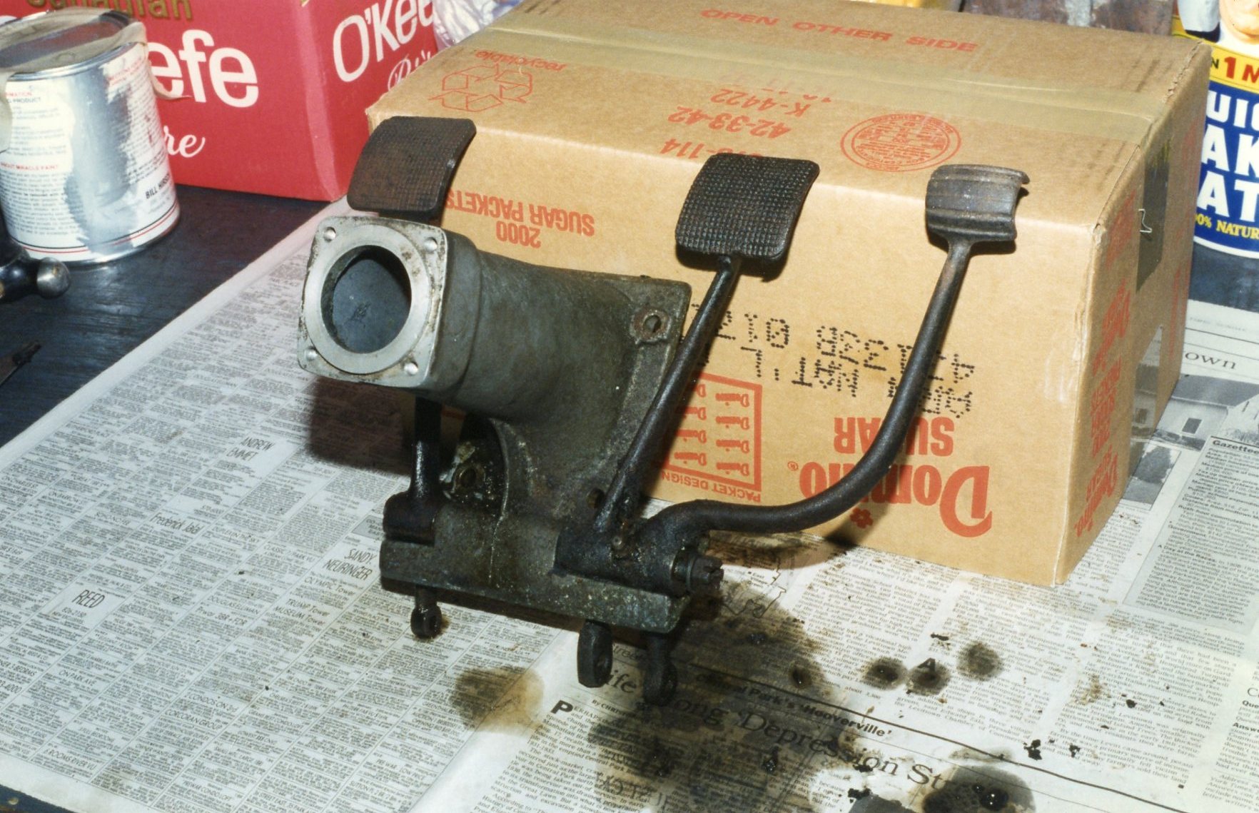 The assembly came apart easily enough, and the metal pedals were cleaned and painted, just like so many other parts. Knowing that the pedal surfaces would eventually show some wear, I applied extra coats of paint to them, and decided that if I drove the car enough to create evidence of use on the pedals, I’d just call it “patina”.
