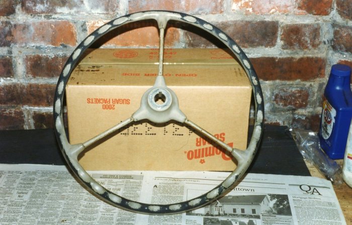 My steering wheel had minimal cracks, and based on some discussions I had with steering wheel restoration companies at Carlisle, I wasn’t about to pay what they wanted to restore a wheel. It looked to me that a complete sanding and recoating of the wheel would get me to where I wanted to be with it.