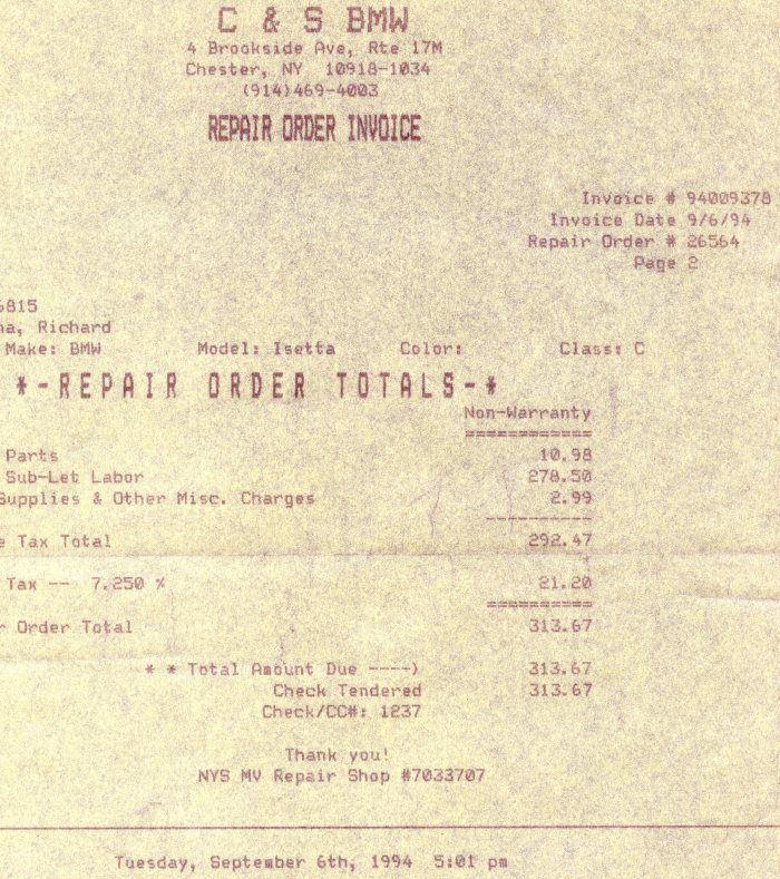 Next time in the Isetta Saga: 1995 arrives. I said that “The Isetta Will Drive in ’95”. But will it? The year starts auspiciously, as I explore a risky way to purchase all the parts I’m still missing.