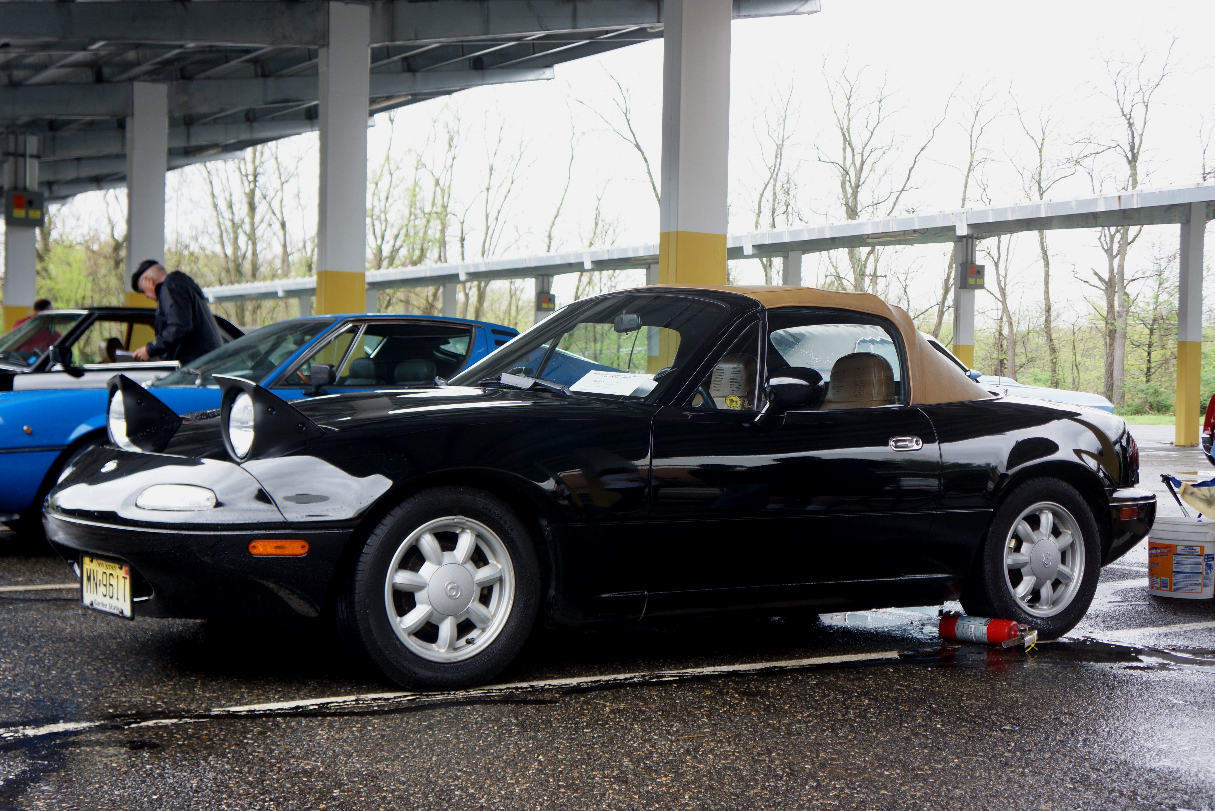 But it is about the cars, and we still had gorgeous vehicles (and their owners) braving the elements. Below is a selection of today’s cars arranged in model year order. Your scribe entered his 1993 Mazda Miata, which at 25 years of age this year, is officially allowed to enter AACA events. Its owner is also humbled to state that the Miata took first in its class (#13b, imported two-seater cars), and it was also awarded a Membership Trophy for “Best Unrestored Car, 1976-1993”.
