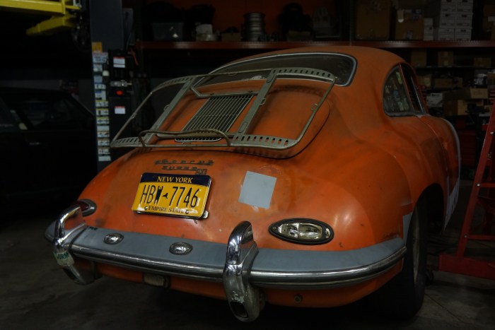 One corner of the garage is rented to a tech who specializes in Porsches. A 928 with its drivetrain removed was high up in the air, and next to it, on the ground, was a 356 coupe which appeared to be in original condition. It actually gave off the vibe of one of those barn-find 356s I’ve seen at auctions that hammer for 300 large.