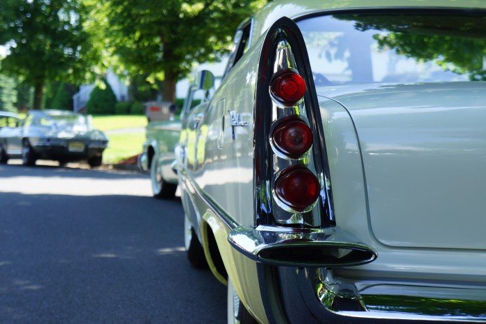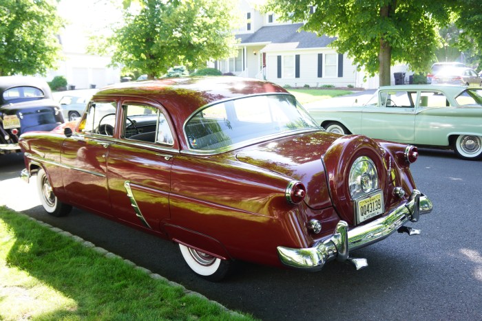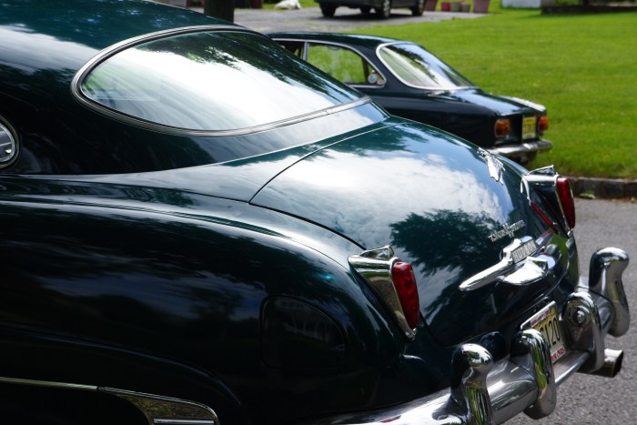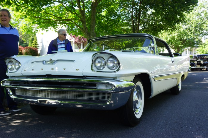 The splendid late May weather helped produce an excellent turnout for the club, with over 20 vehicles participating. The event chairperson, Bob Hudak, encouraged non-AACA members to also drive with us, as long as the vehicles were 25 years old or older. Several pre-war cars, including a 1929 LaSalle, a 1935 Packard, a 1939 Ford, and a 1940 Buick showed up. Orphan marques Hudson and DeSoto were there, as was good ol’ American muscle, amply represented by a 1966 Corvette 427 (still with its original owner). A new club member brought his pristine 1959 Ford 2-door sedan. And like last year, I was again the only driver with a non-domestic vehicle.