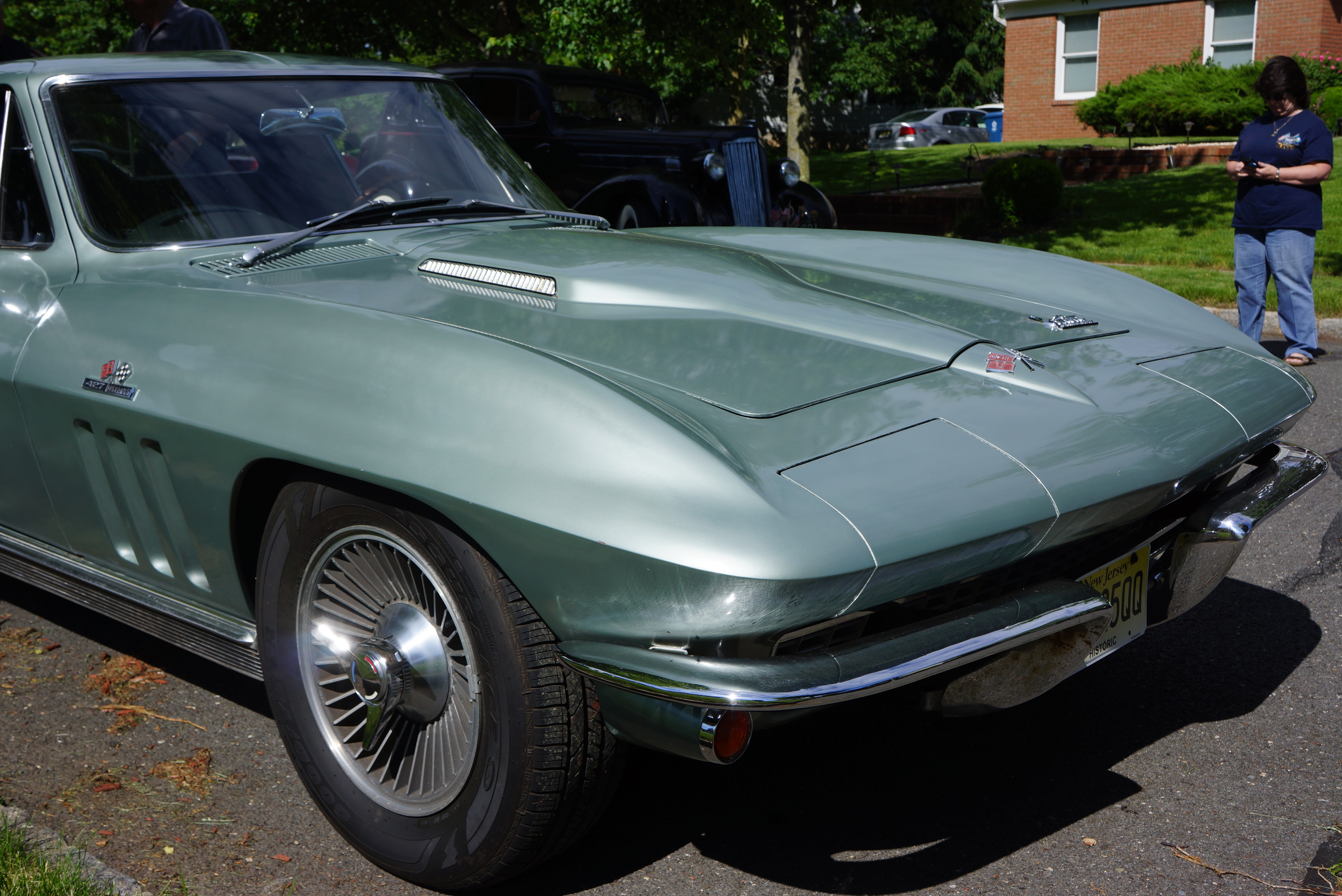 The splendid late May weather helped produce an excellent turnout for the club, with over 20 vehicles participating. The event chairperson, Bob Hudak, encouraged non-AACA members to also drive with us, as long as the vehicles were 25 years old or older. Several pre-war cars, including a 1929 LaSalle, a 1935 Packard, a 1939 Ford, and a 1940 Buick showed up. Orphan marques Hudson and DeSoto were there, as was good ol’ American muscle, amply represented by a 1966 Corvette 427 (still with its original owner). A new club member brought his pristine 1959 Ford 2-door sedan. And like last year, I was again the only driver with a non-domestic vehicle.