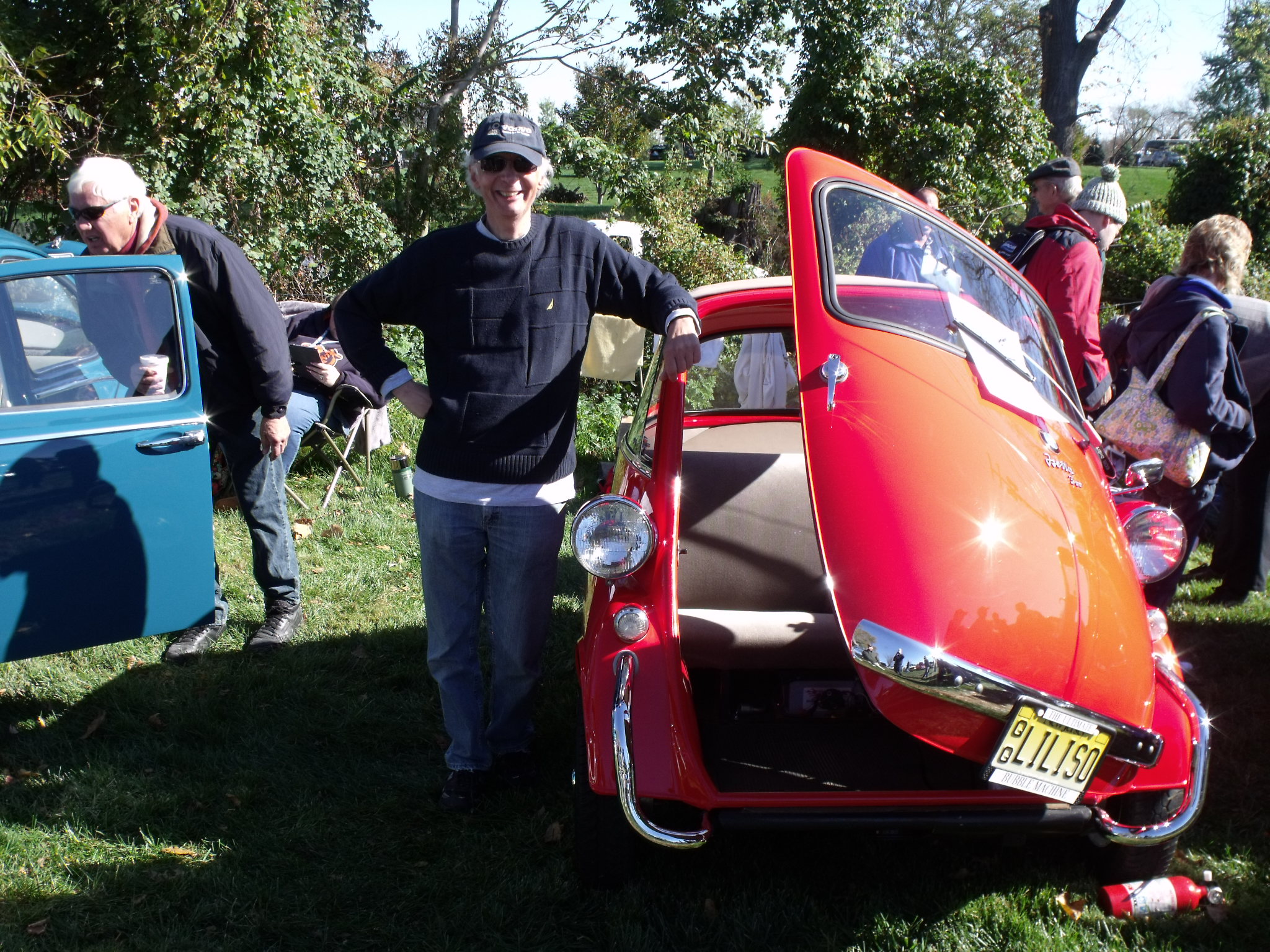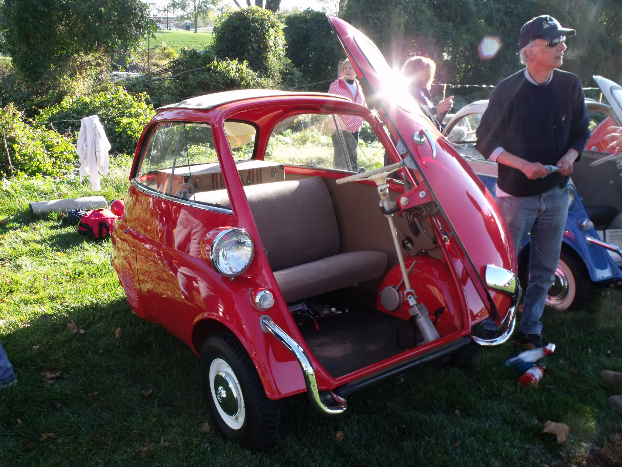 Once at the grounds, I was directed to my parking spot in Class 04B, “small vehicles 1942 and later” (04A is 1941 and older). I parked next to the only other Isetta at the show that day. Other cars in my class included a Vespa and several VW Beetles (which look large next to an Isetta). I exited the car, put up my signage, and stuck around as required for judging. The judging team was there soon enough to do their thing. Once that was done, I was free to walk around, but as is my wont, I preferred to stay near the car and engage with attendees.