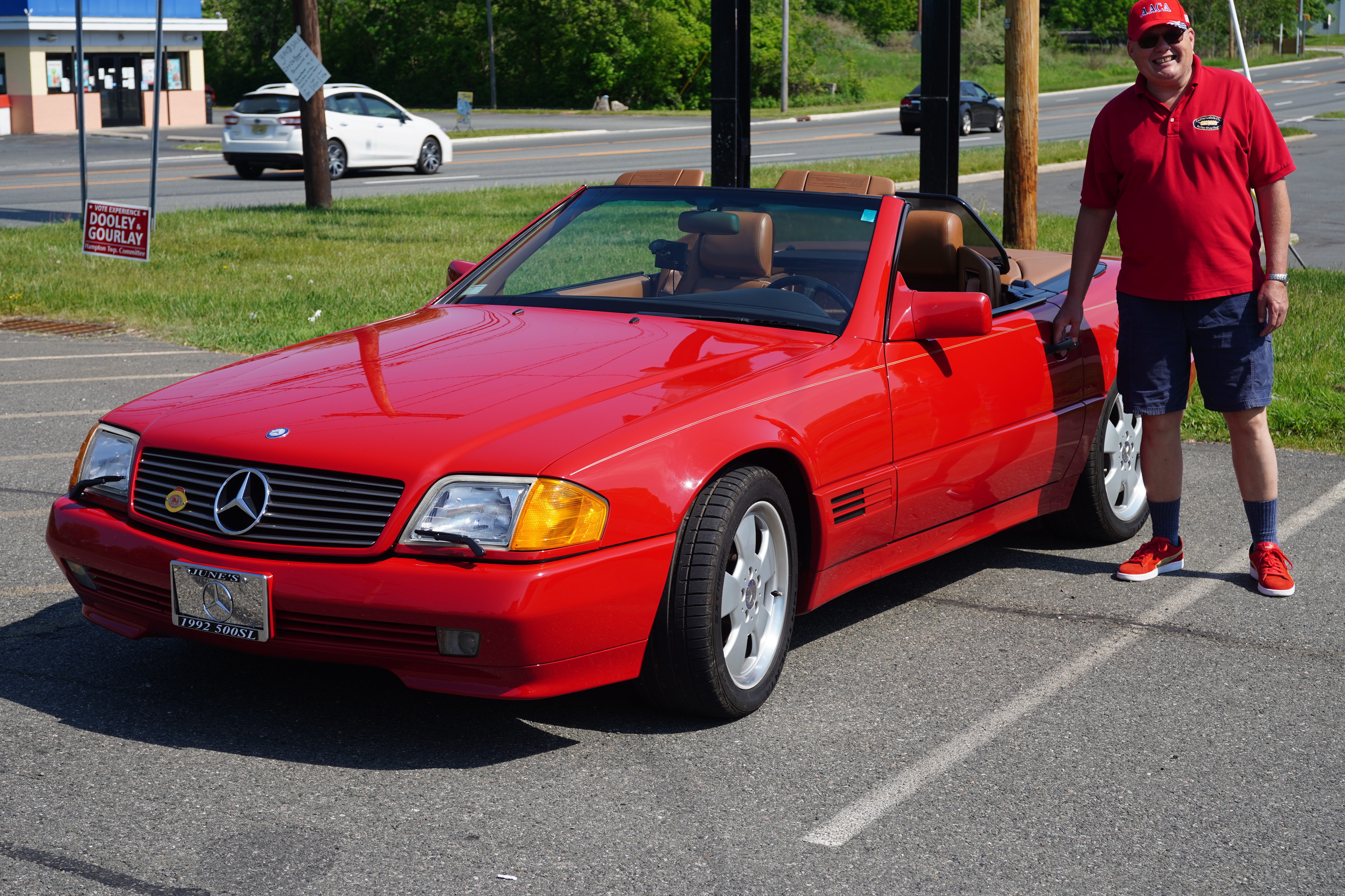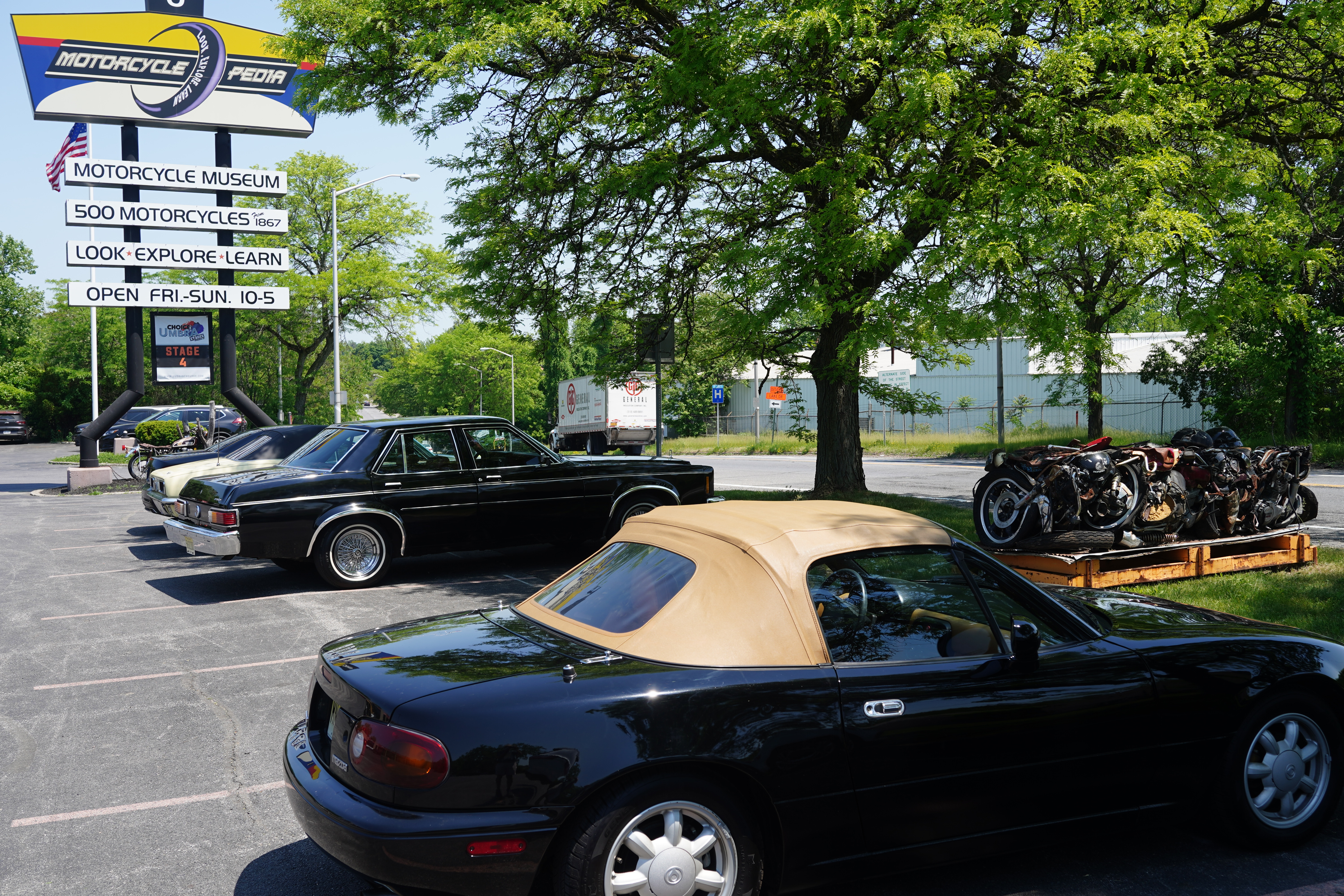 We convened at the Hampton Diner in Newton NJ, with breakfast an option for those who wished to partake. There appeared to be about 10 tour cars in the parking lot, ranging from a 1930 Model A Ford to a ’67 Camaro, an ‘80s Mustang, a 1978 Ford Granada, several Mercedes-Benz SL models, and my 1993 Miata. A brief driver’s meeting revealed that the day’s destination was the “MotorcyclePedia” motorcycle museum in Newburgh NY. Bill handed out turn-buy-turn directions and said that the drive, plotted to be scenic, would take about two hours. Most vehicles had two occupants, so those cars each had a driver and a navigator.