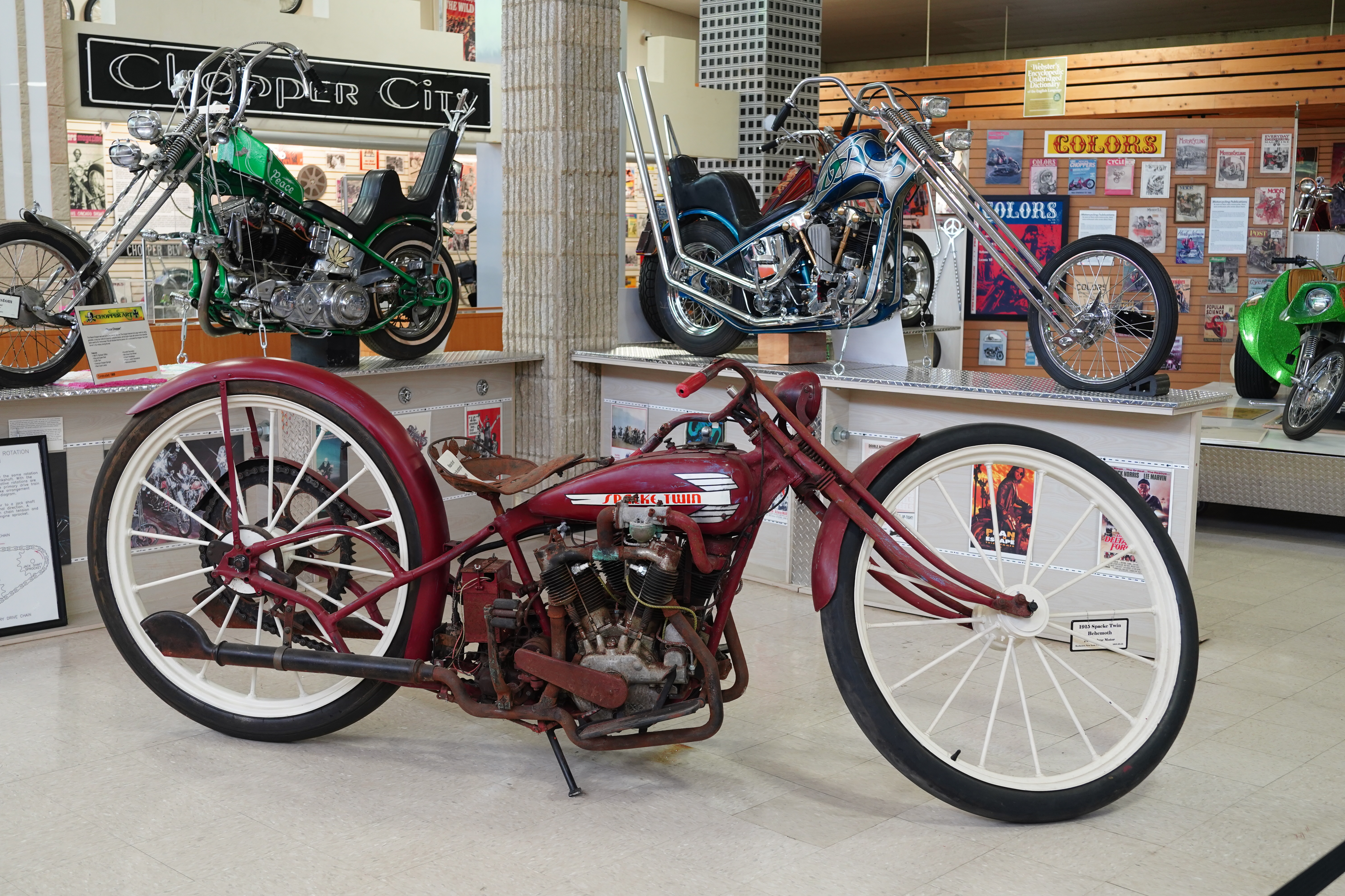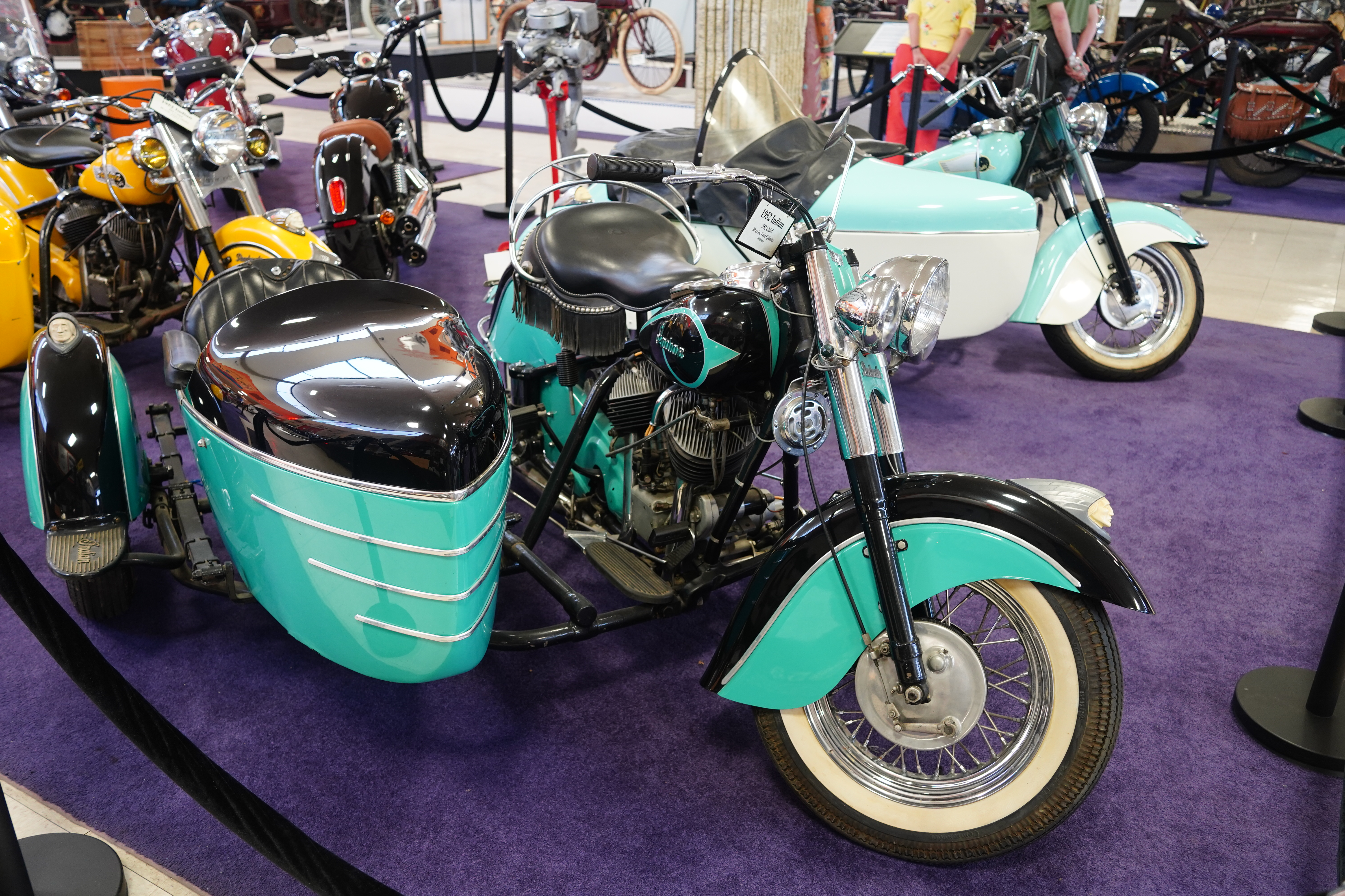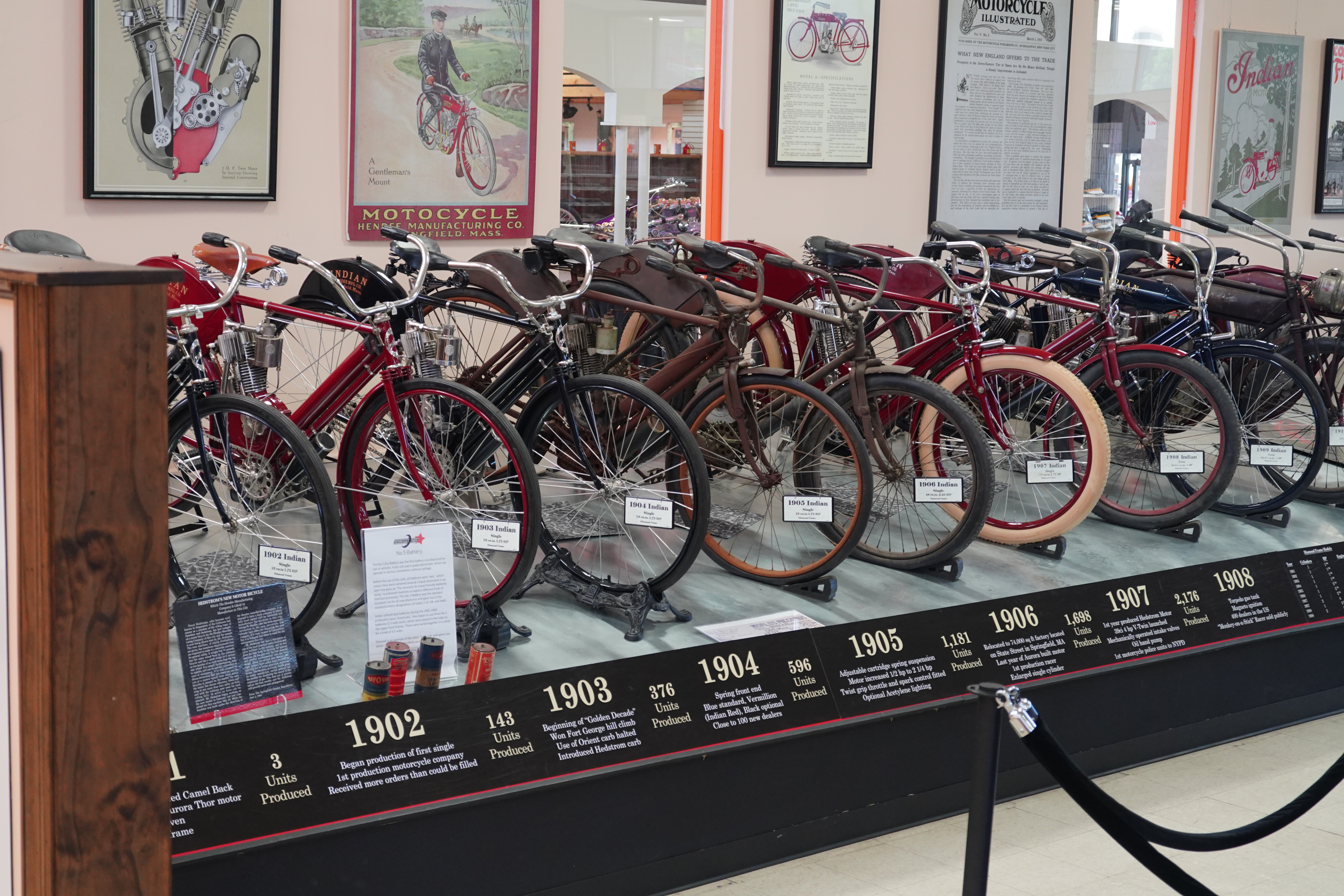 Motorcycles are not my thing; however, the inside of this museum was gorgeous! The lighting was superb, the displays were creatively arranged, the bikes were spotless, and there was the perfect mix of mechanical intricacy and historical perspective throughout. Of special note: one entire room, about half the museum, was devoted to the history of Indian motorcycles (that’s a brand for those not in the know). Gazing at machinery from the first decade of the 20th century brought home the reminder that the first “motorcycles” were nothing more that “motorized bicycles”, with many of them still wearing a pedal-operated crank set and a human-powered chain powering the rear wheel.