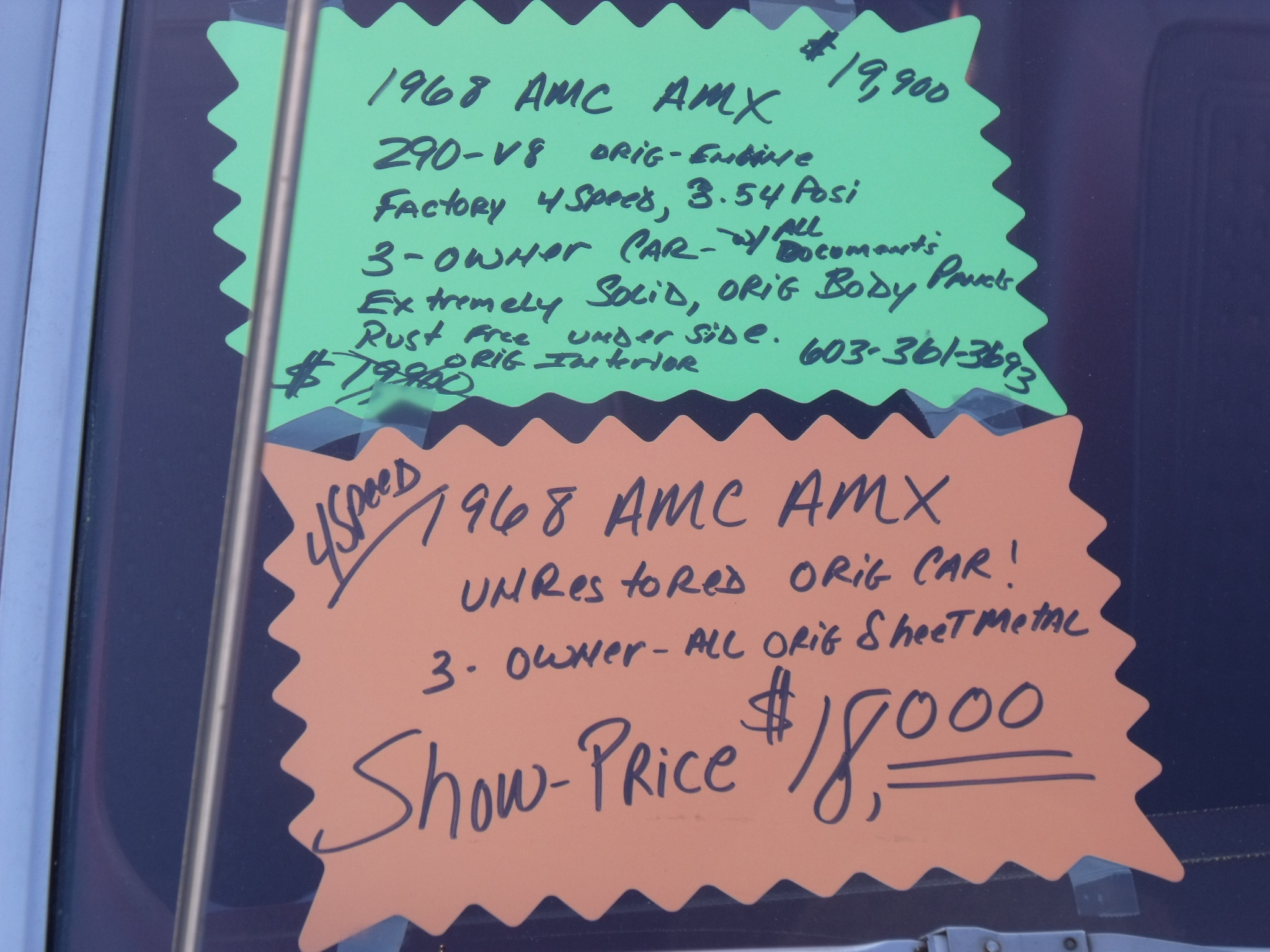 The original AMC AMX, which debuted in 1968 when I was a young teen, was a car I always found attractive. Its shortened wheelbase and deleted rear seat put it in a class above the typical pony cars of the day; I saw it as a more affordable version of that other 2-seat sports car, the Corvette. I photographed this one because I like silver over red. The price caught my eye too, compared to what you’d pay for a similar Camaro or Mustang. As it sat in the Car Corral, the price was dropping, so a deal could have been made. This one had the small 290 V8, and almost every first gen AMX on BaT is listed with the 390. My CPI value guide lists the ’68-’70 AMX as worth between $16,000 and $35,000 for a good to excellent one, so in this case, let’s hope it was bought to enjoy rather than to profit from.