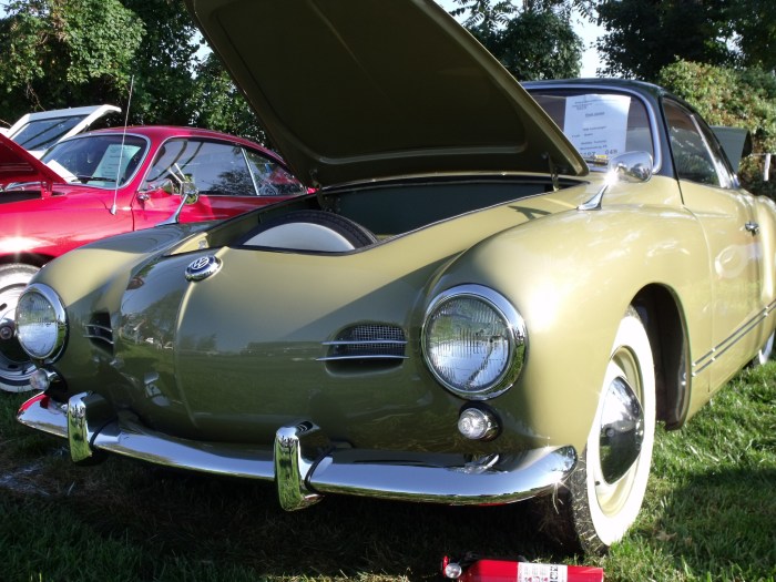 With vehicles arranged by class (typically year/make/model) it’s best to wander to where your interests lie, as the vast show field is almost impossible to completely cover in one day. Many years ago, I read this advice in a photo magazine: move closer to your subject, and when you think you’ve moved close enough, move even closer. With cars, it can sometimes be more interesting to focus on only a portion (the crowds sometimes thwart all effort to snap the entire vehicle anyway). I’ve tried that effect for several of these shots.