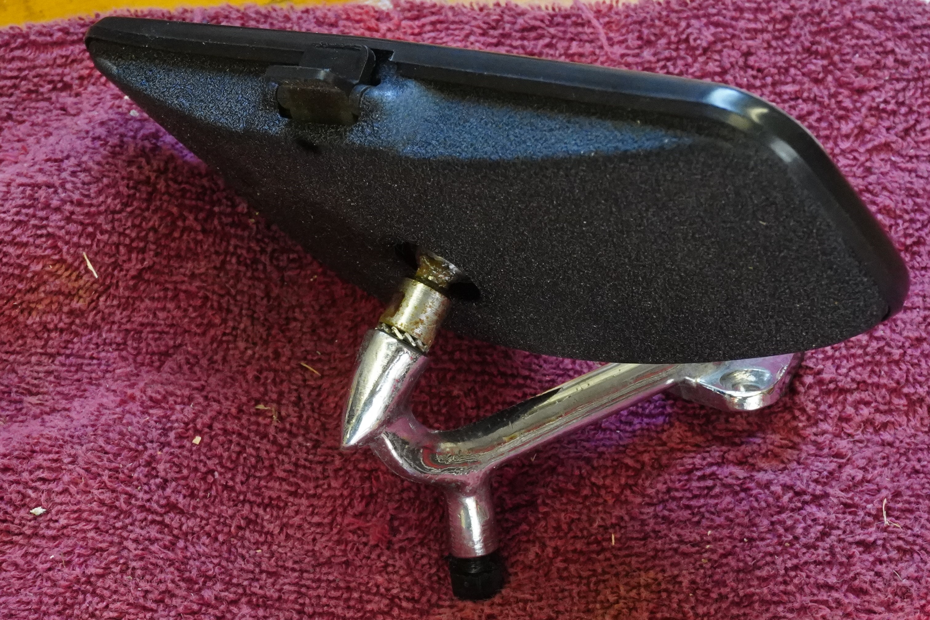 As they say in the repair manuals, “reassembly is the reverse of disassembly”. Everything went back together smoothly, and I used my newly-secured mirror as an excuse to take a 12-mile shakedown run. It held! Now I’ll have a crystal-clear view of that F-250 Super Duty six inches from my rear bumper while I’m cruising at 50 in a 45.