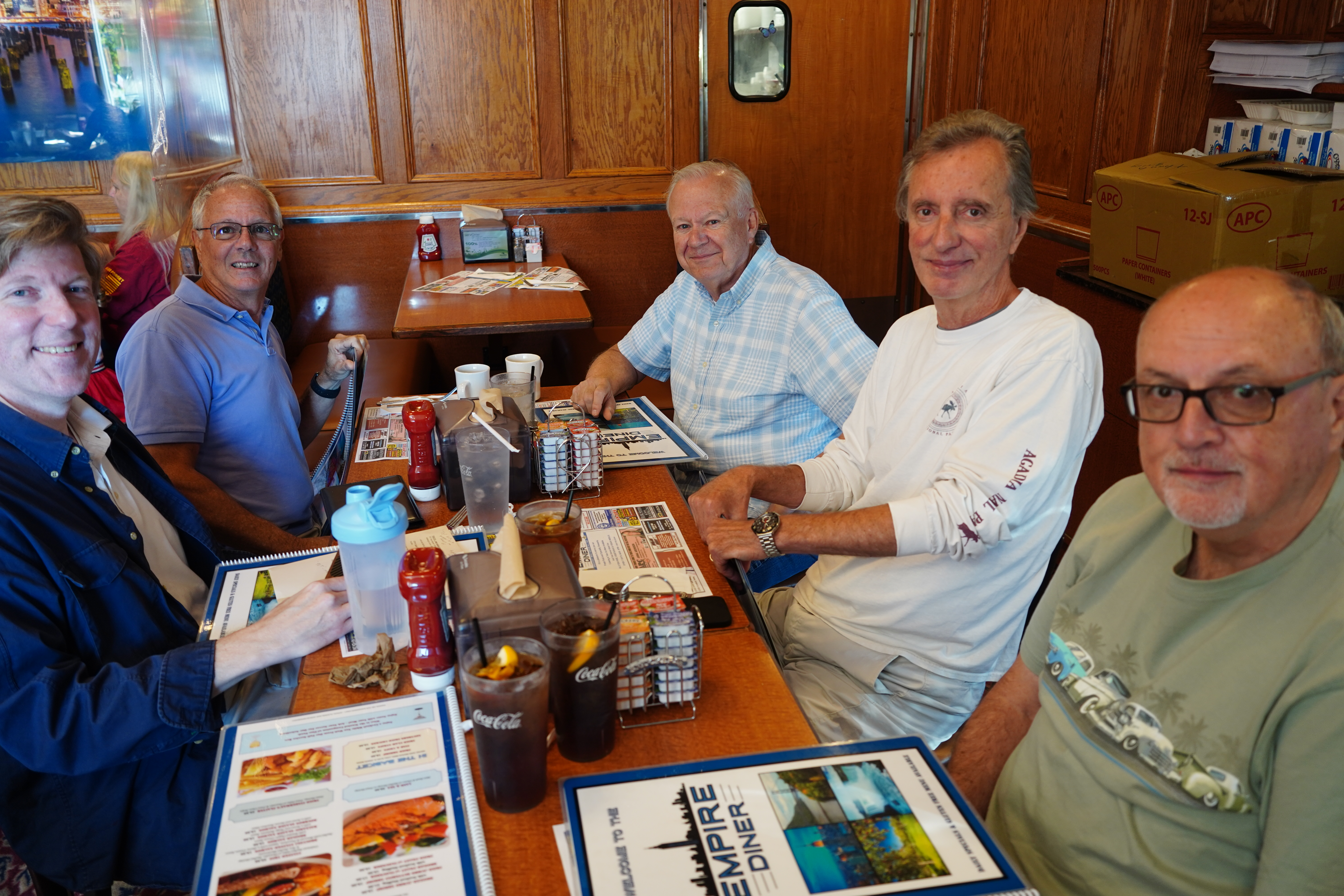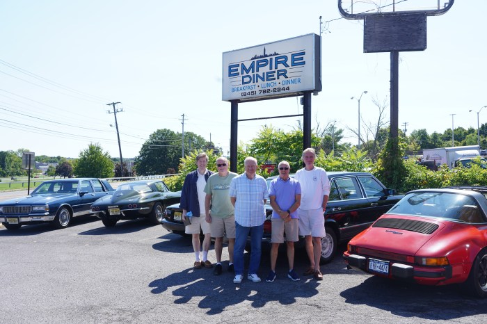 And so we selected Thursday Sep. 15, 2022, for our first-ever such event. Six brave souls (which can also be read as “six guys who are retired or are otherwise available”) showed up. Although the number was small, 3 of the 6 vehicles were new to us. Our destination was the Empire Diner in Monroe, NY, a previous breakfast destination, where we were able to be immediately seated up our noon arrival. The food was great, the service even better, and after our usual kick-the-tires parking lot session (including someone offering cash on-the-spot for Larry’s Chevy), we were headed back home.