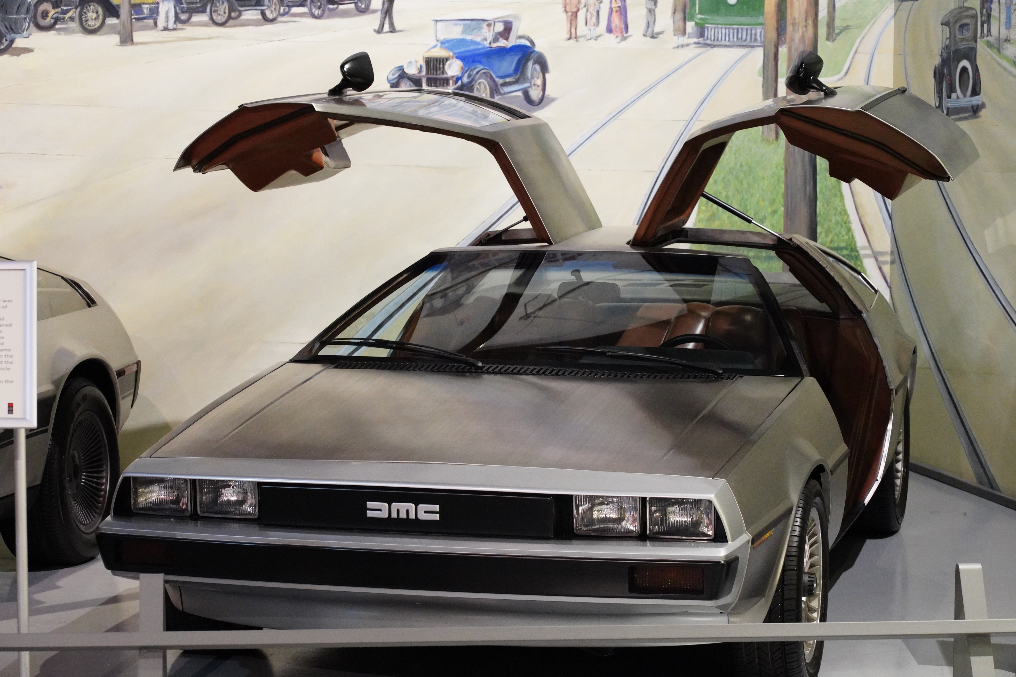 The majority of the Museum’s displays are on the main level (in this case, the race cars, the Tuckers, the DeLoreans, and assorted other cars). The top level is a mezzanine with some scooters but no cars. The lower level has historically been primarily taken up with buses. This visit was the first time that I can recall seeing so many cars sharing space with the buses.