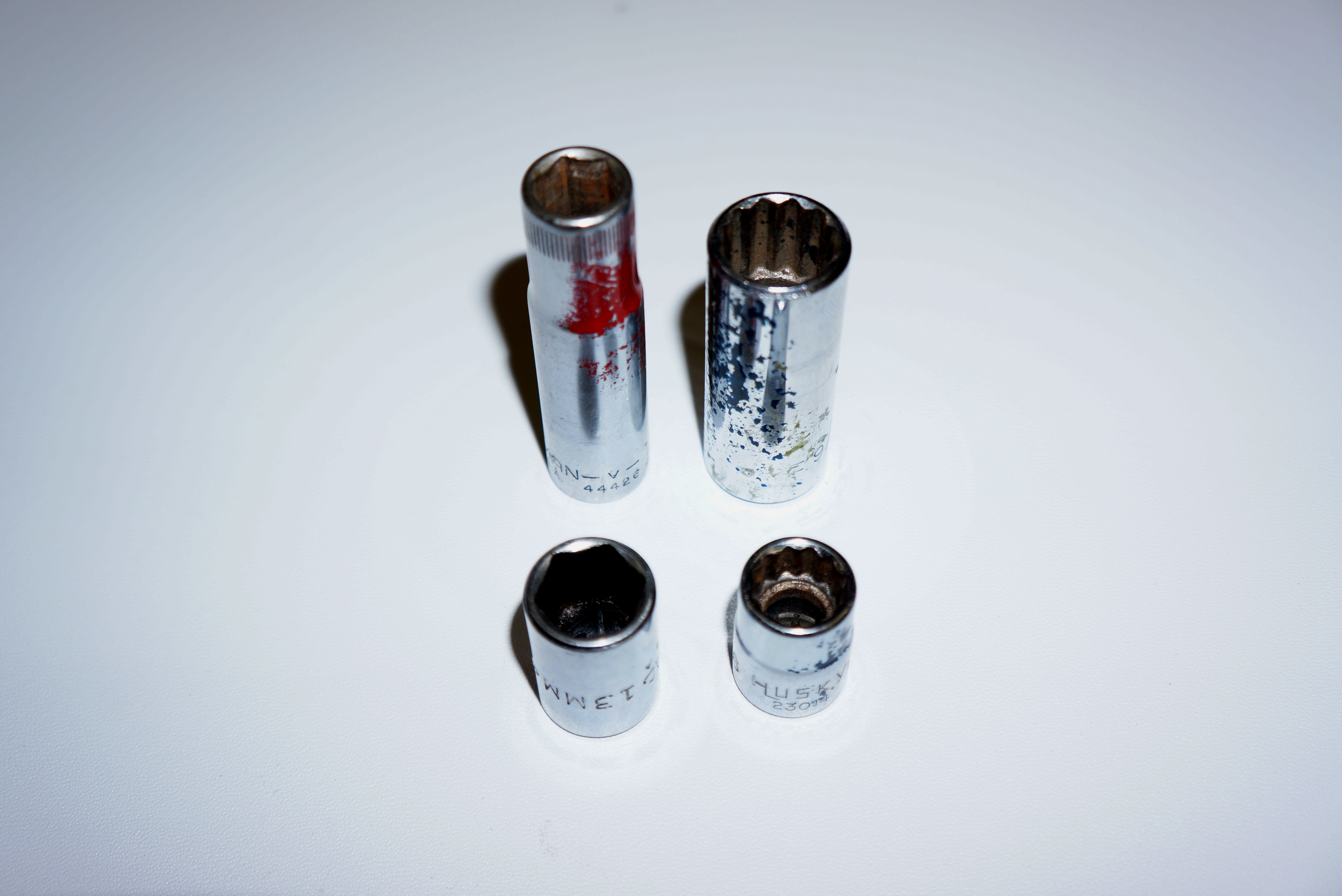 - Sockets: Sockets are attached to a ratchet wrench (more about that shortly). Aside from the nut or bolt size, the square end that snaps onto a ratchet wrench is either ¼”, 3/8”, or ½”. For starting out, stick with the 3/8”. You can add the others later. Sockets are also described as either “6-point” or “12-point”, which refers to the number of edges (points) which fit around the nut or bolt. The 12-points allow you more finesse if making very small turns with a ratchet, but the higher strength of the 6-point sockets make them the preferred choice for automotive work. Finally, there’s “regular” depth and “deep” sockets. Deep sockets give you access to recessed fittings, and are good to have.