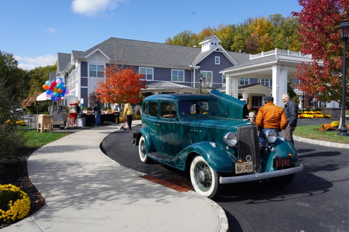 The NJ Region of the AACA participated in a display of special interest cars at the Bright View Senior Living Facility in Warren NJ on Sunday Oct. 22, 2023. The Region has hosted or co-hosted a number of these type of events throughout the Garden State. Facility residents are invited to come outside and enjoy viewing the older cars, while the facility supplies lunch and snacks for car owners and residents alike.