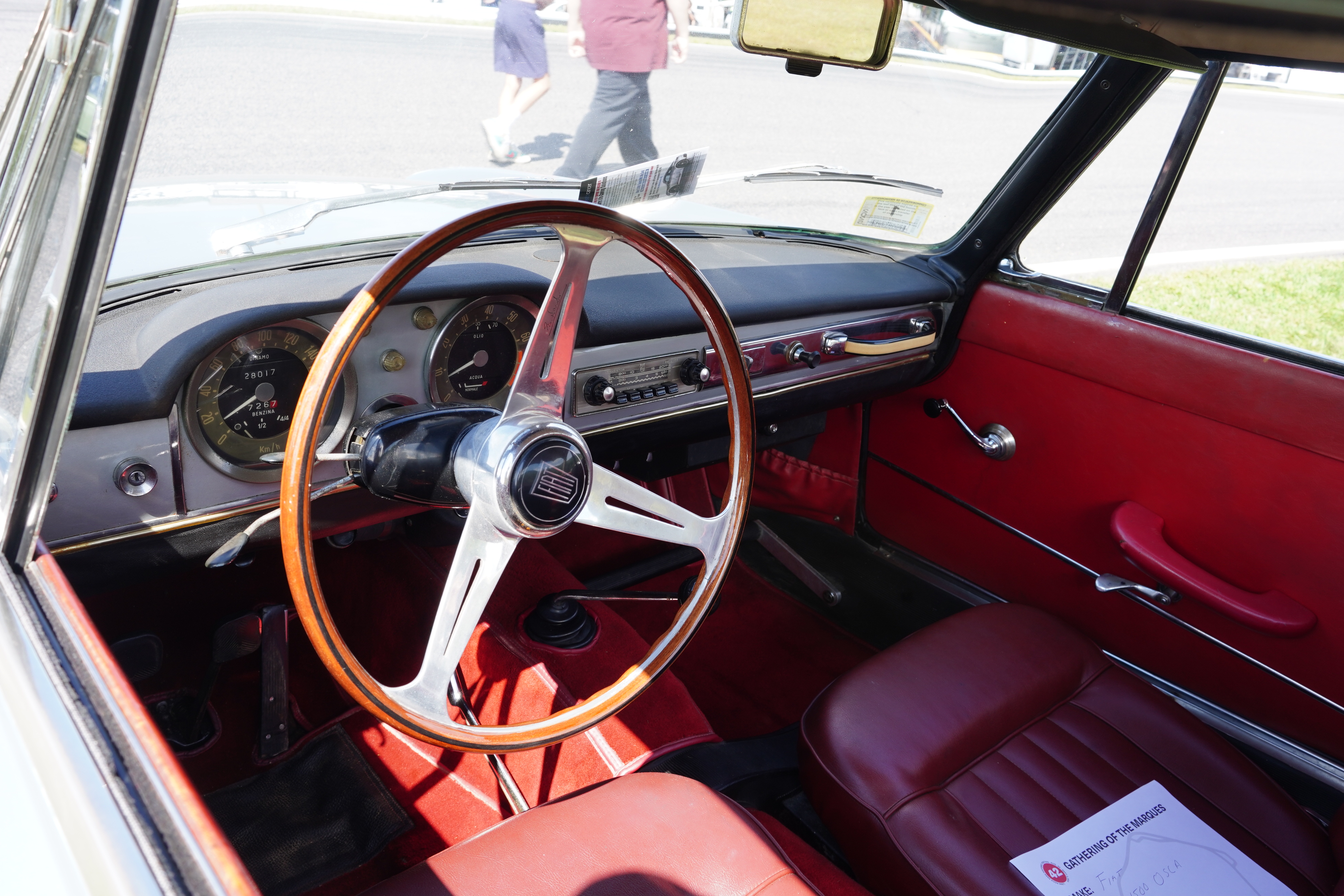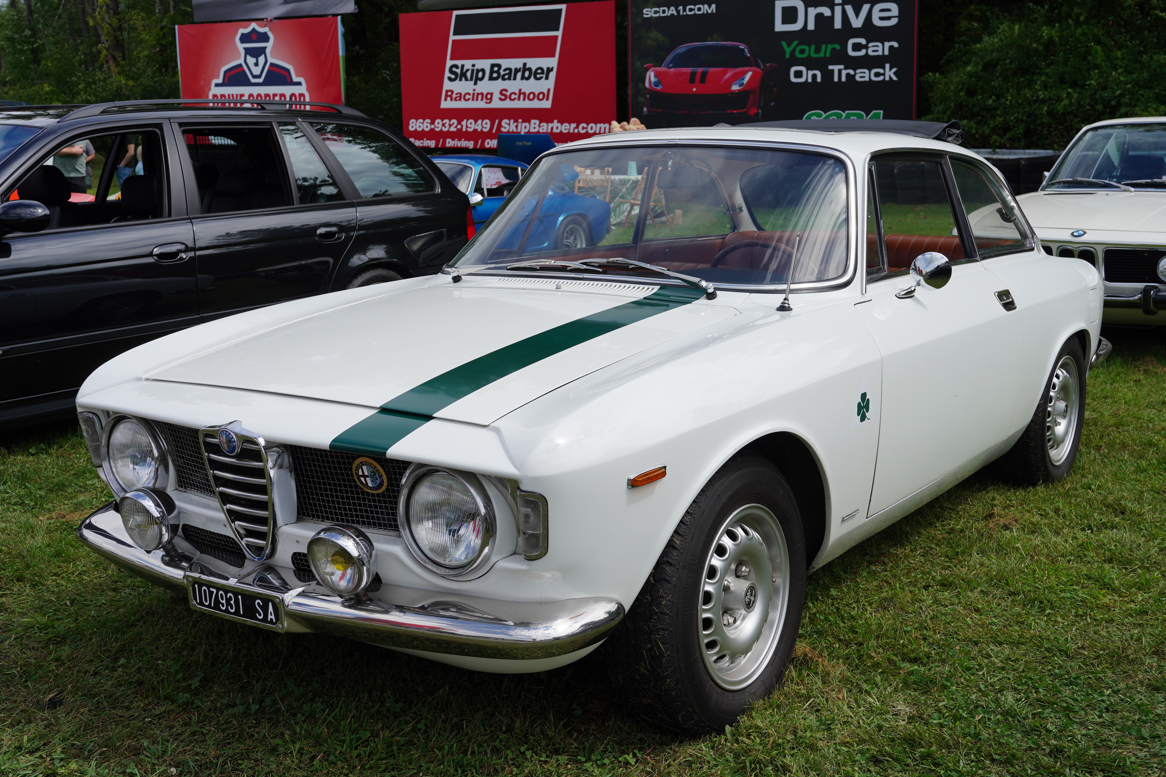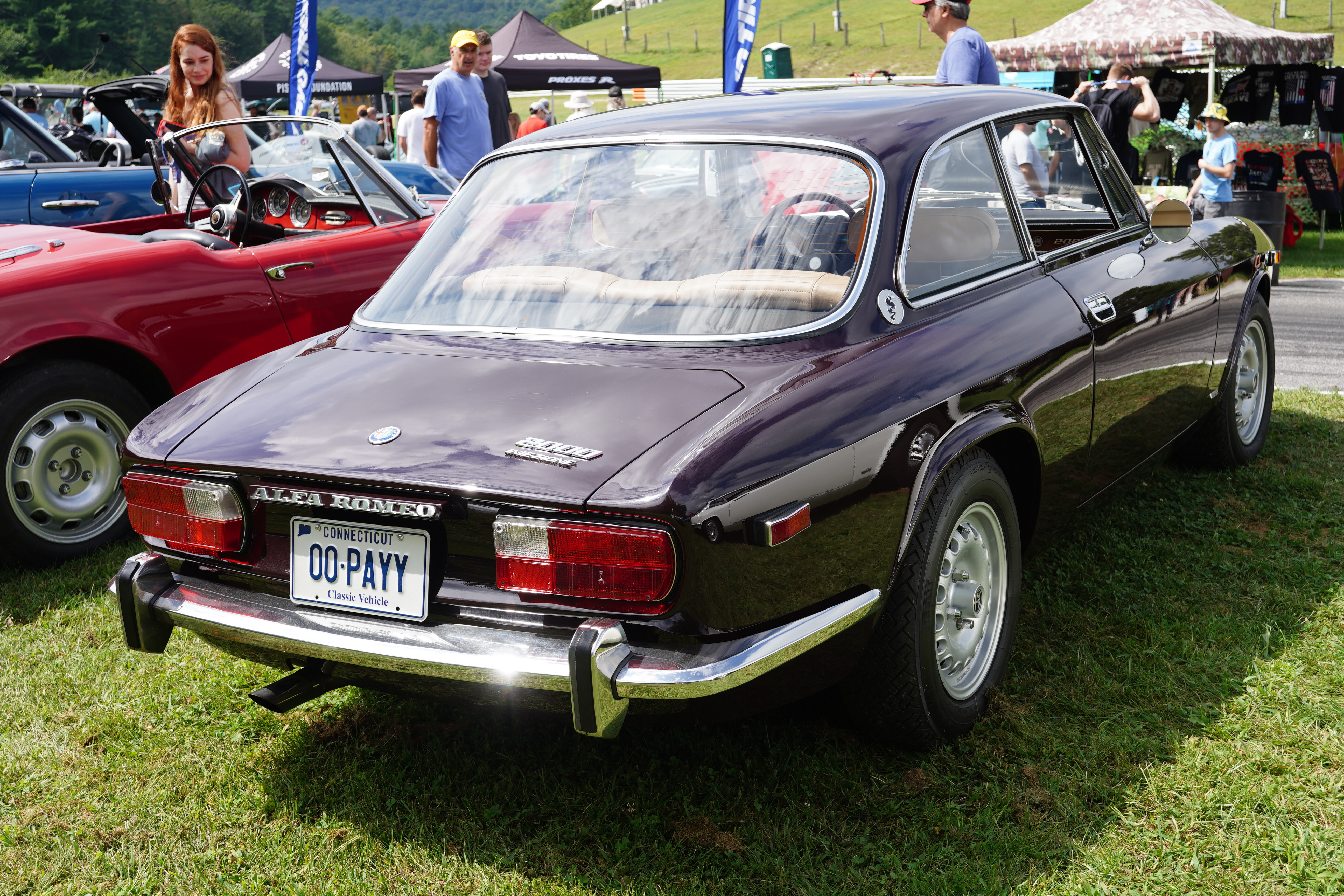 The “Juniors” (smaller engines, fewer features) were never officially imported into the U.S., so seeing one is a rare treat, although they are around. My ‘67 of course, is a Junior, privately imported in 1967. While I’ve seen a small handful of other Juniors at Alfa shows, I’ve never seen one in the same colors as mine, that is until I saw this 1968 model, one year newer. Other Junior owners have challenged certain features on my car, claiming that all Juniors have two-spoke wheels (mine is a three-spoke), and only one “Designed by Bertone” badge on the front fenders (I have two, one on each side). This Lime Rock Junior had the same steering wheel as my car but only one “Bertone” badge. Most interestingly, it had a grey dash without the vinyl “wood” applique which my car has. I’ve only seen the grey dash on pre-1967 coupes. I think, as others have hinted at, that the factory assembly process was simply not always that precise.
