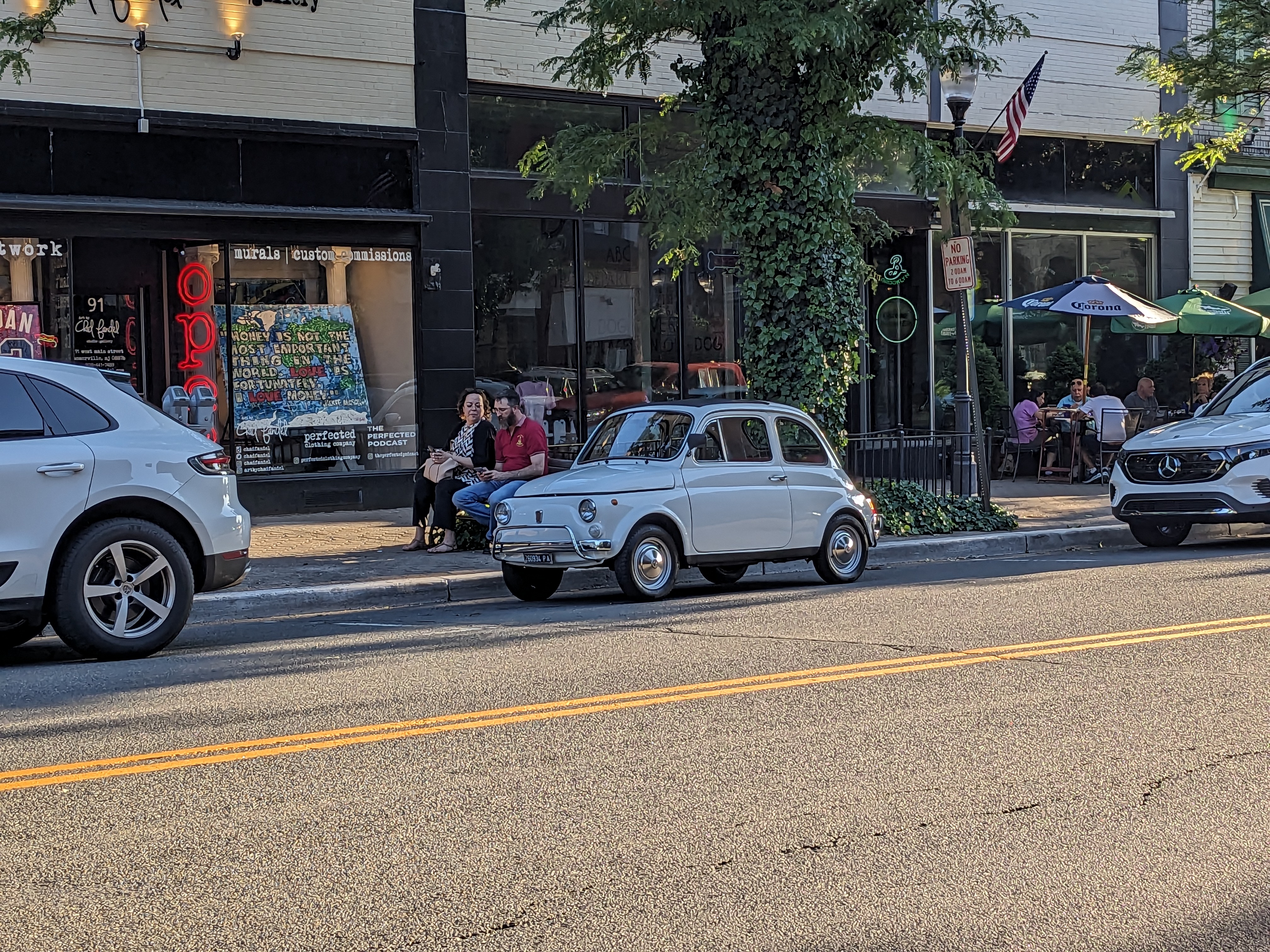 This Fiat 500 was spotted on Main St. in Somerville NJ parked between a Porsche and a Mercedes-Benz. You could fit THREE 500s into that parking spot!
