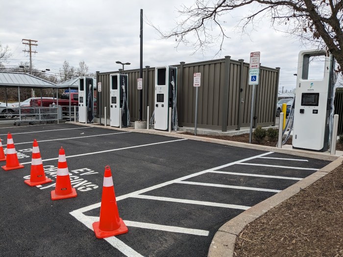 I bring this up as a preamble to a recent observation. I do most of my food shopping at the local (Flemington NJ) Shop-Rite, a 15-minute drive from my home. It shares its lot with several department stores, but most times of the year, parking at the Shop-Rite is not an issue. It’s during the big holidays when finding a spot can get dicey. Several months ago, I took notice of some construction in the lot; said construction chewed up about 6 or 8 parking spots, and I wondered what was going on. A few weeks ago, I found out: the fences and boards were removed to reveal 4 new EV charging stations, with another 4 spots permanently occupied by some large electrical box, presumably needed to feed the chargers. To my knowledge, this is only the second multi-unit public charging station within a 10-mile radius of my home.