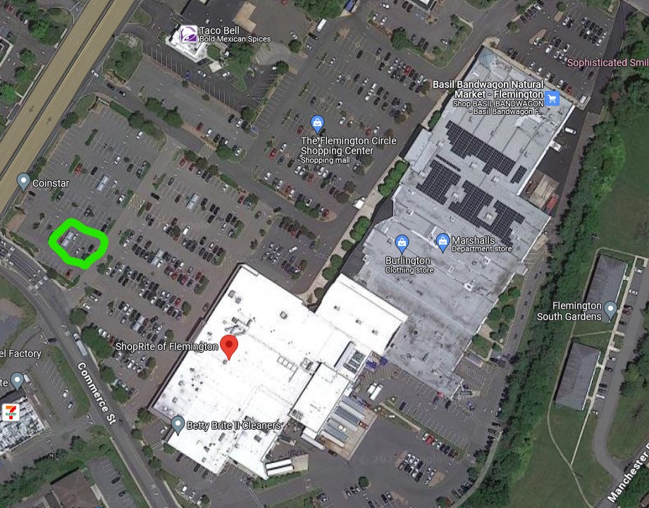 Google Map’s view of my Shop-Rite. Charger location within green box.