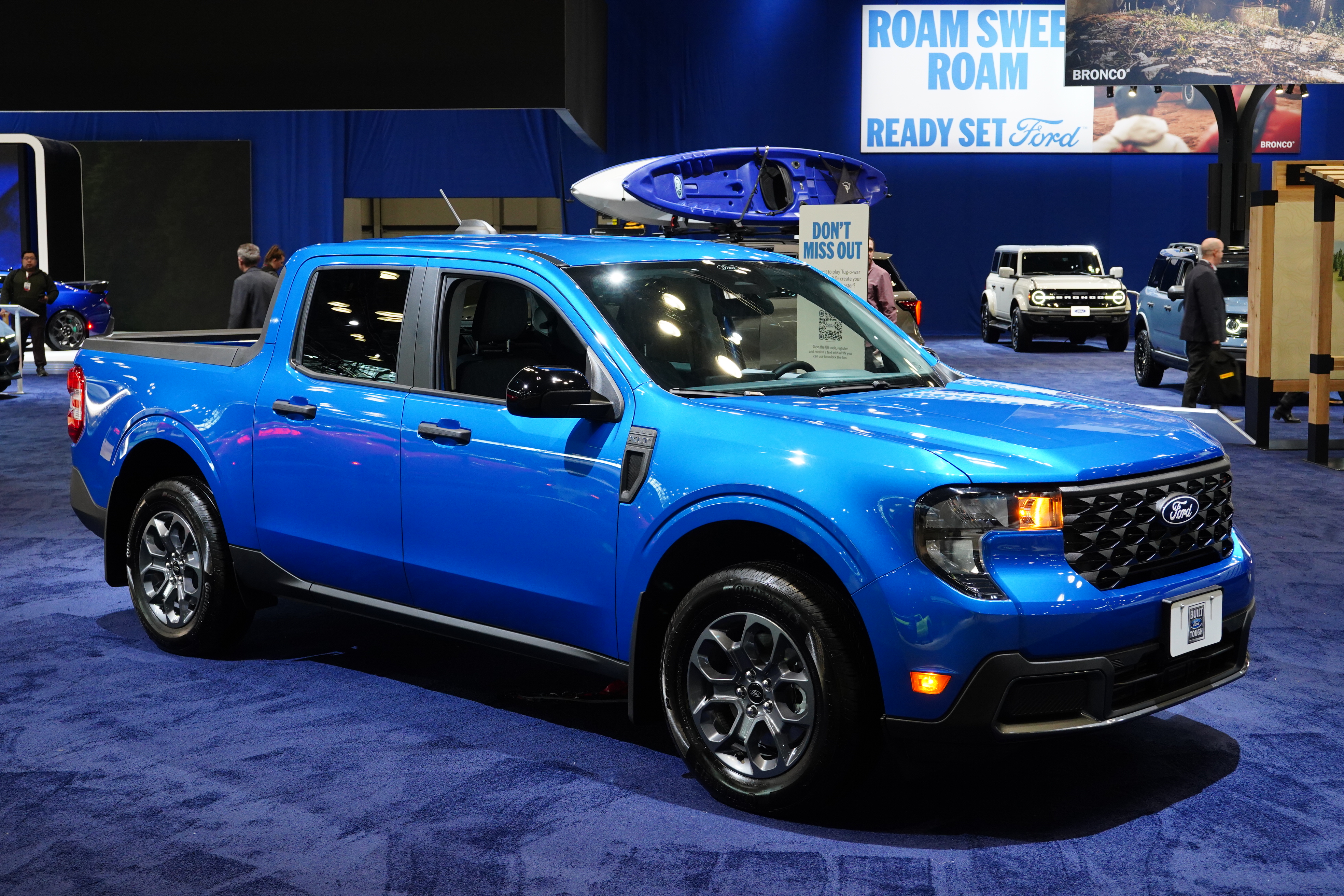 Like its crosstown rival Chevrolet, Ford brought “one of each” from its vehicle lineup, with a focus on the Mustang, Bronco, and pickup trucks. The Mach-E Mustang EV is covered separately below.