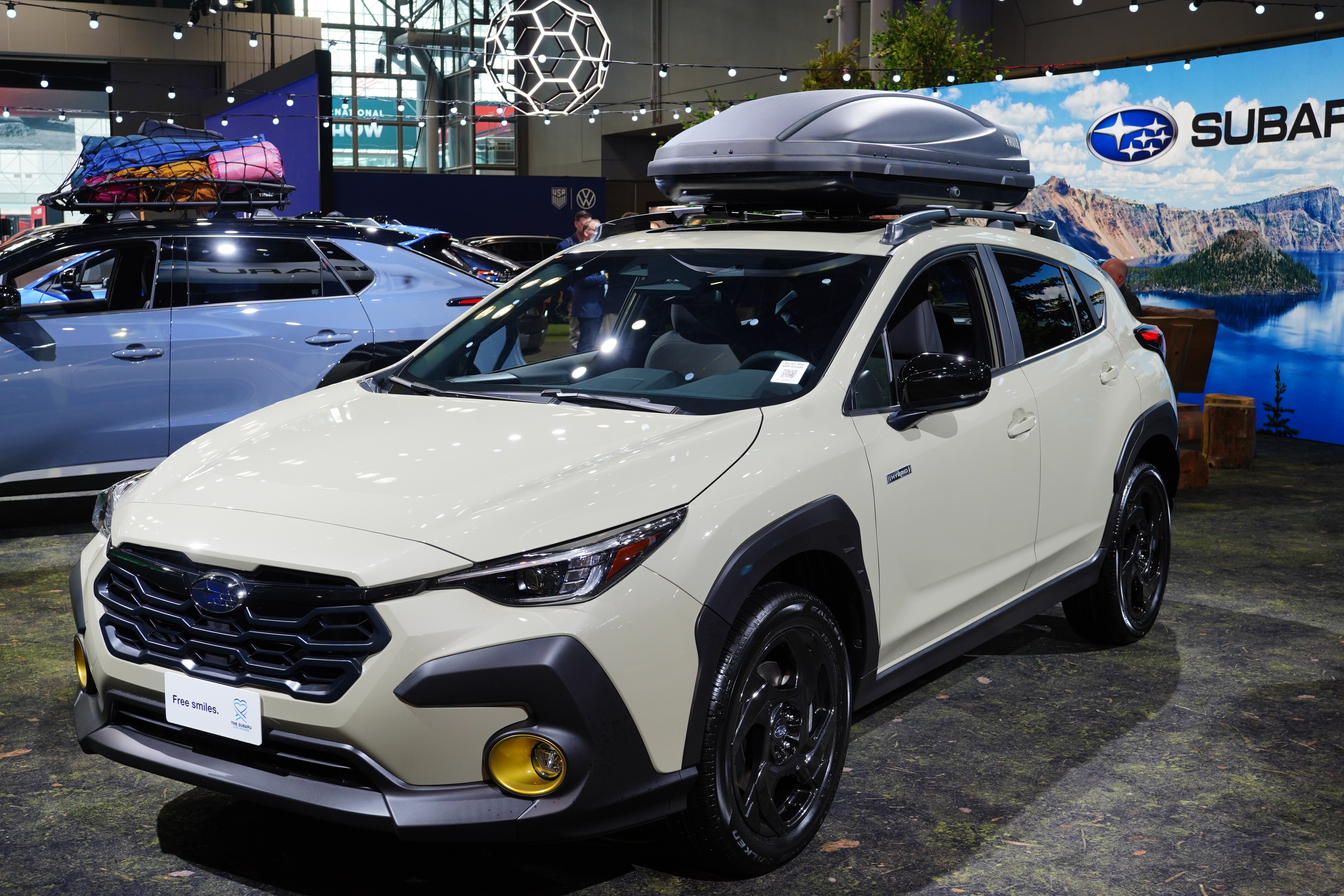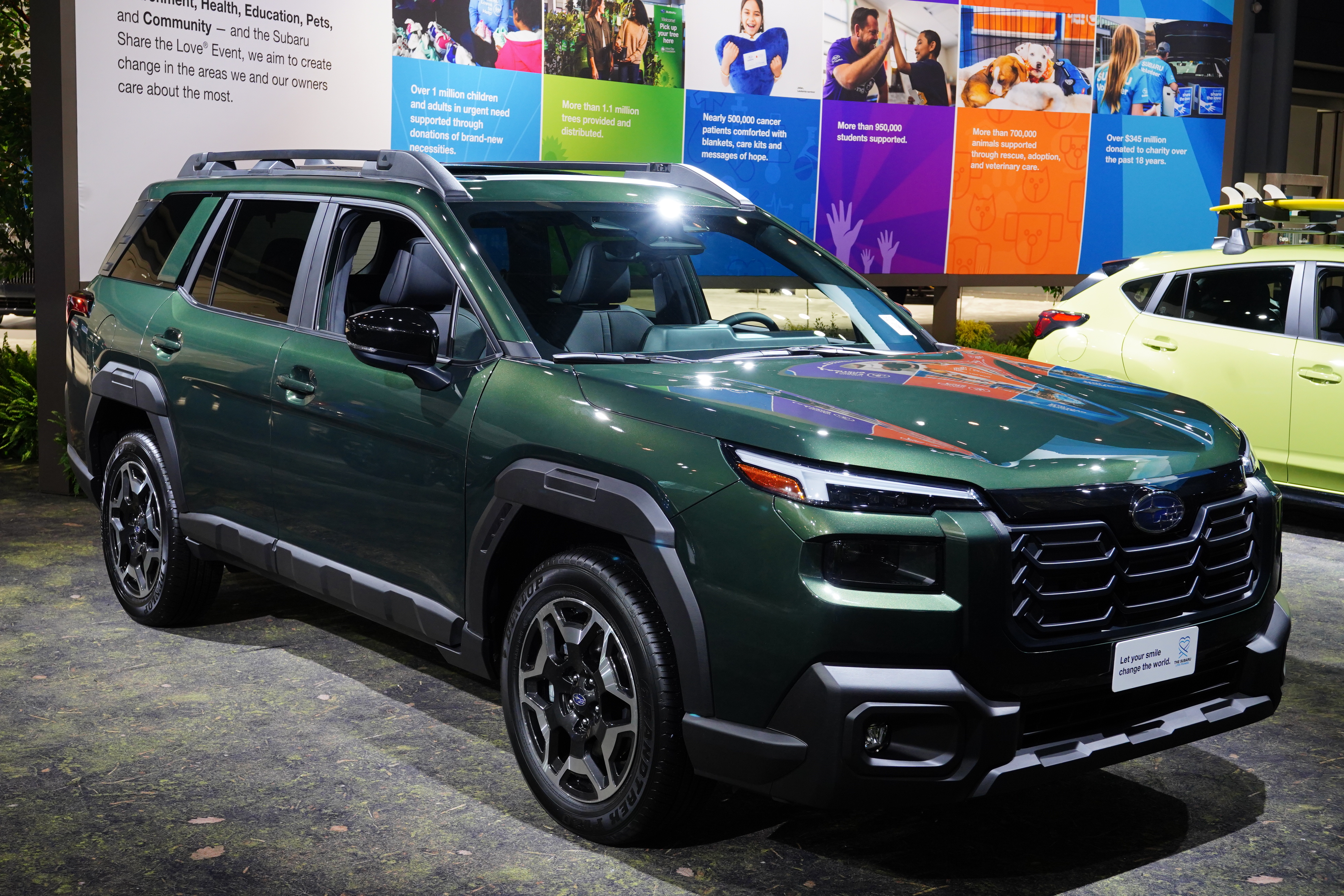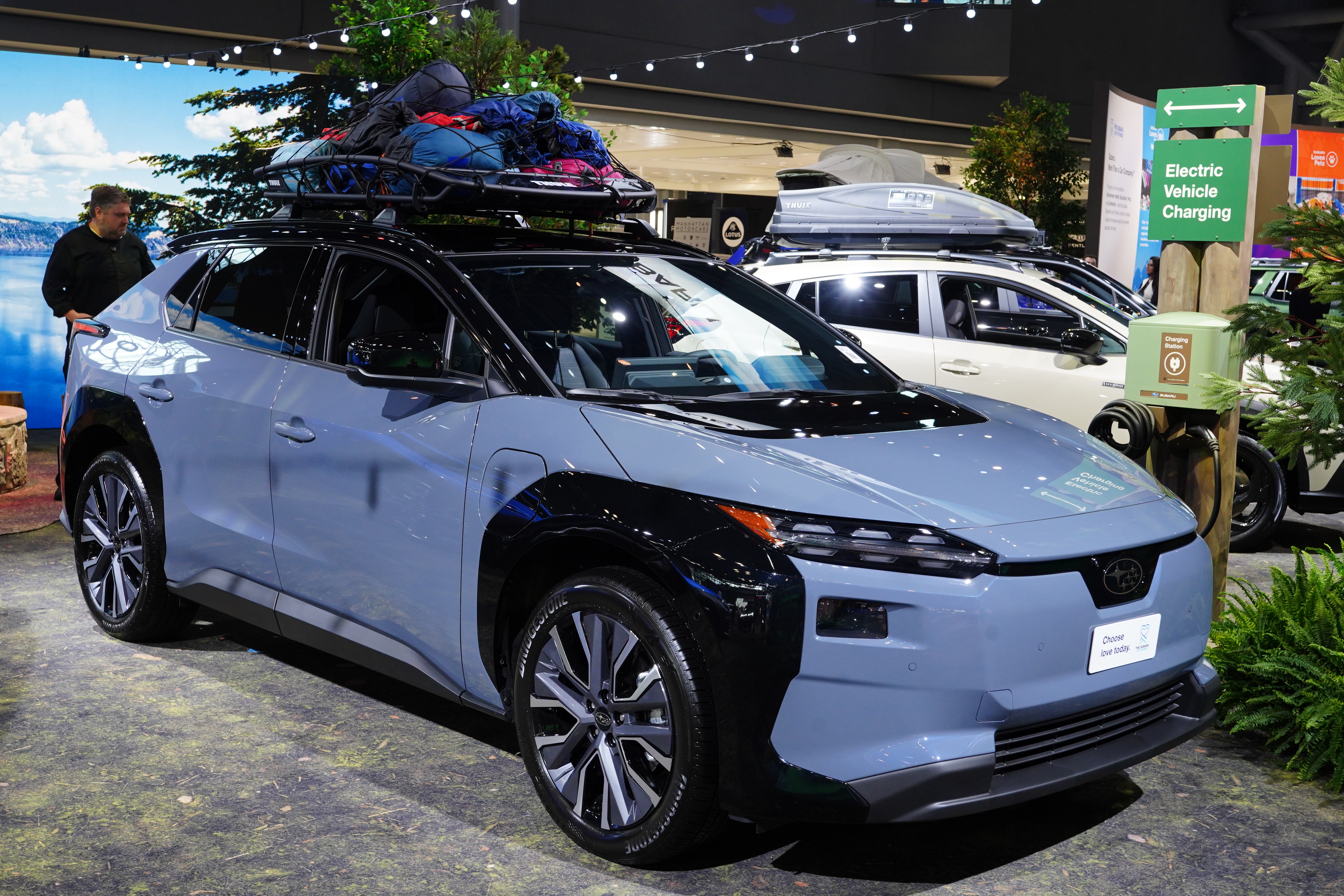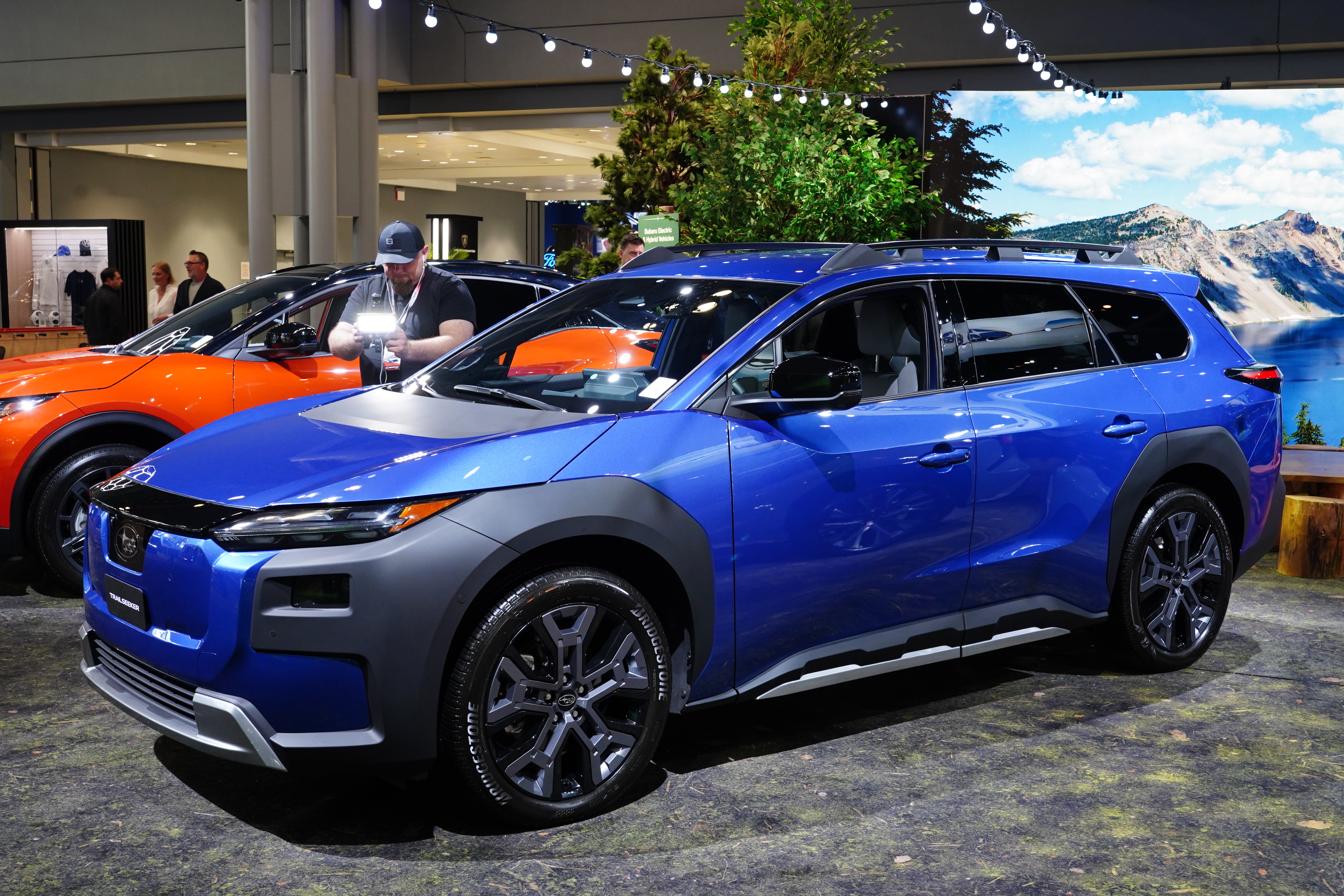 Subaru showed a refreshed Solterra, and a new EV called the Trailseeker. Subaru is going overboard with the black body cladding, painted and unpainted.