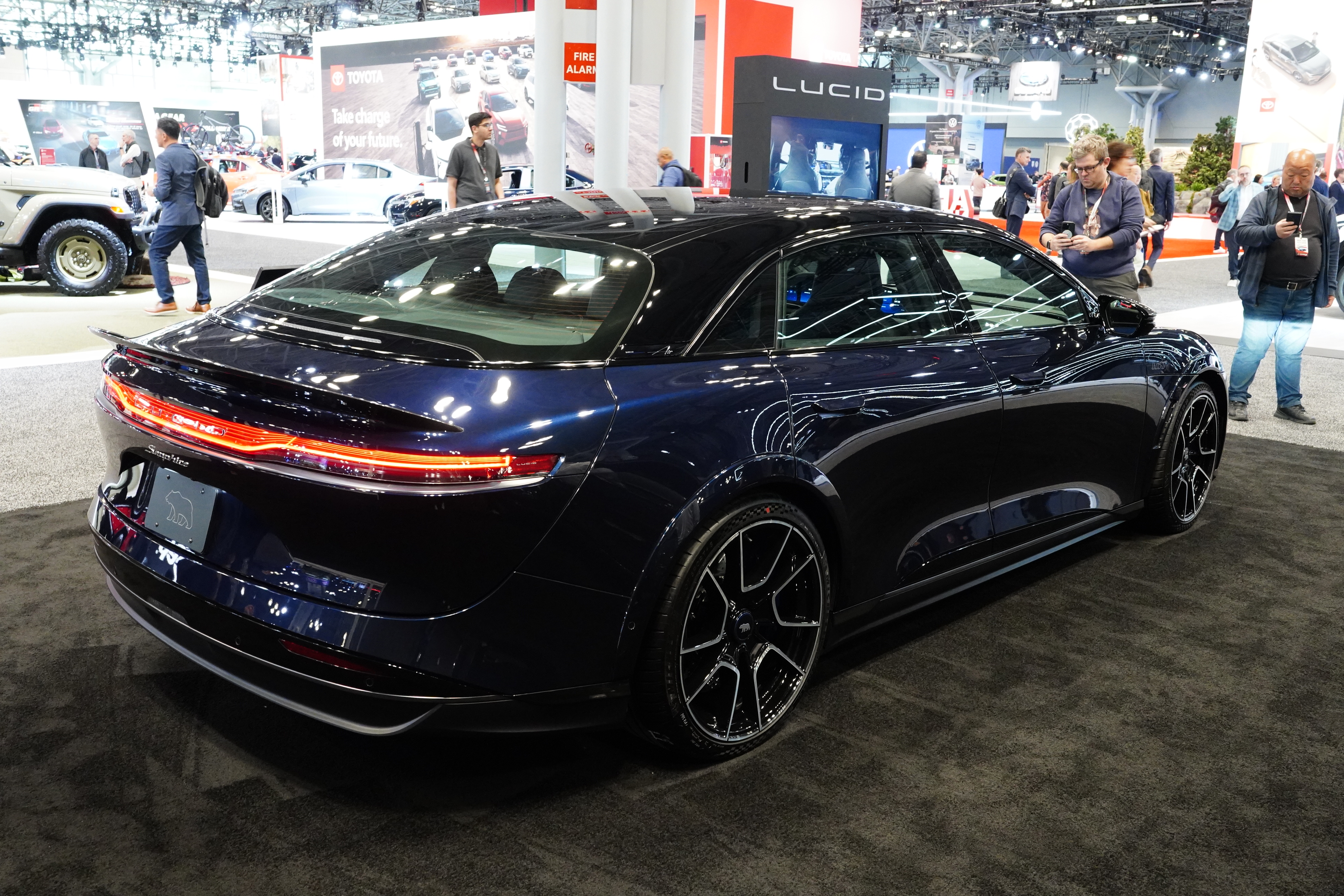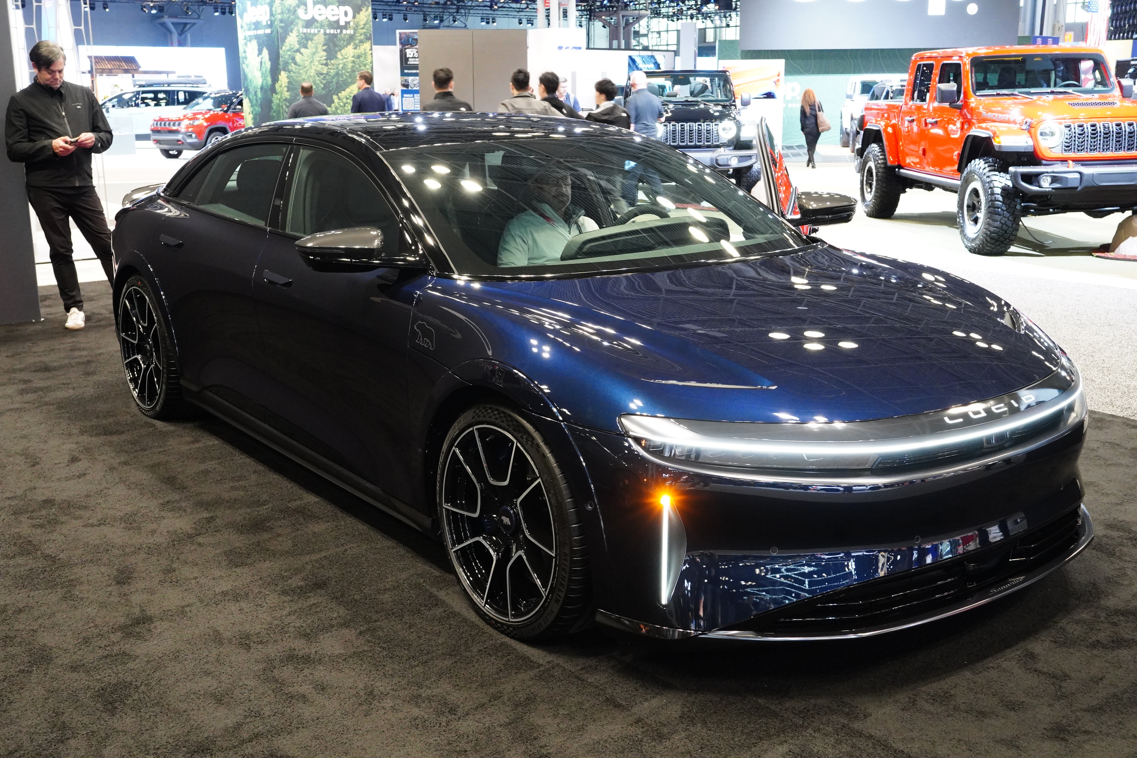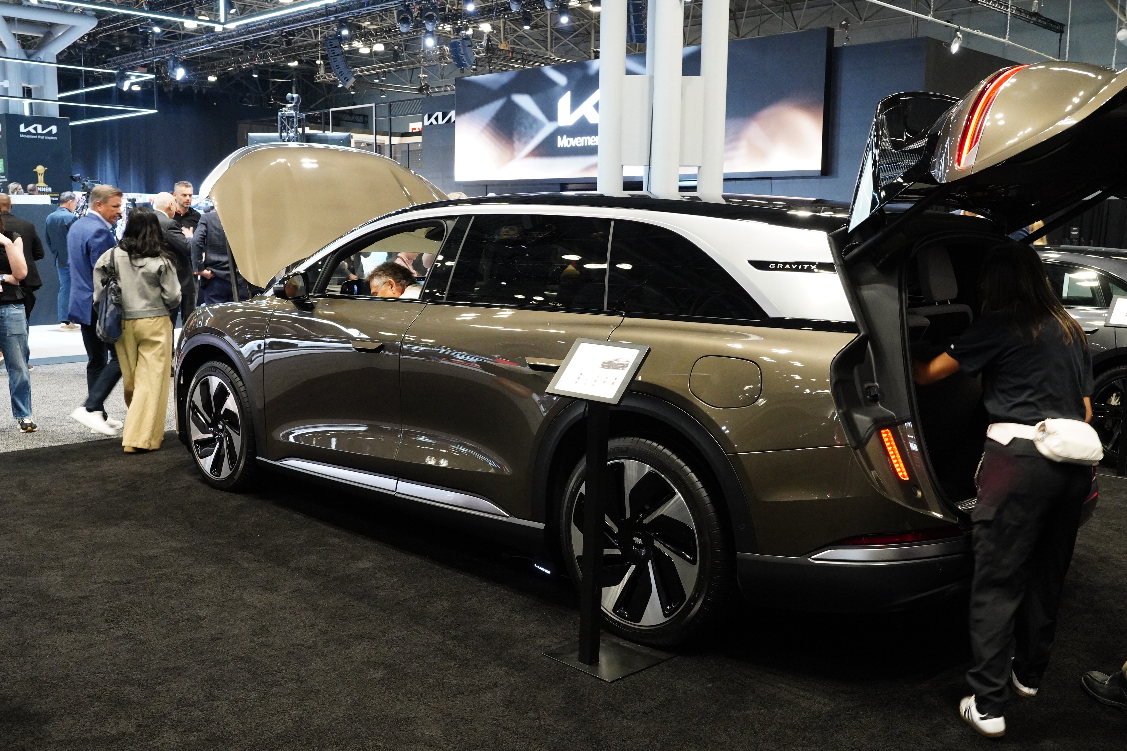 The Lucid display was packed all day. They had the four-door Air, the Gravity SUV, and a model called the Sapphire. I had to ask a Lucid rep about the Sapphire. “Oh, that is not a separate model. That is the Air but with every single available option we could possibly add. The price on the Sapphire is $249,000, but of course, you can get an Air starting around $80,000.” This is the kind of vehicle that, right or wrong, causes Americans to think that EVs are out of their price range.
