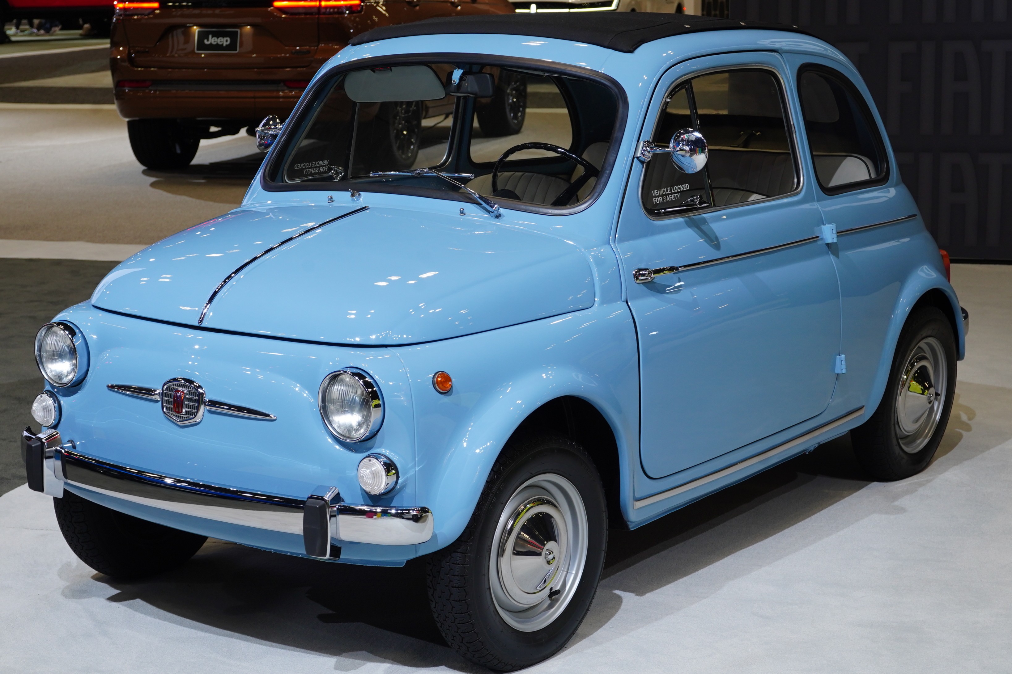 Fiat sells one model in the U.S., the 500-e EV. But for some reason, they also decided to display an old 500, which looked like you could pick it up and place it in the bed of one of the Ram trucks.