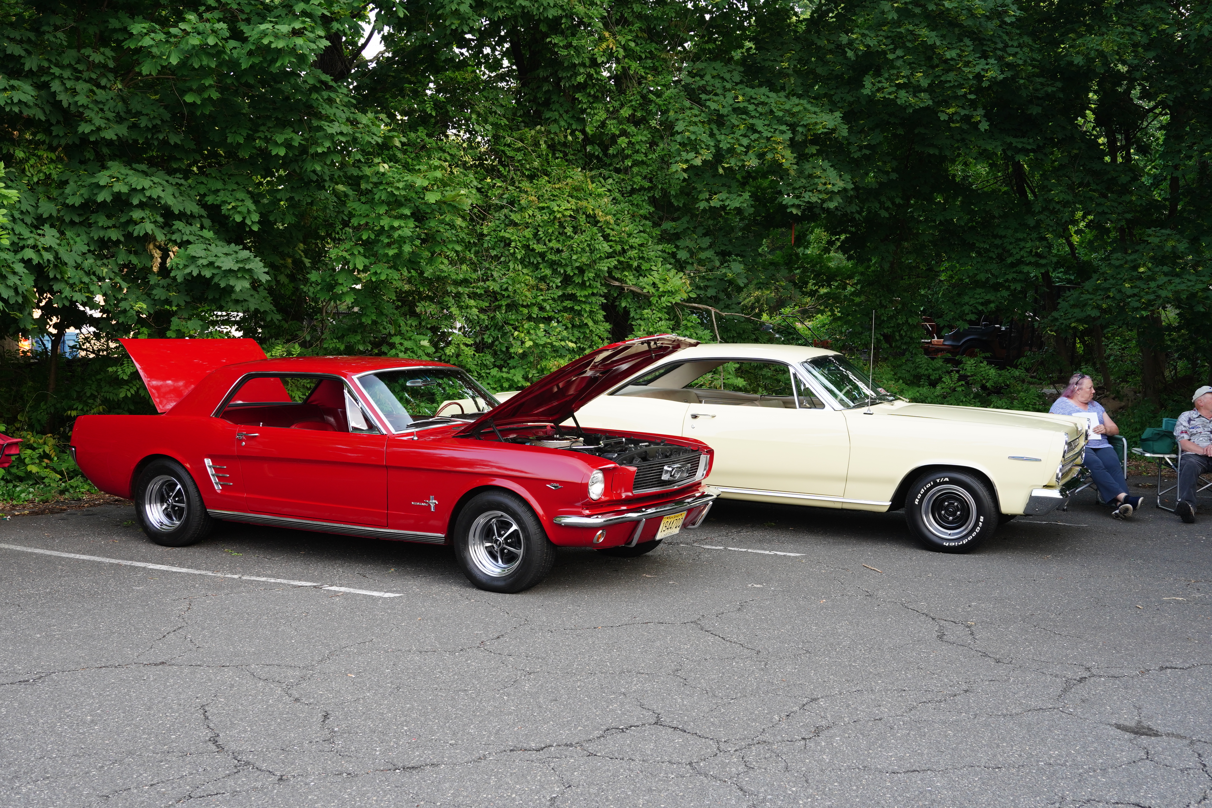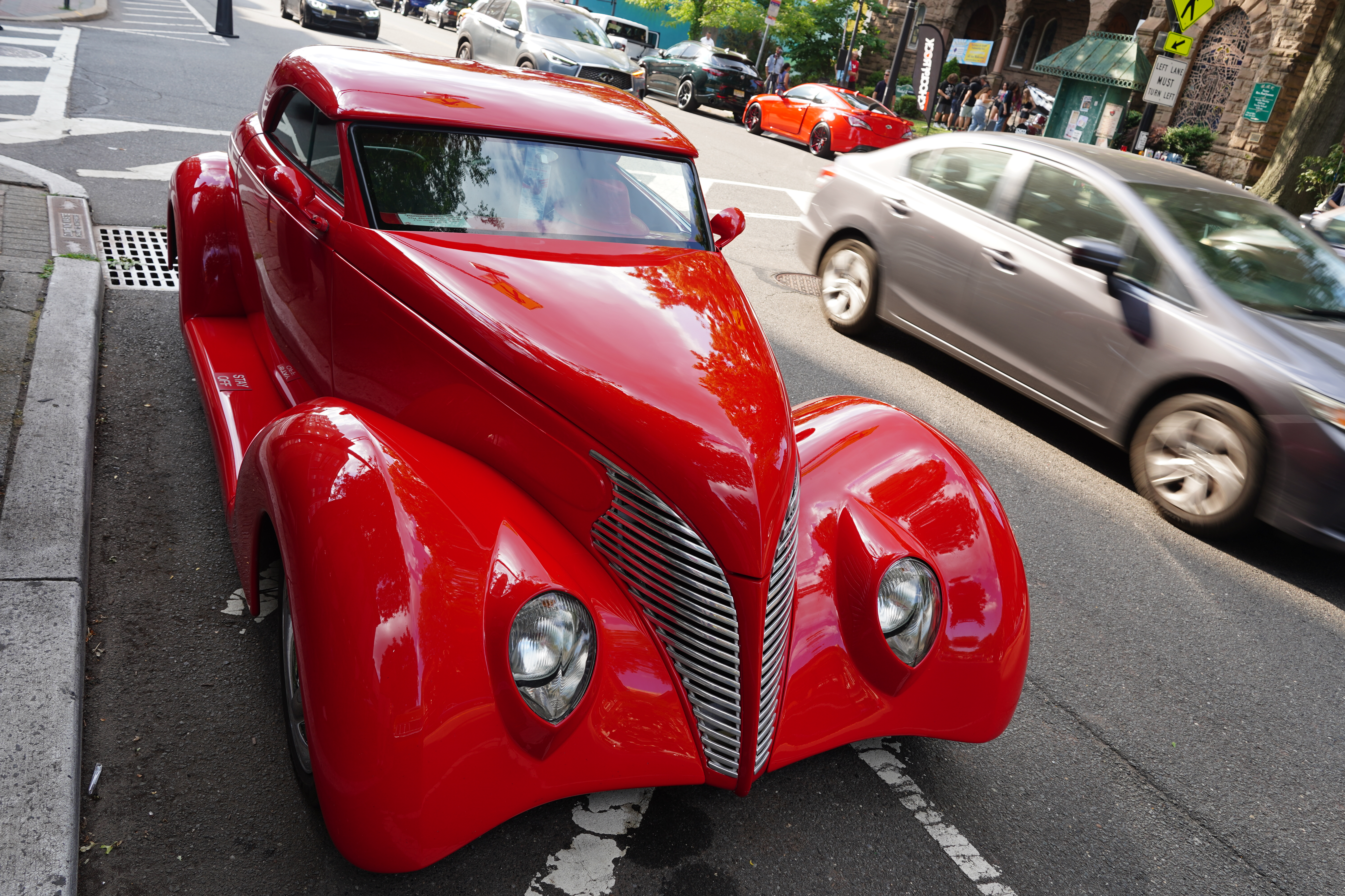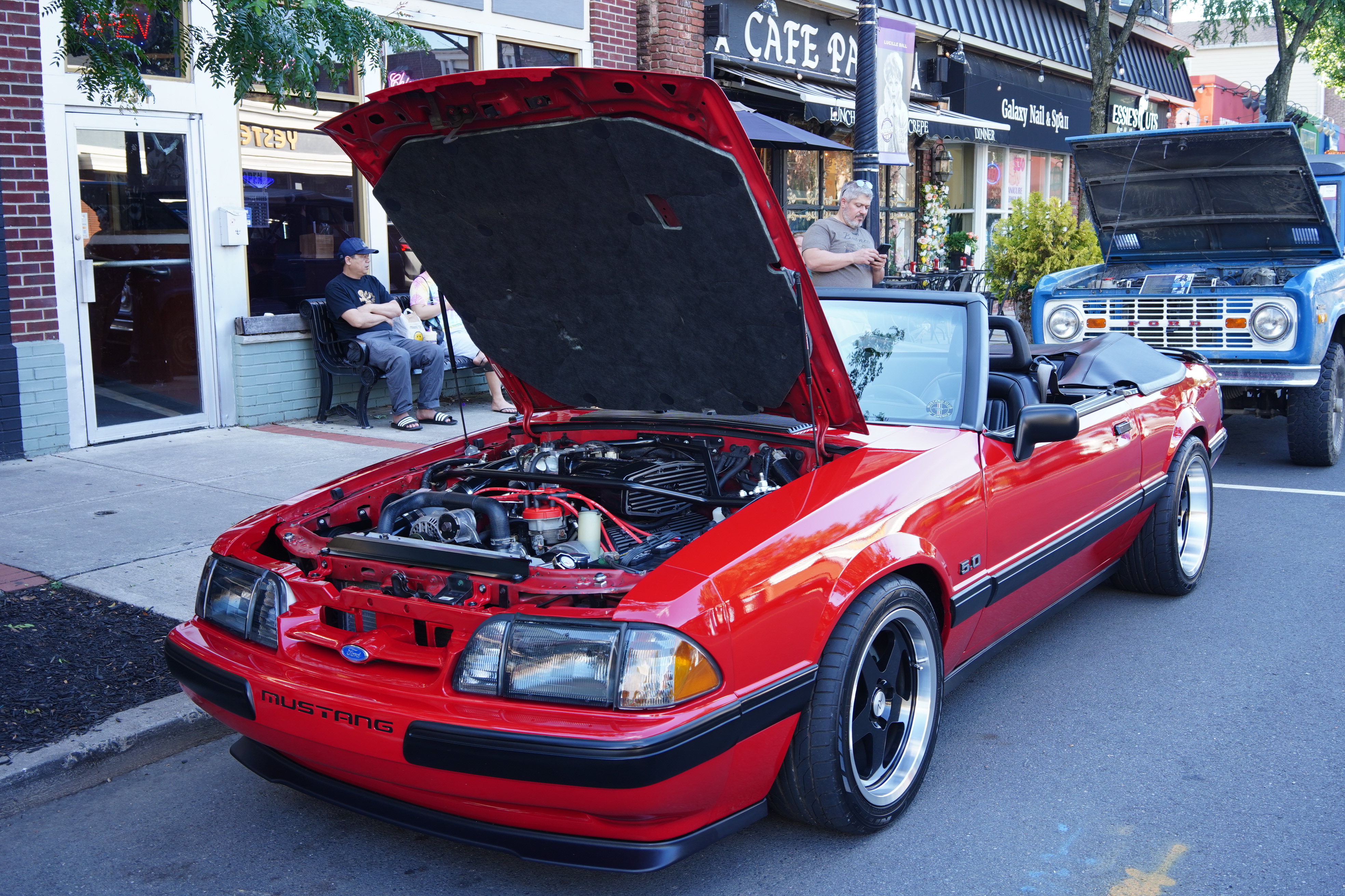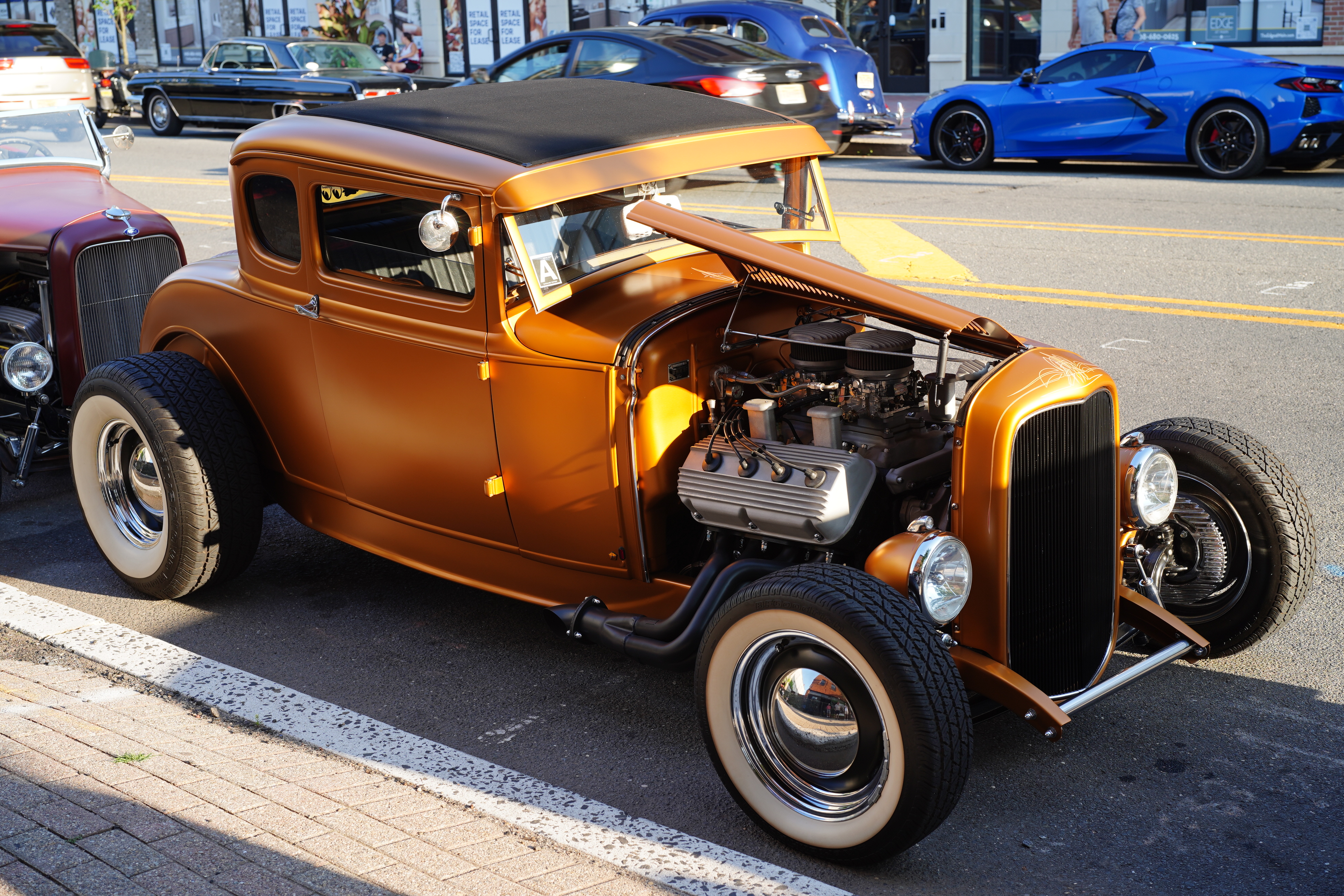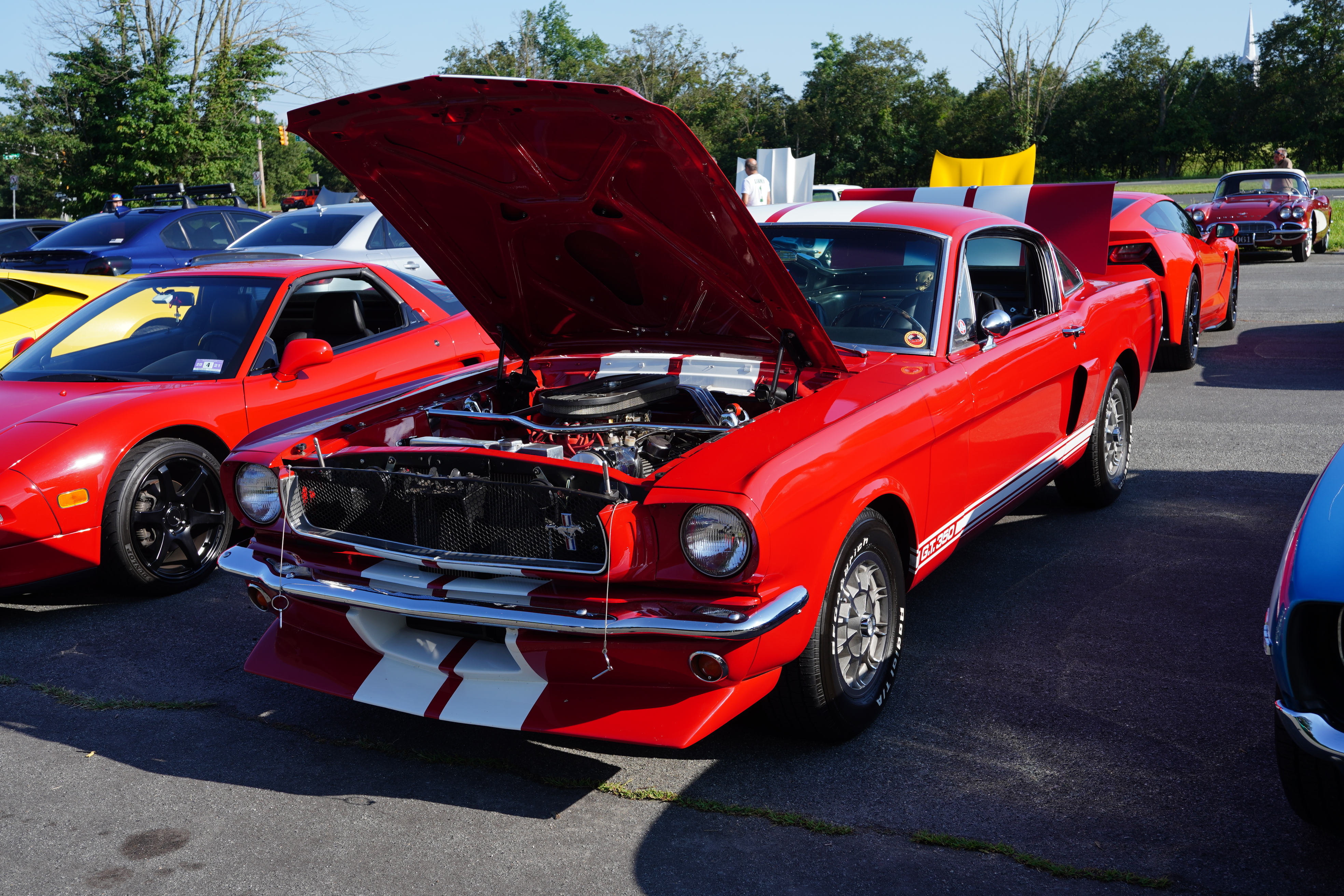 Glancing around, I quickly surmised that my Italian mistress was the only furrin car there. In actuality, most of the cars were either ‘50s and ‘60s muscle cars, or street rods of one kind or another. I felt out of my element until a few other imports showed up. John and I walked the lot together, taking in the variety of vehicles on display, which included not one but two 1940 Fords, an assortment of Thunderbirds, a Triumph, an MG, a Miata, and Corvettes of various vintages. I’m sorry, but if you’re driving a C8 Corvette (and there were several) to a “collector car cruise night,” you’re just showing off. I get the appeal, but a C8 parked next to a C2 makes it blatantly obvious which I’d rather have in my garage.
