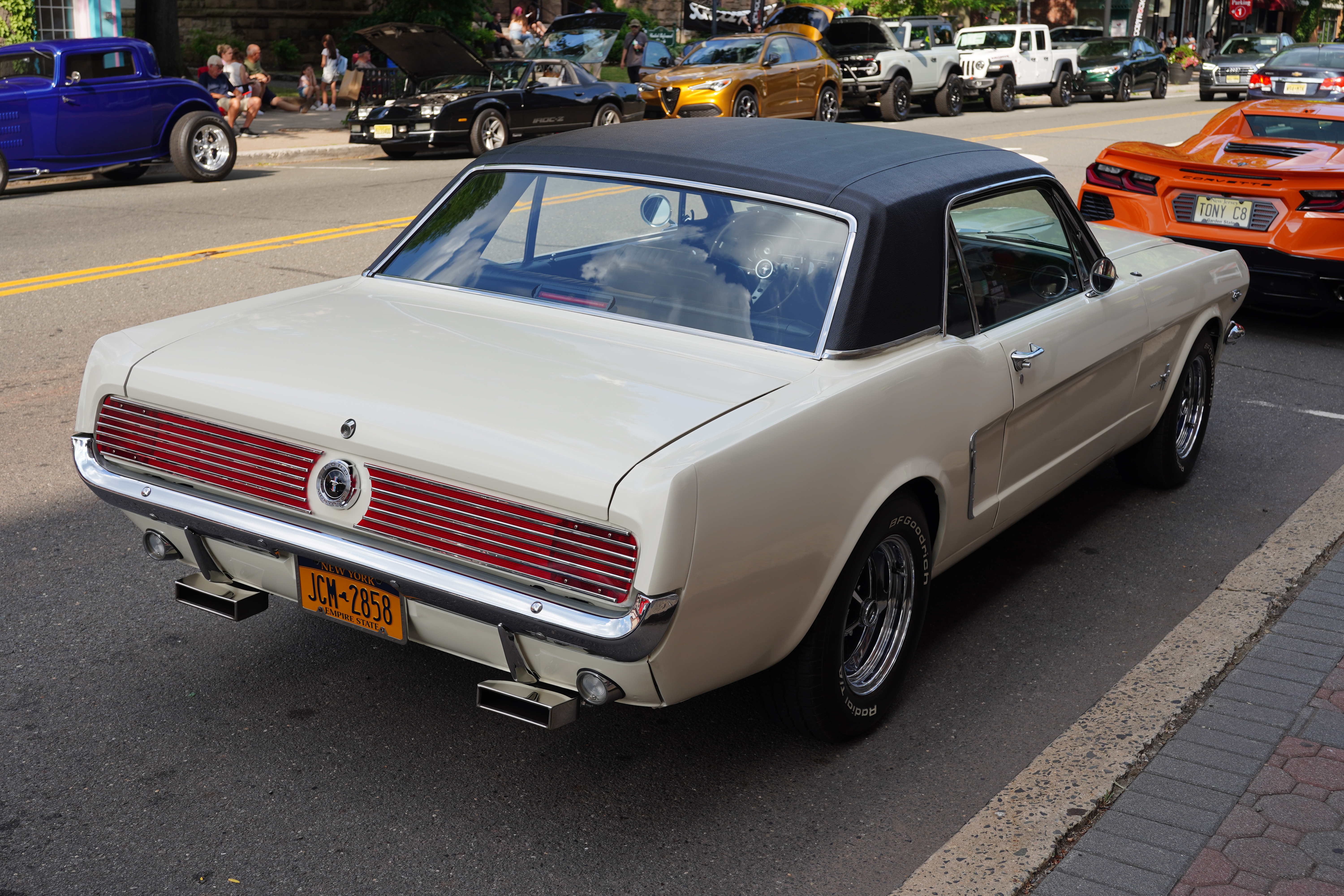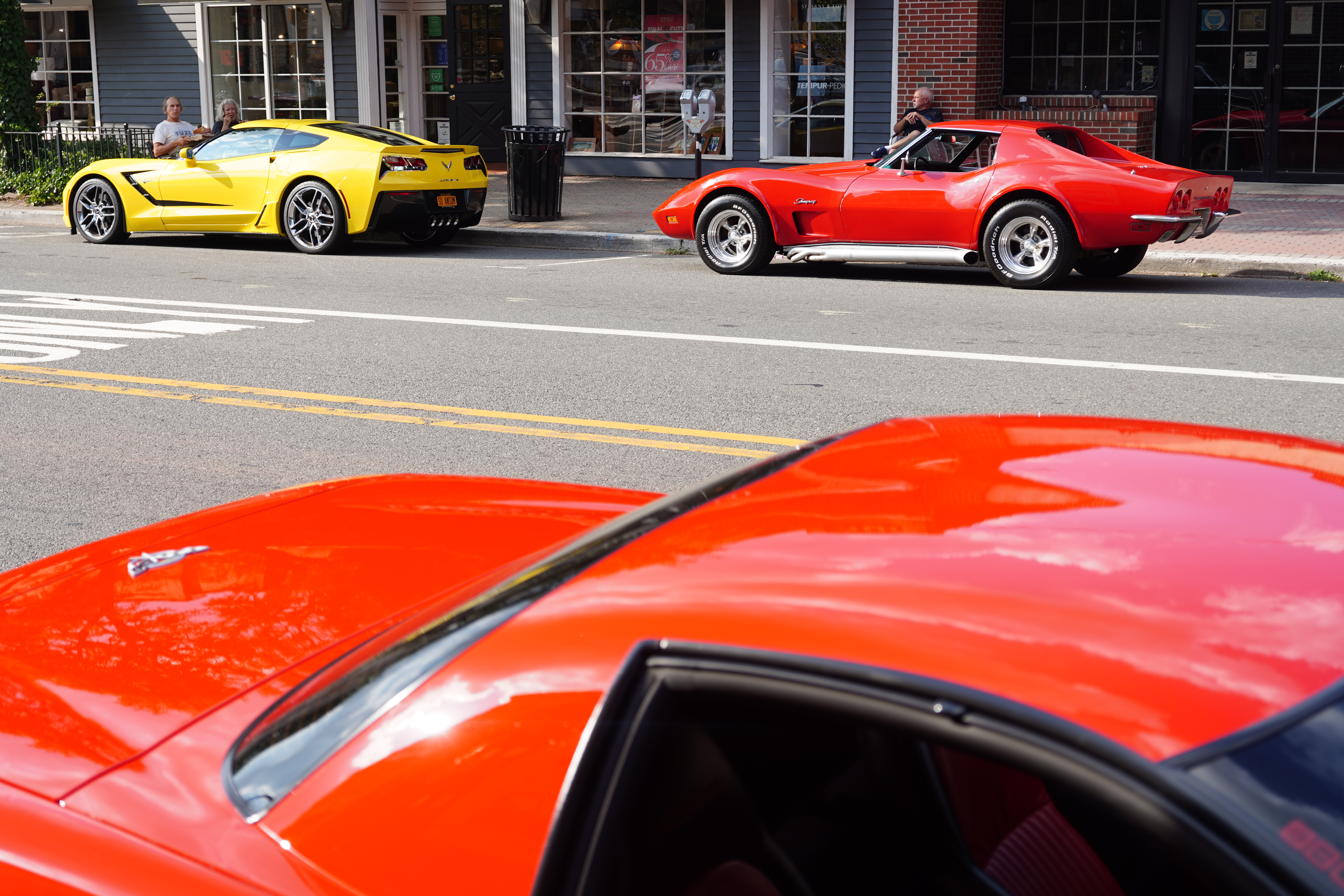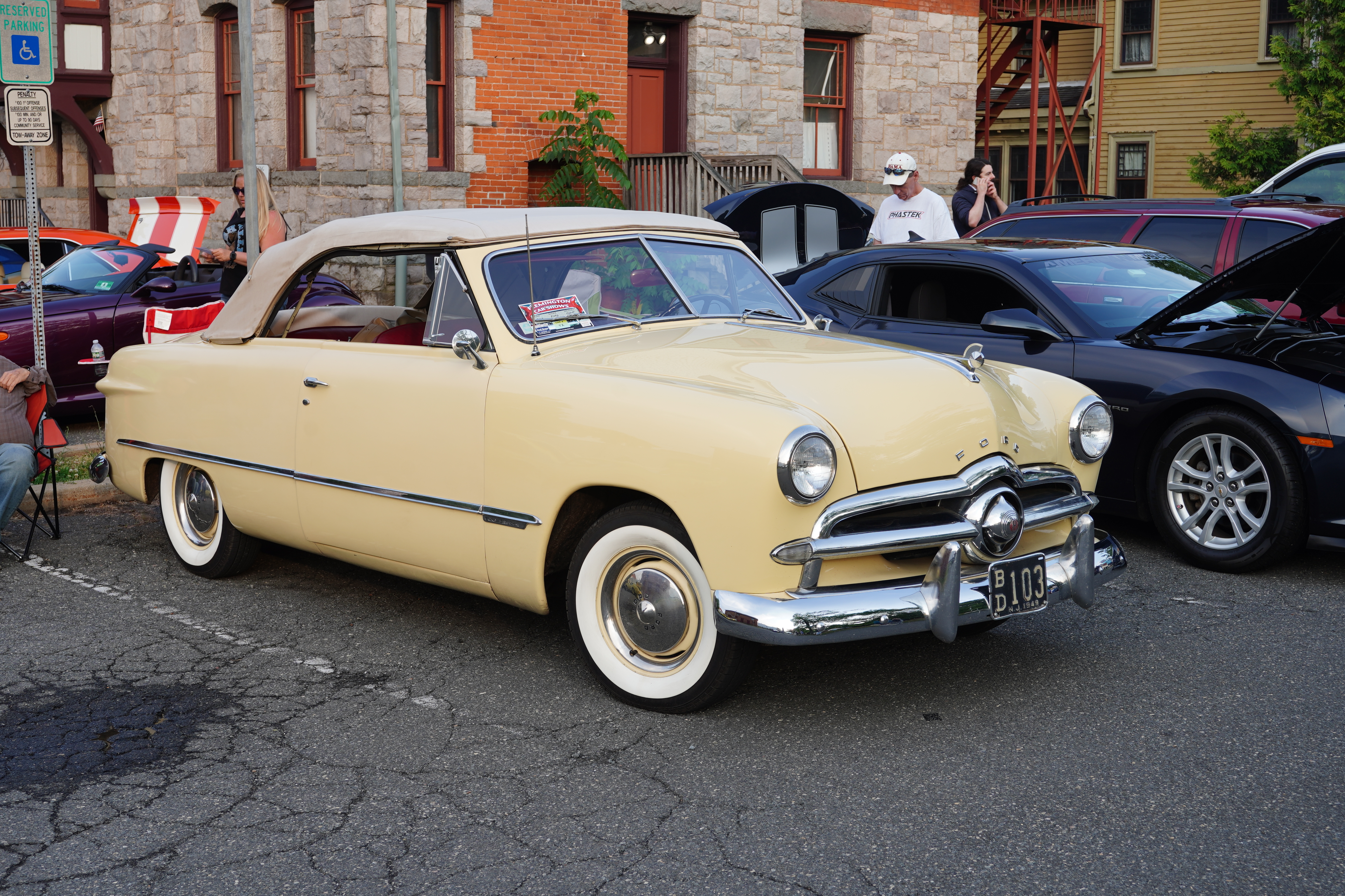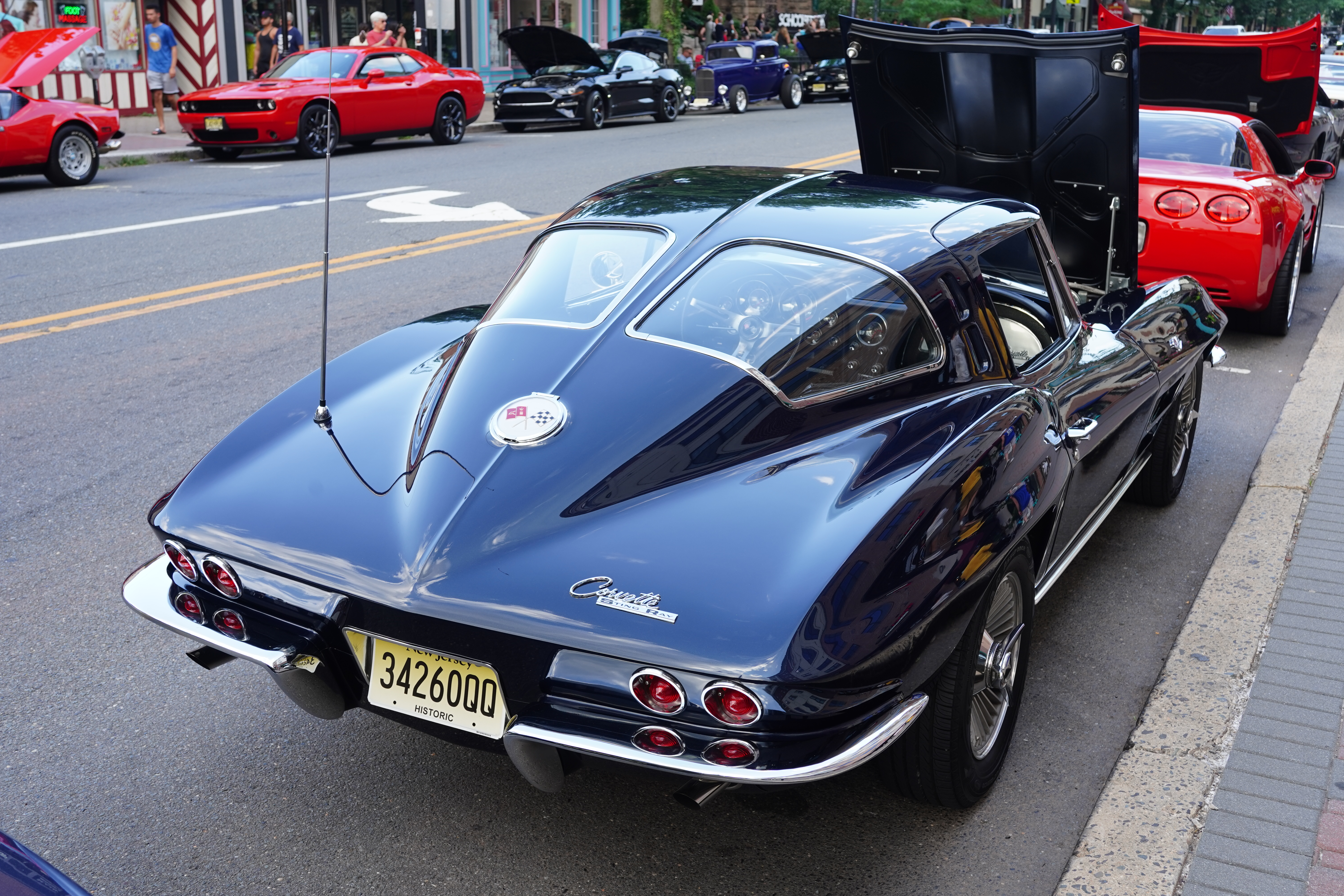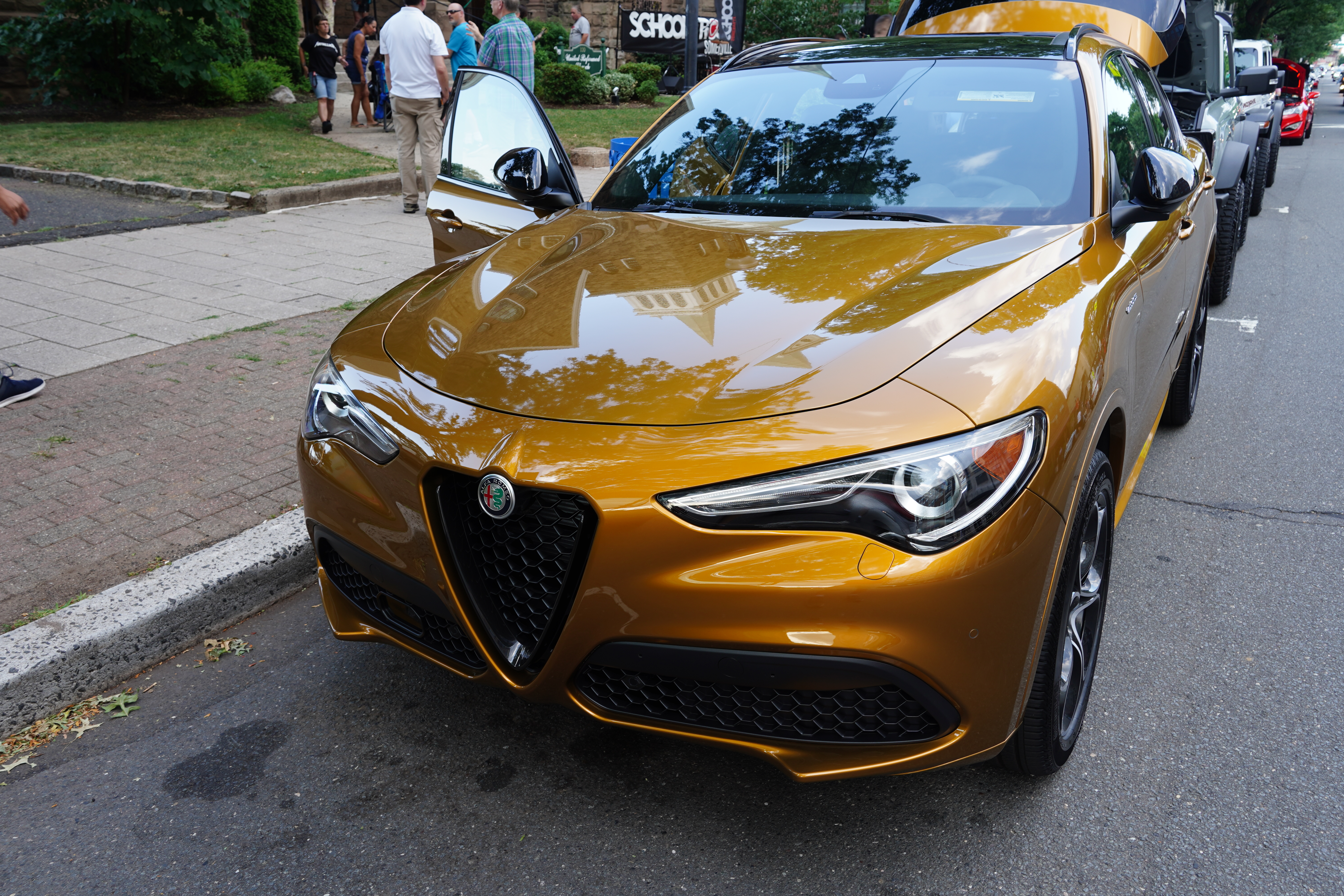 Glancing around, I quickly surmised that my Italian mistress was the only furrin car there. In actuality, most of the cars were either ‘50s and ‘60s muscle cars, or street rods of one kind or another. I felt out of my element until a few other imports showed up. John and I walked the lot together, taking in the variety of vehicles on display, which included not one but two 1940 Fords, an assortment of Thunderbirds, a Triumph, an MG, a Miata, and Corvettes of various vintages. I’m sorry, but if you’re driving a C8 Corvette (and there were several) to a “collector car cruise night,” you’re just showing off. I get the appeal, but a C8 parked next to a C2 makes it blatantly obvious which I’d rather have in my garage.