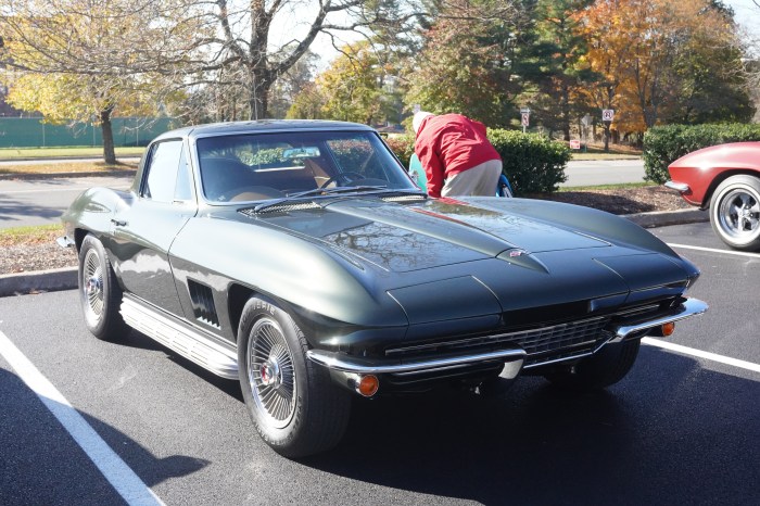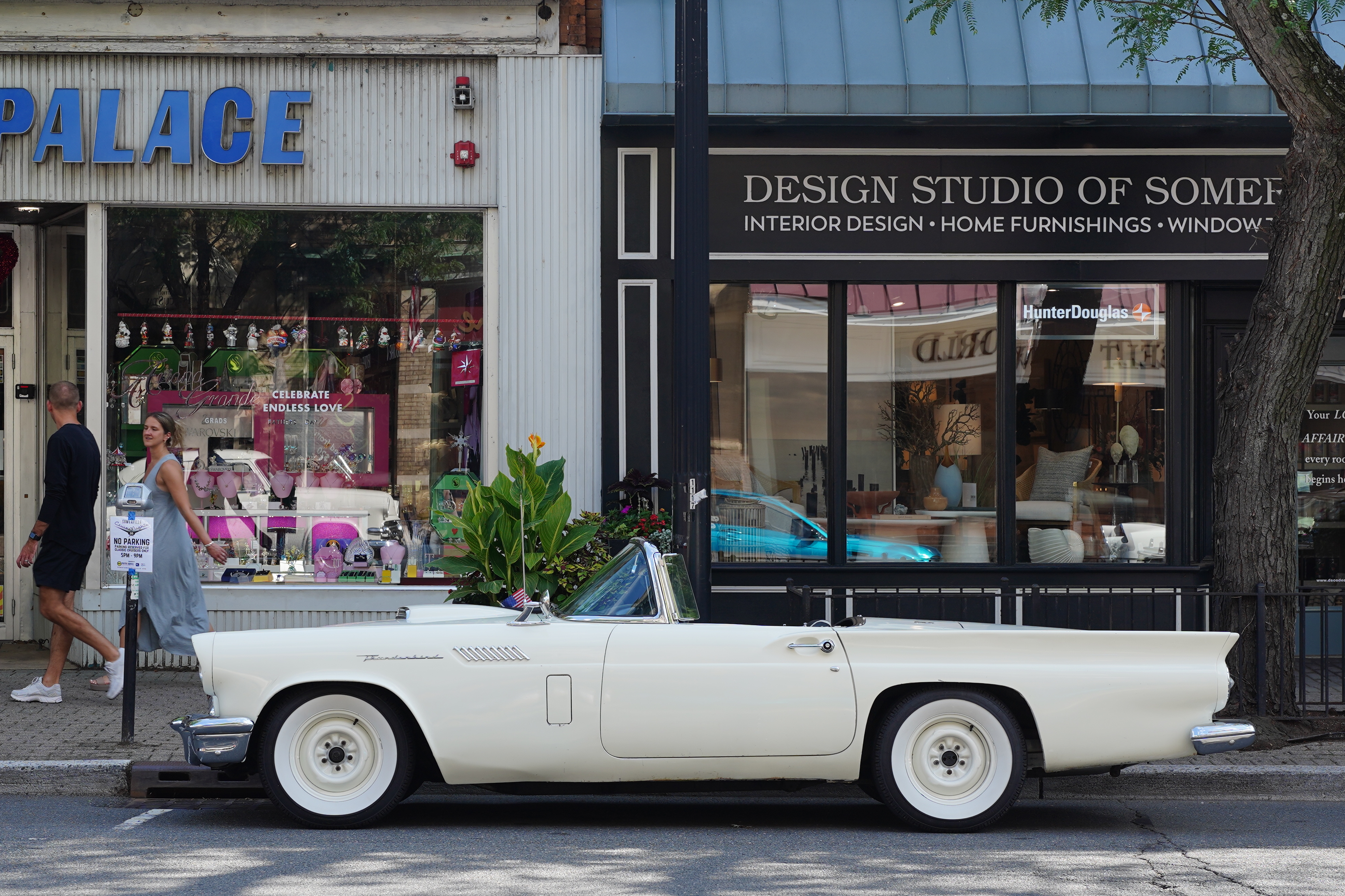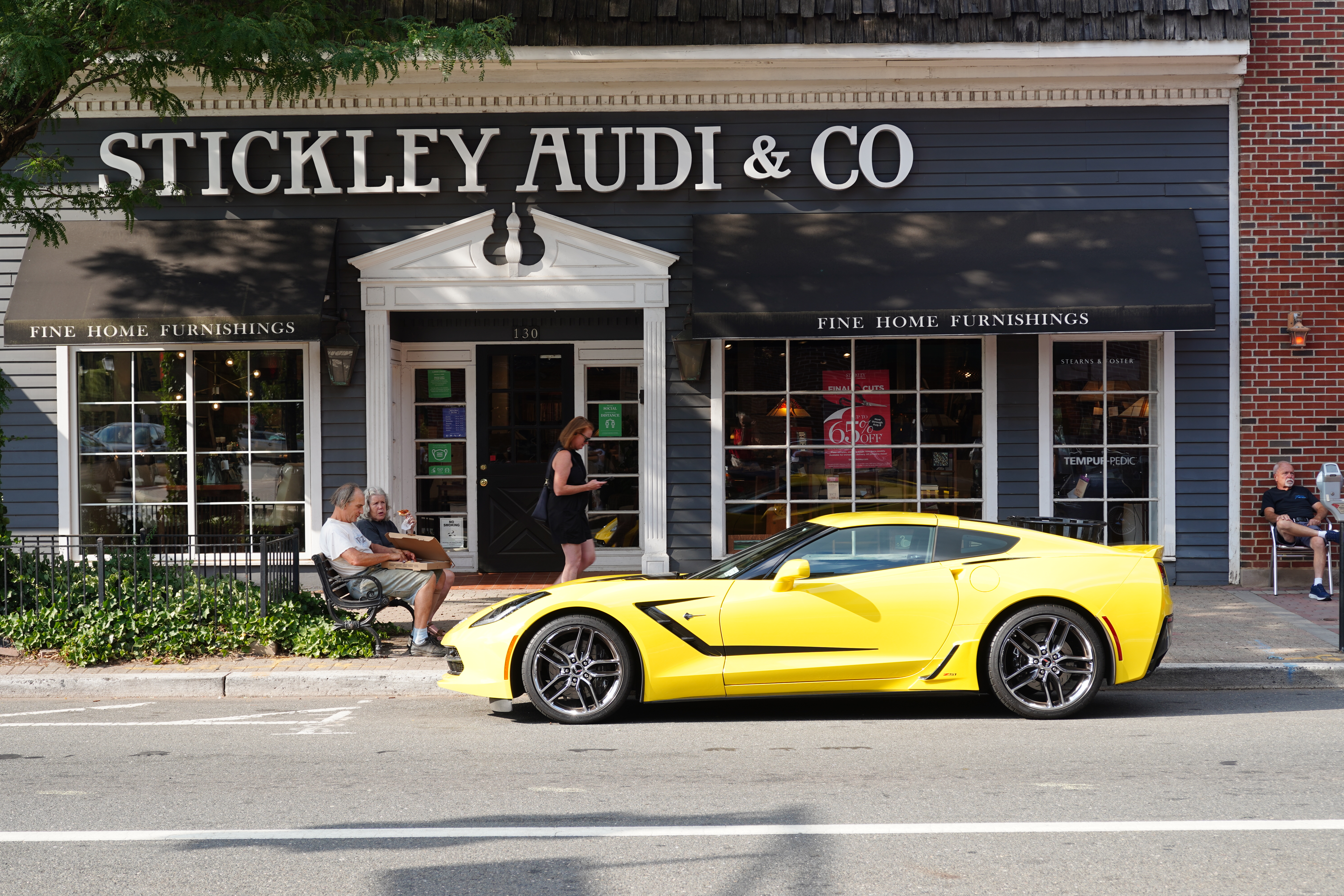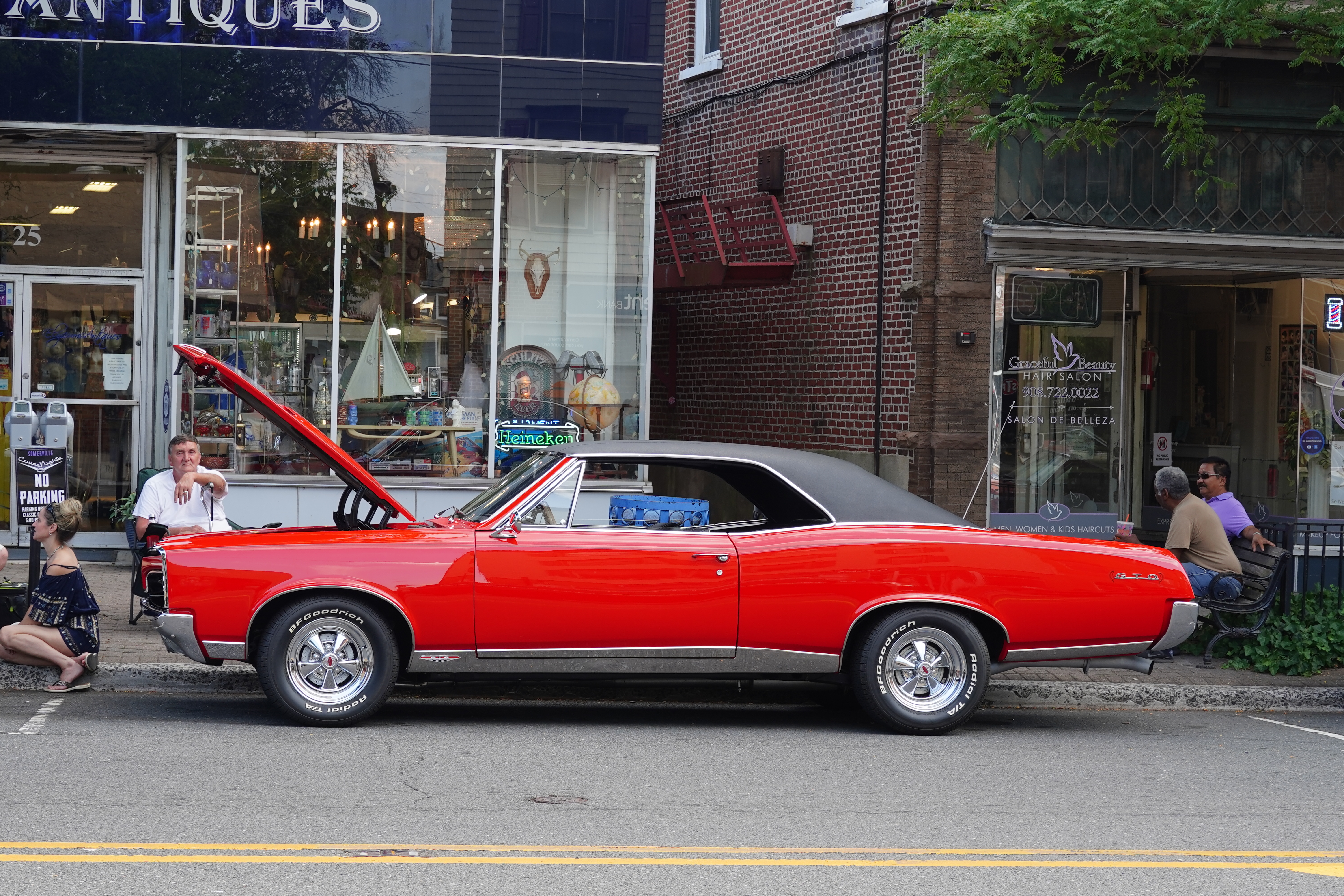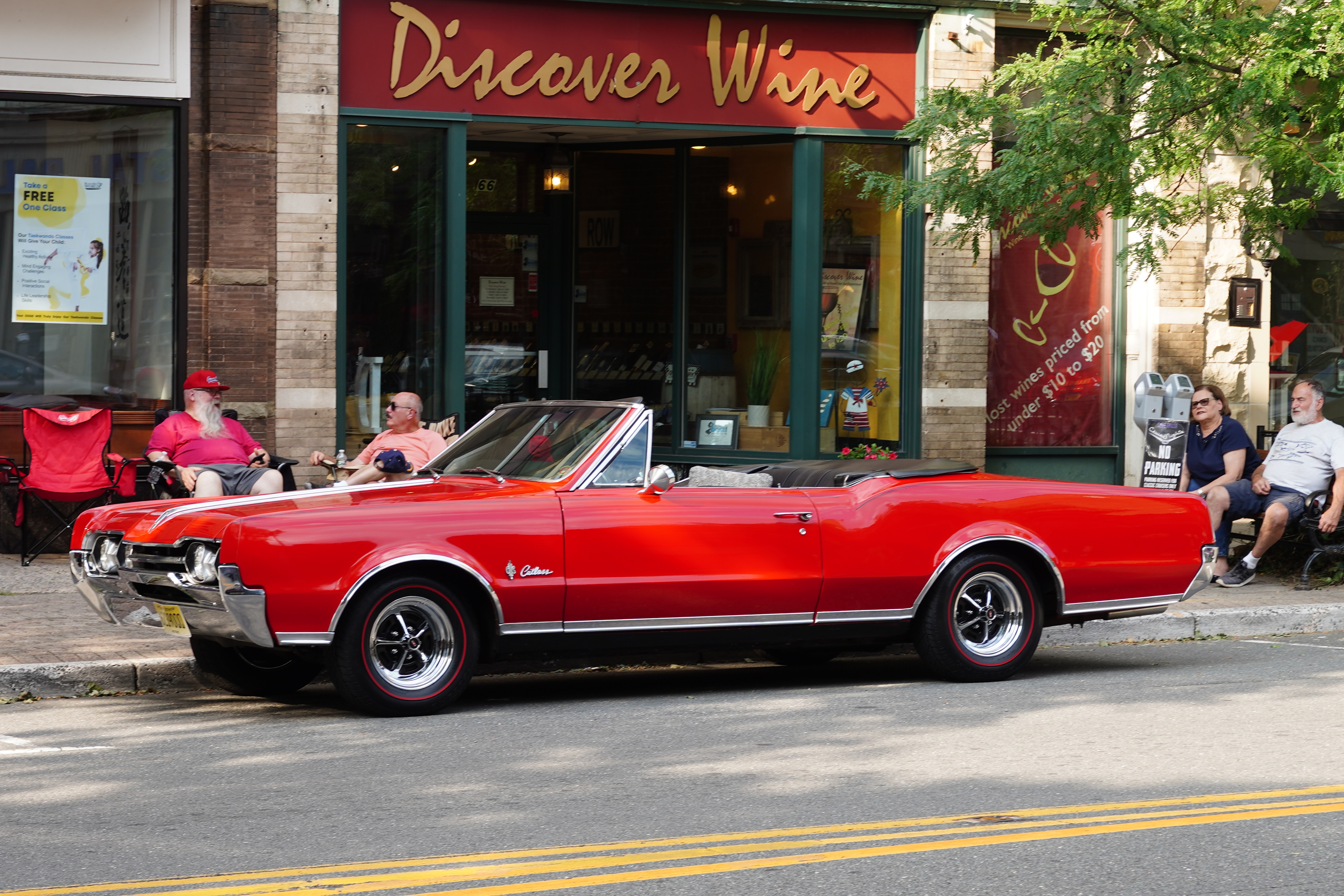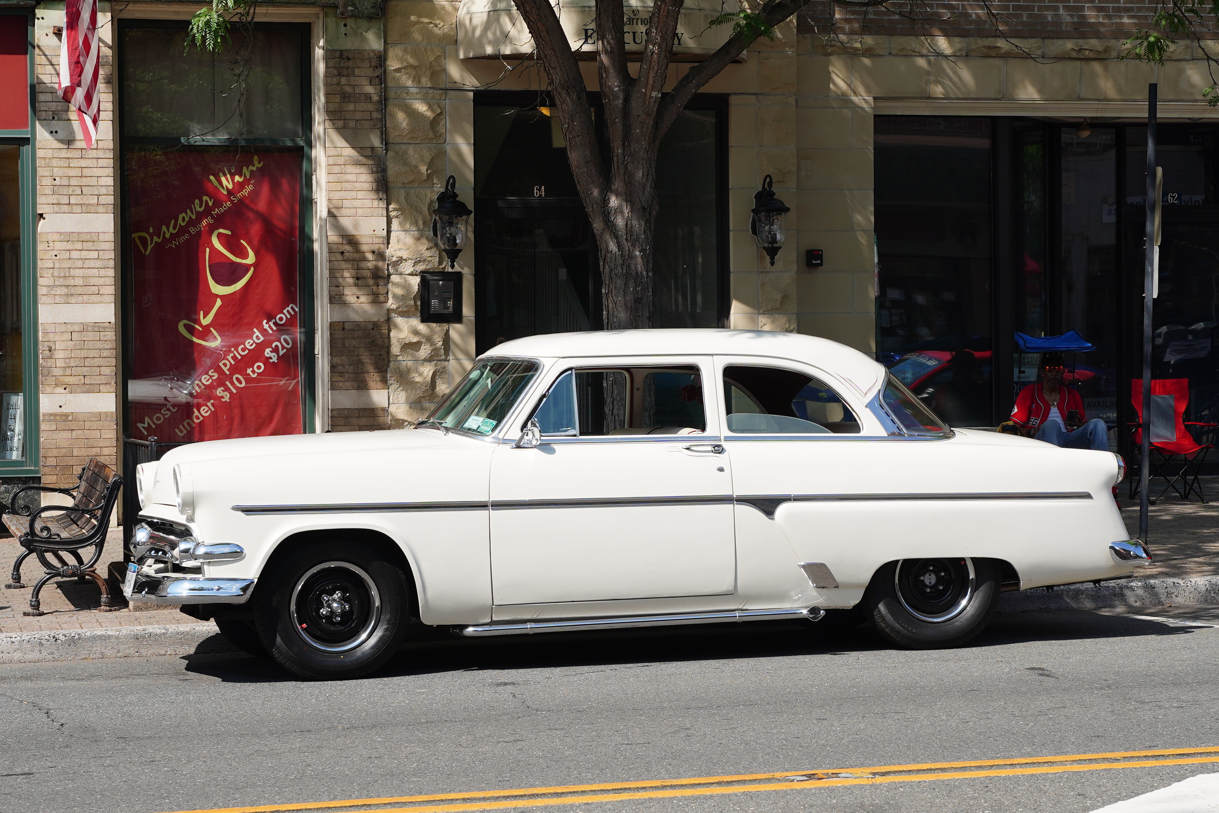 Glancing around, I quickly surmised that my Italian mistress was the only furrin car there. In actuality, most of the cars were either ‘50s and ‘60s muscle cars, or street rods of one kind or another. I felt out of my element until a few other imports showed up. John and I walked the lot together, taking in the variety of vehicles on display, which included not one but two 1940 Fords, an assortment of Thunderbirds, a Triumph, an MG, a Miata, and Corvettes of various vintages. I’m sorry, but if you’re driving a C8 Corvette (and there were several) to a “collector car cruise night,” you’re just showing off. I get the appeal, but a C8 parked next to a C2 makes it blatantly obvious which I’d rather have in my garage.
