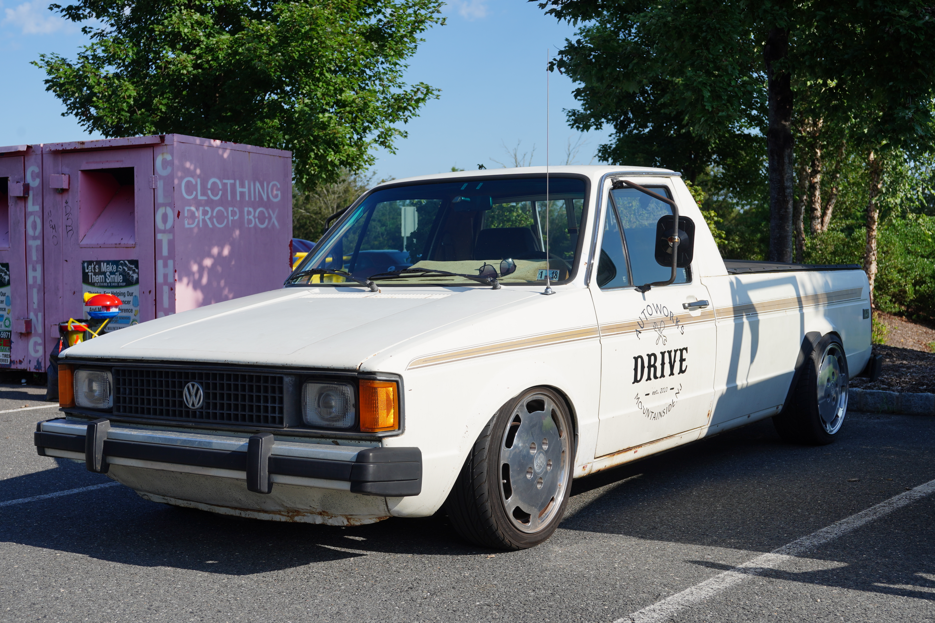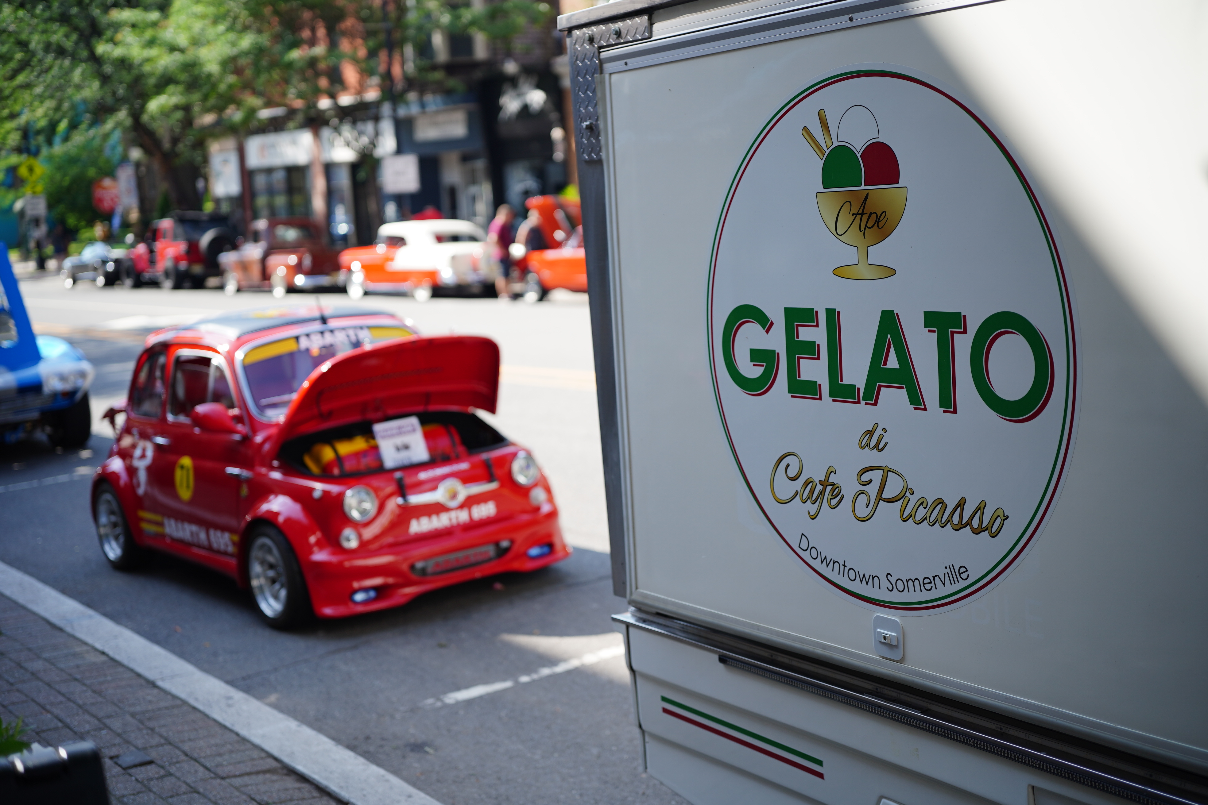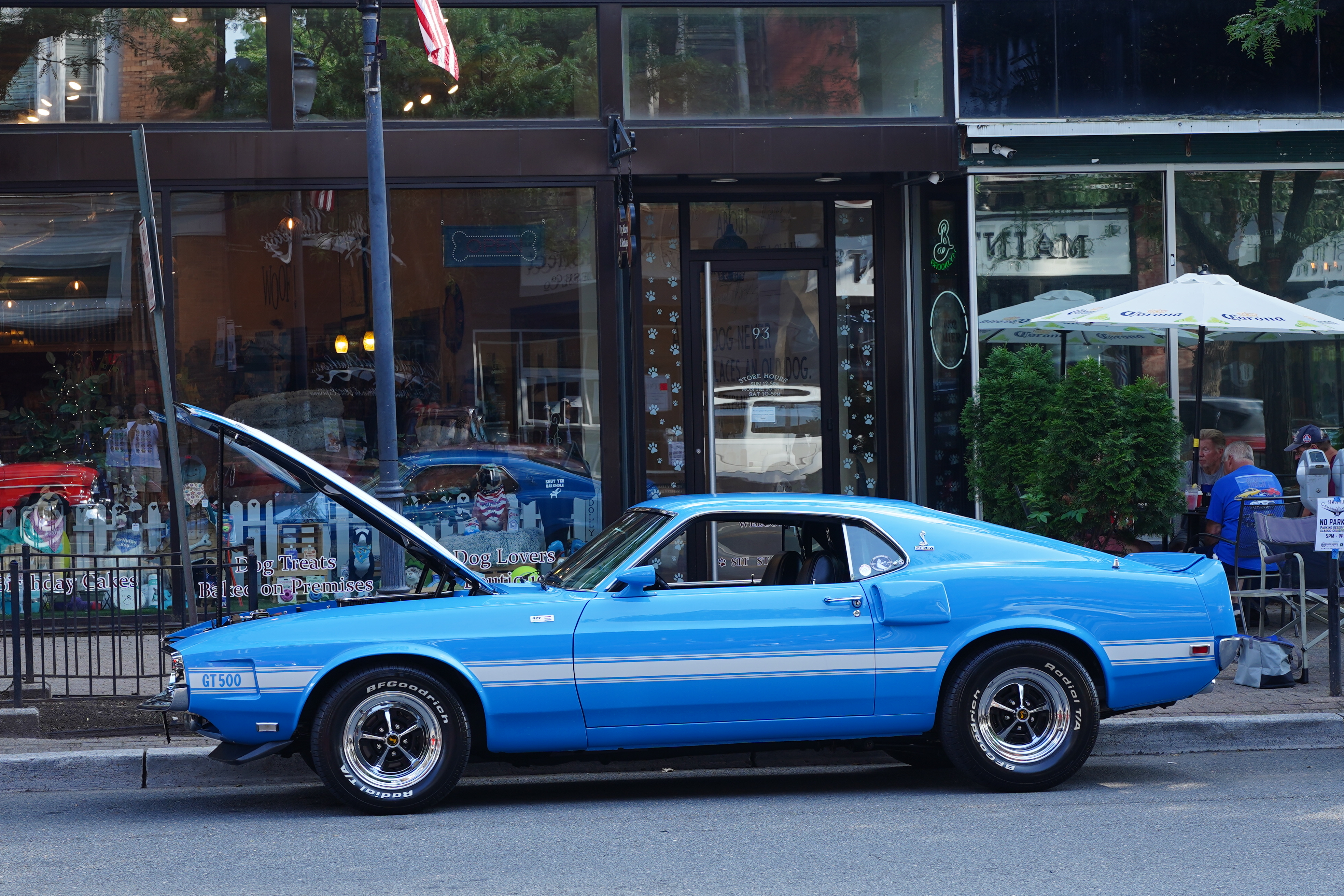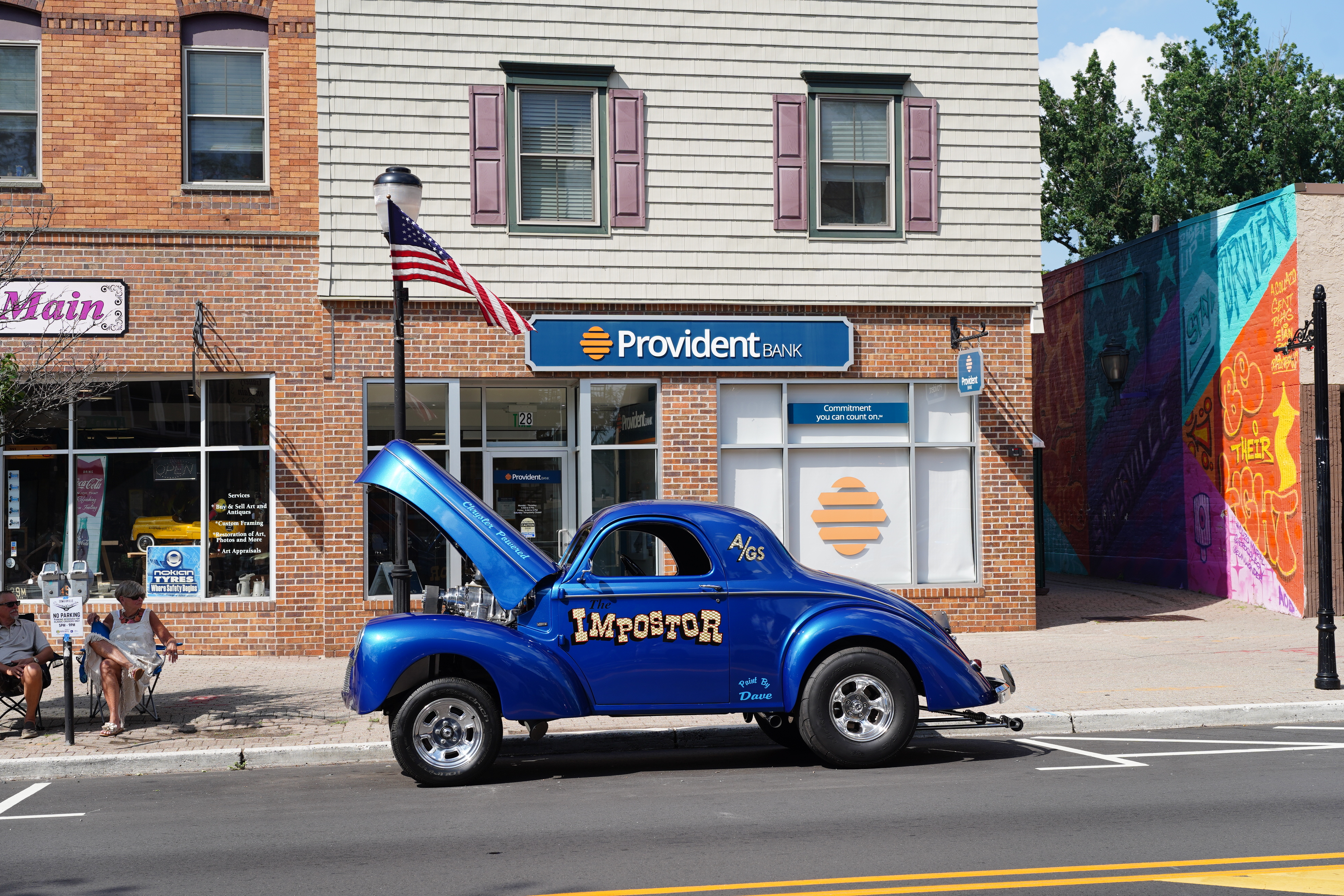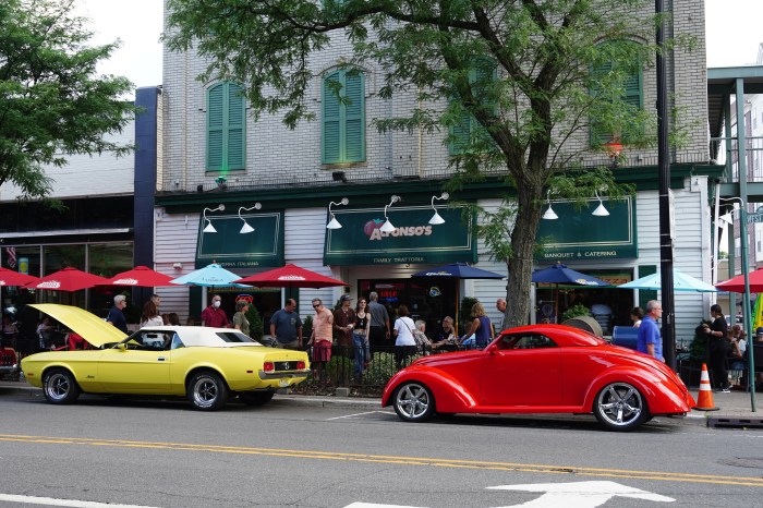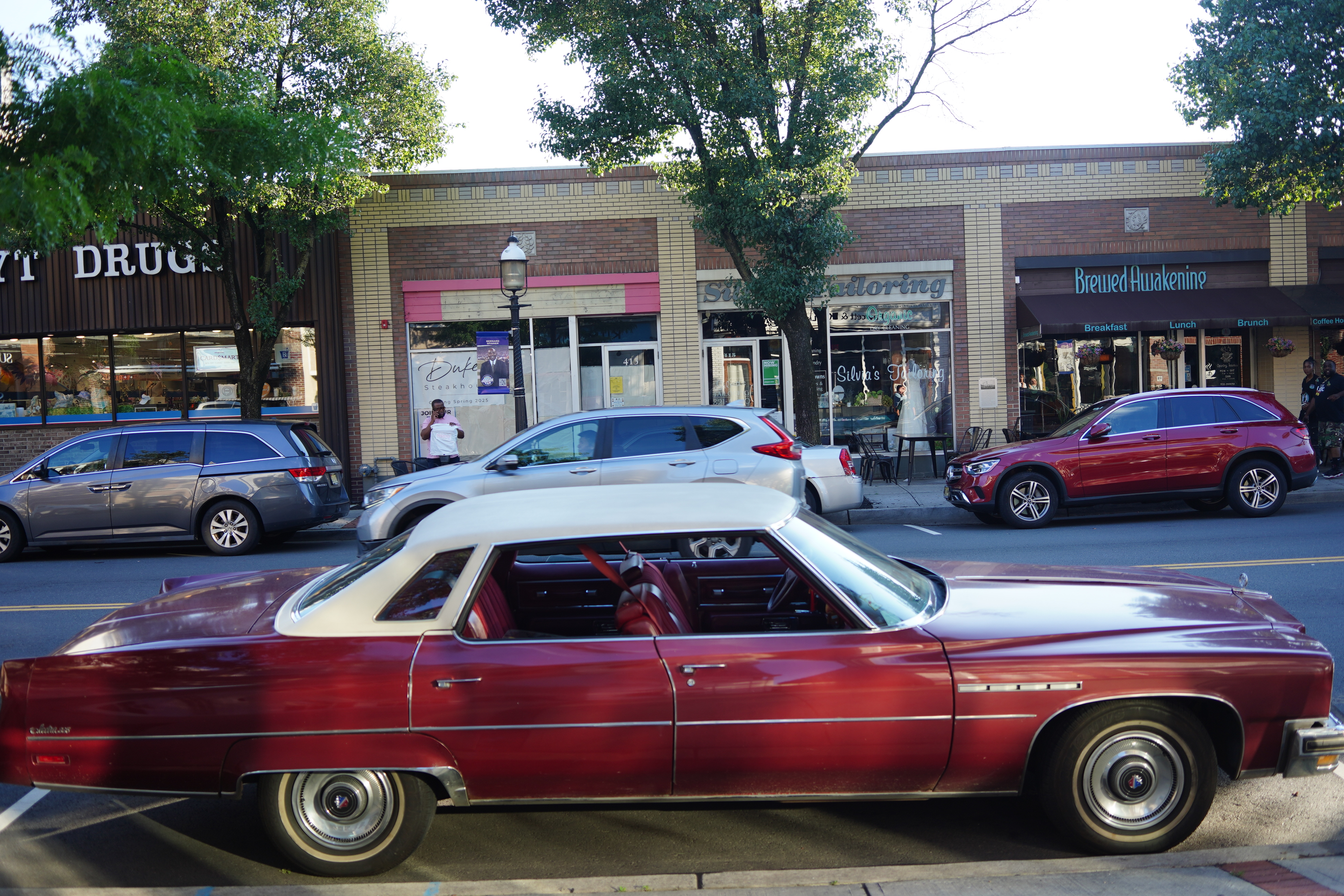 Glancing around, I quickly surmised that my Italian mistress was the only furrin car there. In actuality, most of the cars were either ‘50s and ‘60s muscle cars, or street rods of one kind or another. I felt out of my element until a few other imports showed up. John and I walked the lot together, taking in the variety of vehicles on display, which included not one but two 1940 Fords, an assortment of Thunderbirds, a Triumph, an MG, a Miata, and Corvettes of various vintages. I’m sorry, but if you’re driving a C8 Corvette (and there were several) to a “collector car cruise night,” you’re just showing off. I get the appeal, but a C8 parked next to a C2 makes it blatantly obvious which I’d rather have in my garage.