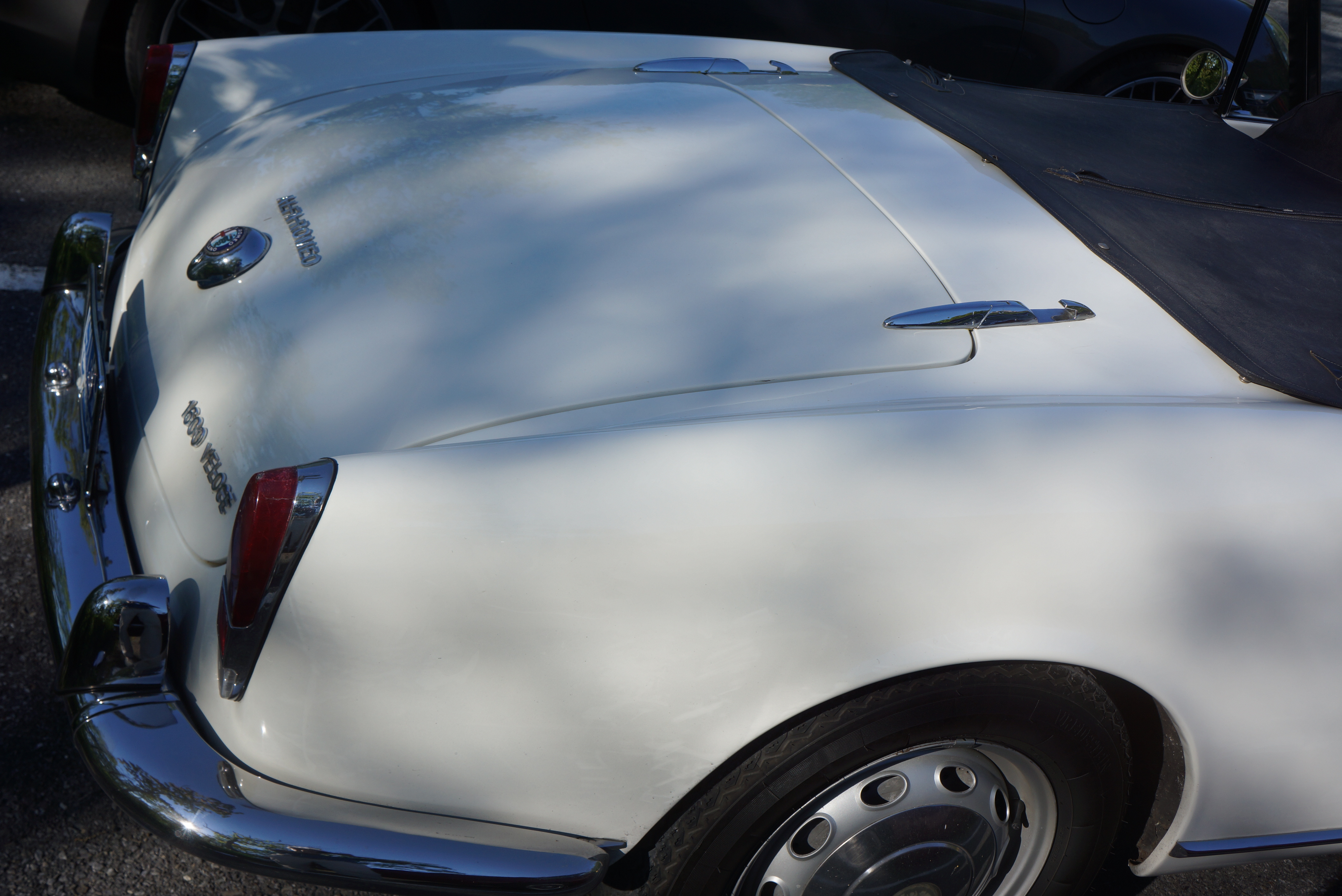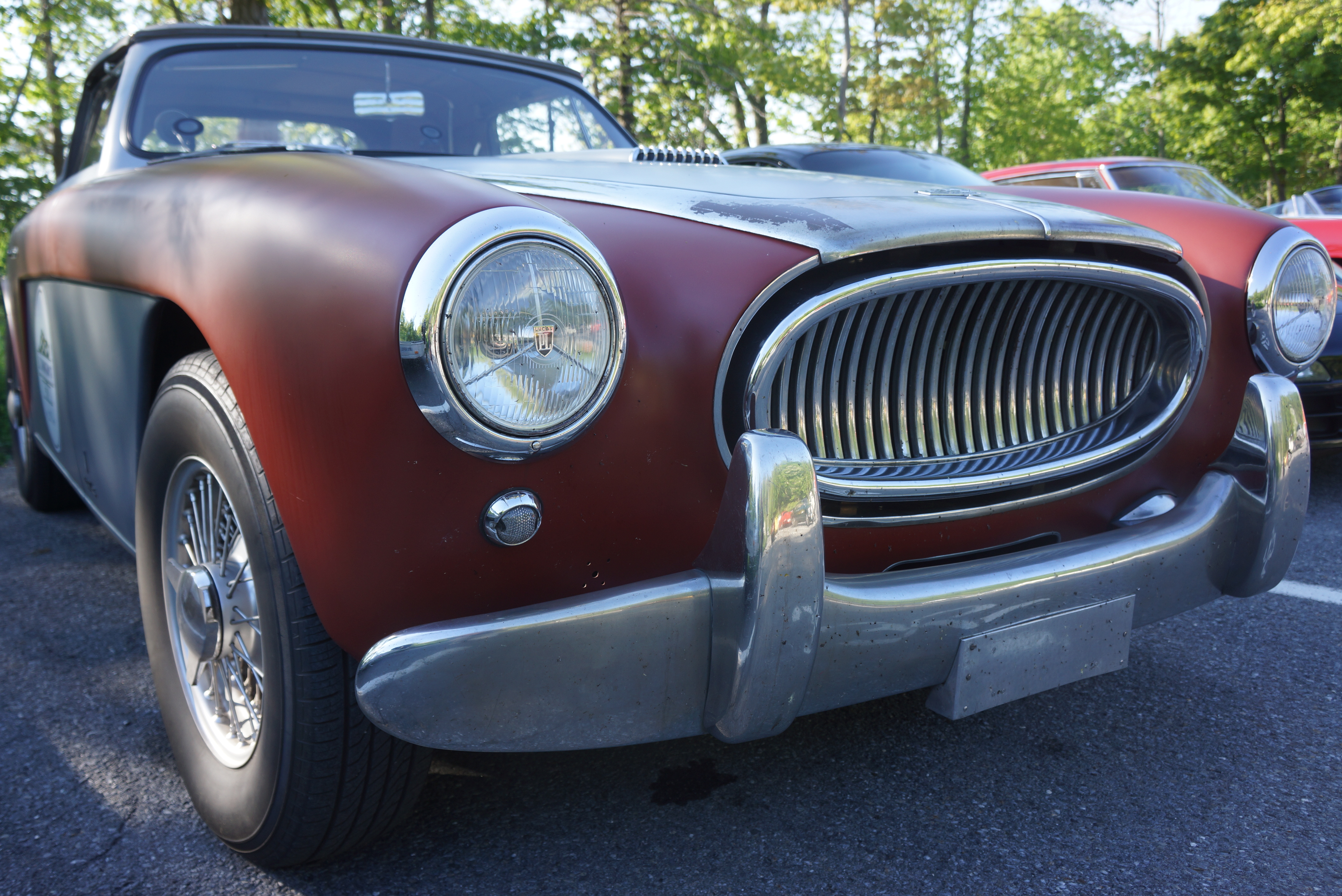 My wife and I were going to be headed to our grandson’s baseball game in a short while, so my time to gaze and chat was limited, but I did manage to fire off several shots with my always-available phone camera. It was great to see old sports cars on the road, being used as their makers intended them to be!