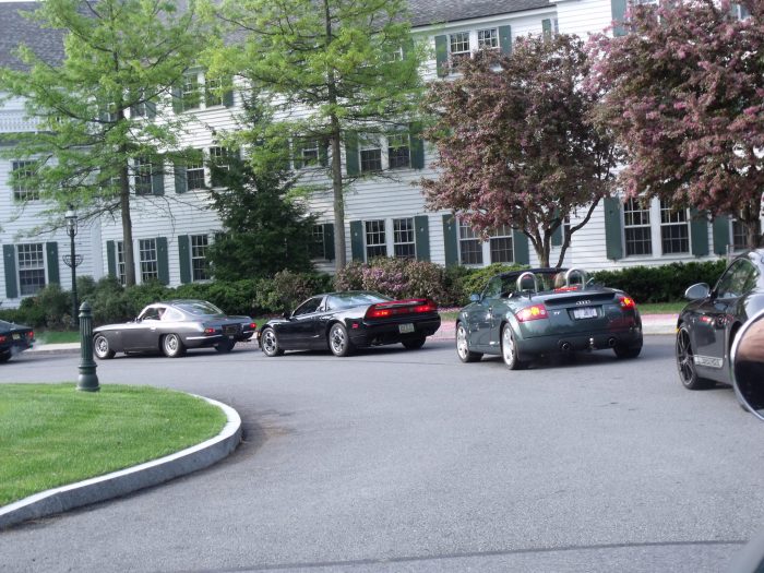 Every year, the rally events begin with an informal “concours” on the hotel property, done as much for the owners to show off as to present our wares to the hotel guests and public. At Mohonk, we were crowded onto a narrow walkway.