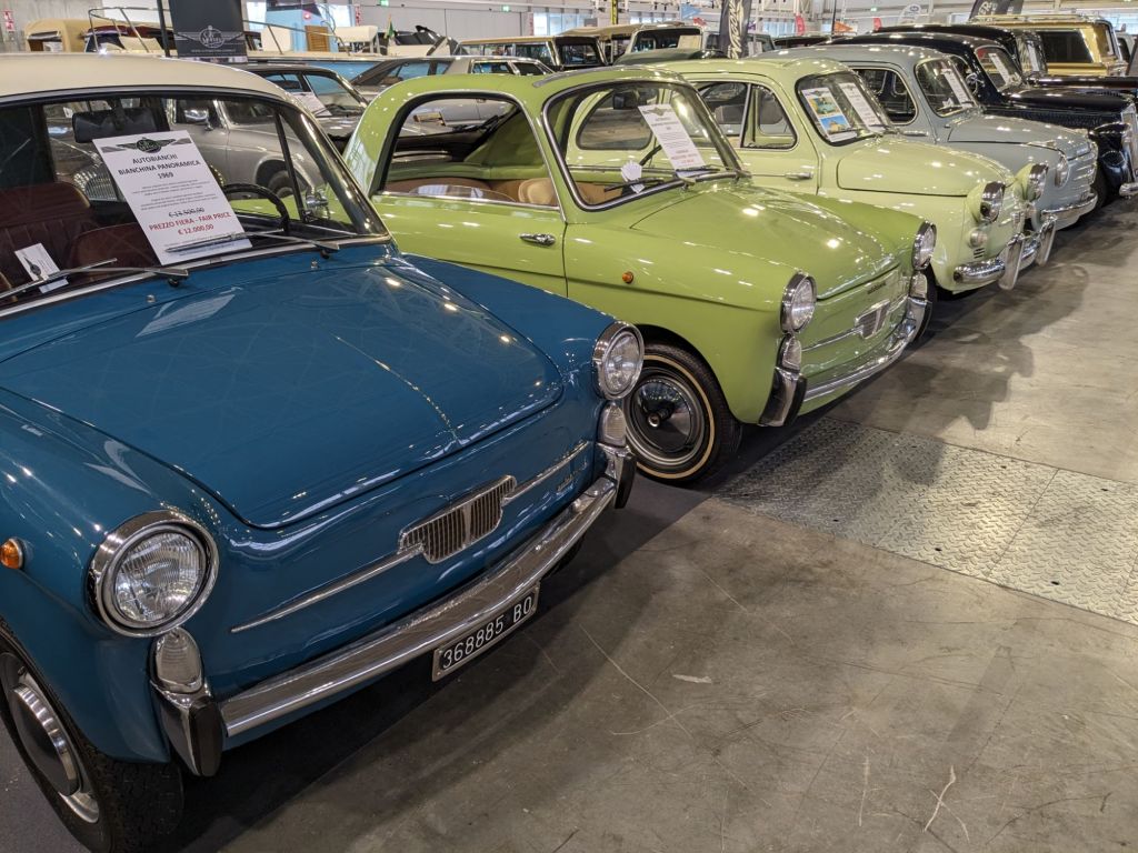Today was opening day for the Auto Moto d’Epoca. I have been to hundreds of car shows, and I am overwhelmed. This is quite possibly the greatest car show I have ever attended: Dozens and dozens of Italian cars, many of which I have not seen on US roads in 40 or 50 years, and many I’ve only seen in photographs before this.
