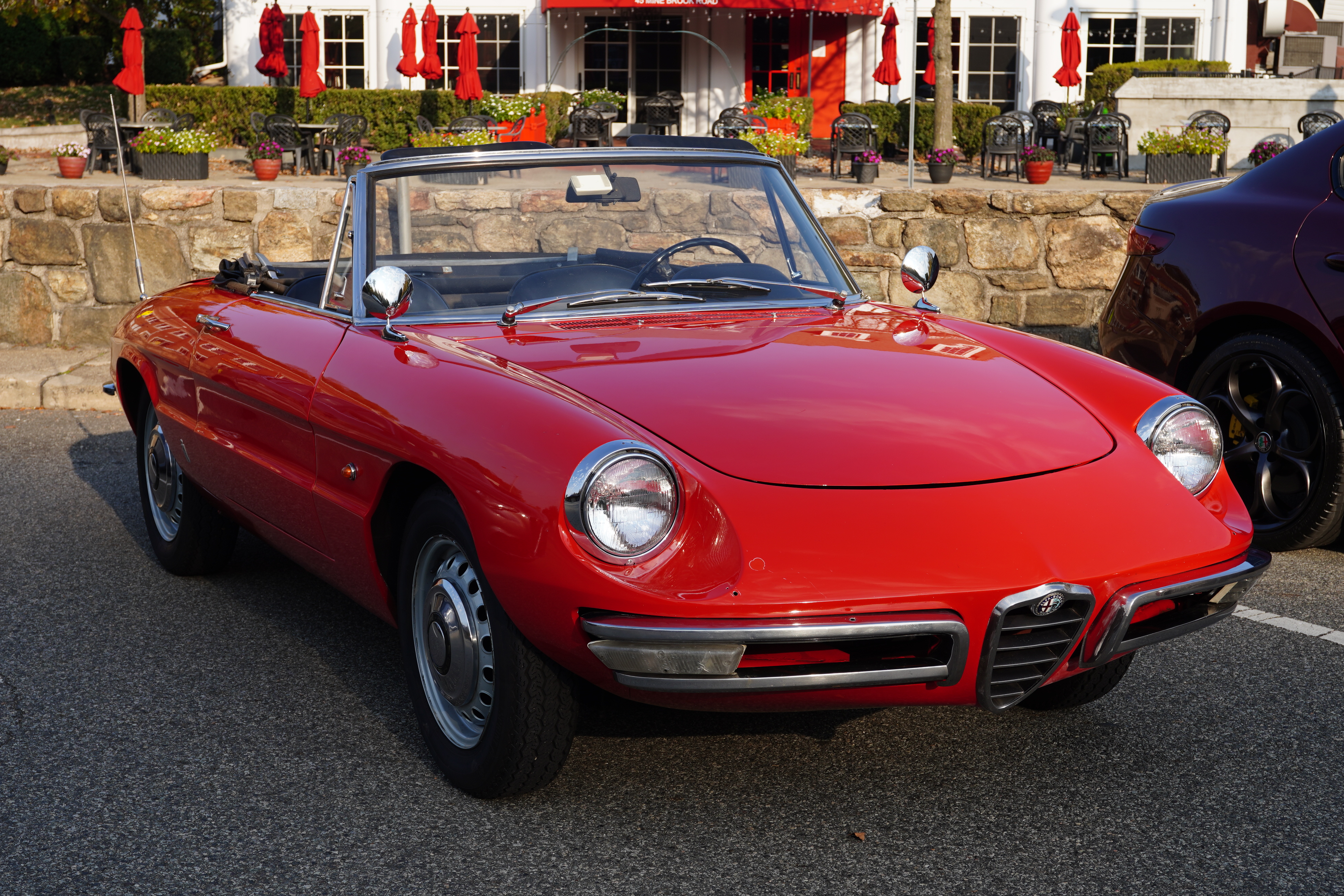 Besides Bill’s 164 and my Bertone coupe, other classic Alfas included two Spiders. Modern machinery in addition to the Italian Hornet and the Abarth included a Guilia sedan and a 4C. I will again comment how wonderful it is to be part of a club where both older and newer models of the same marque are equally welcome (and all kidding aside, we also open our arms to drivers of anything Italian).