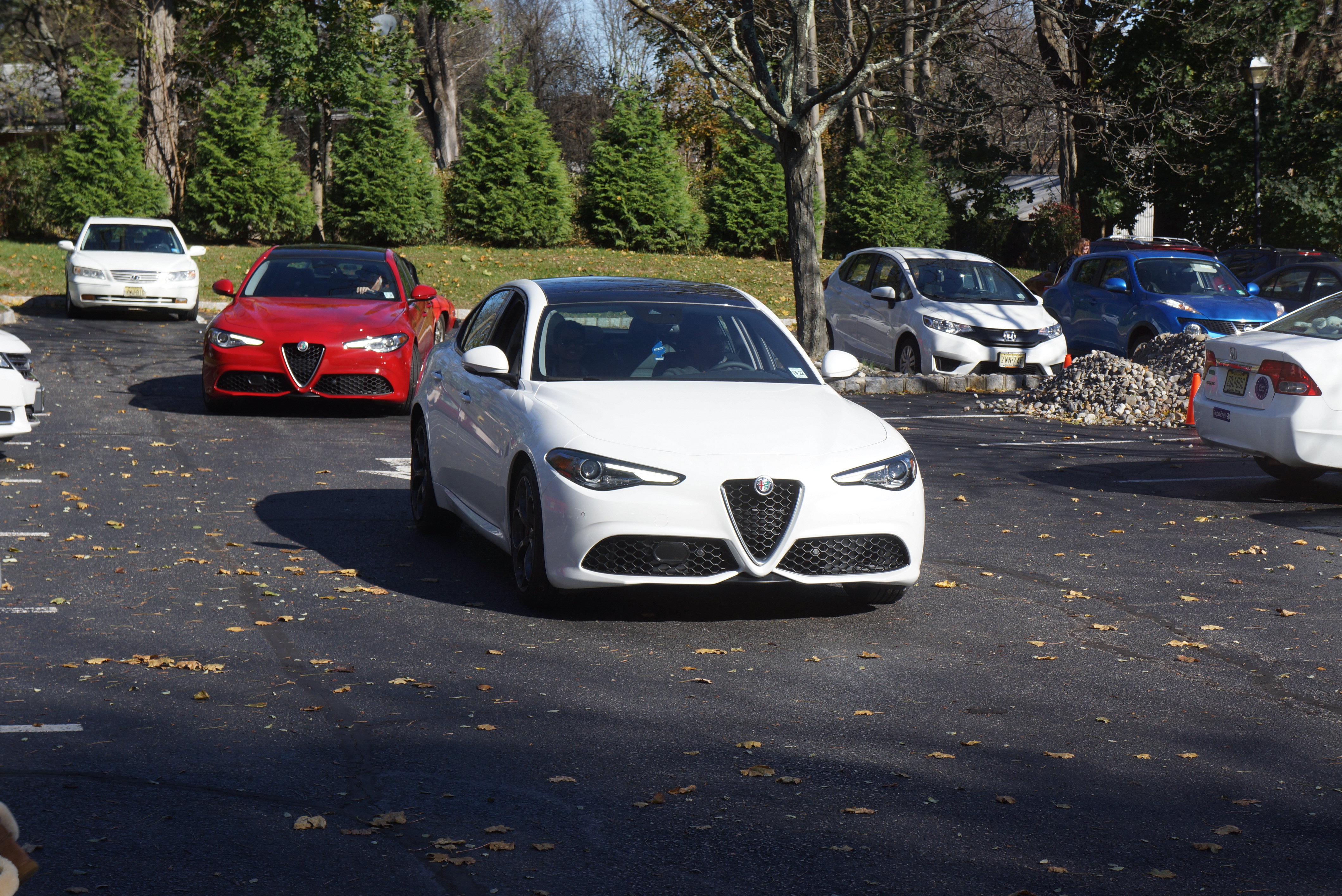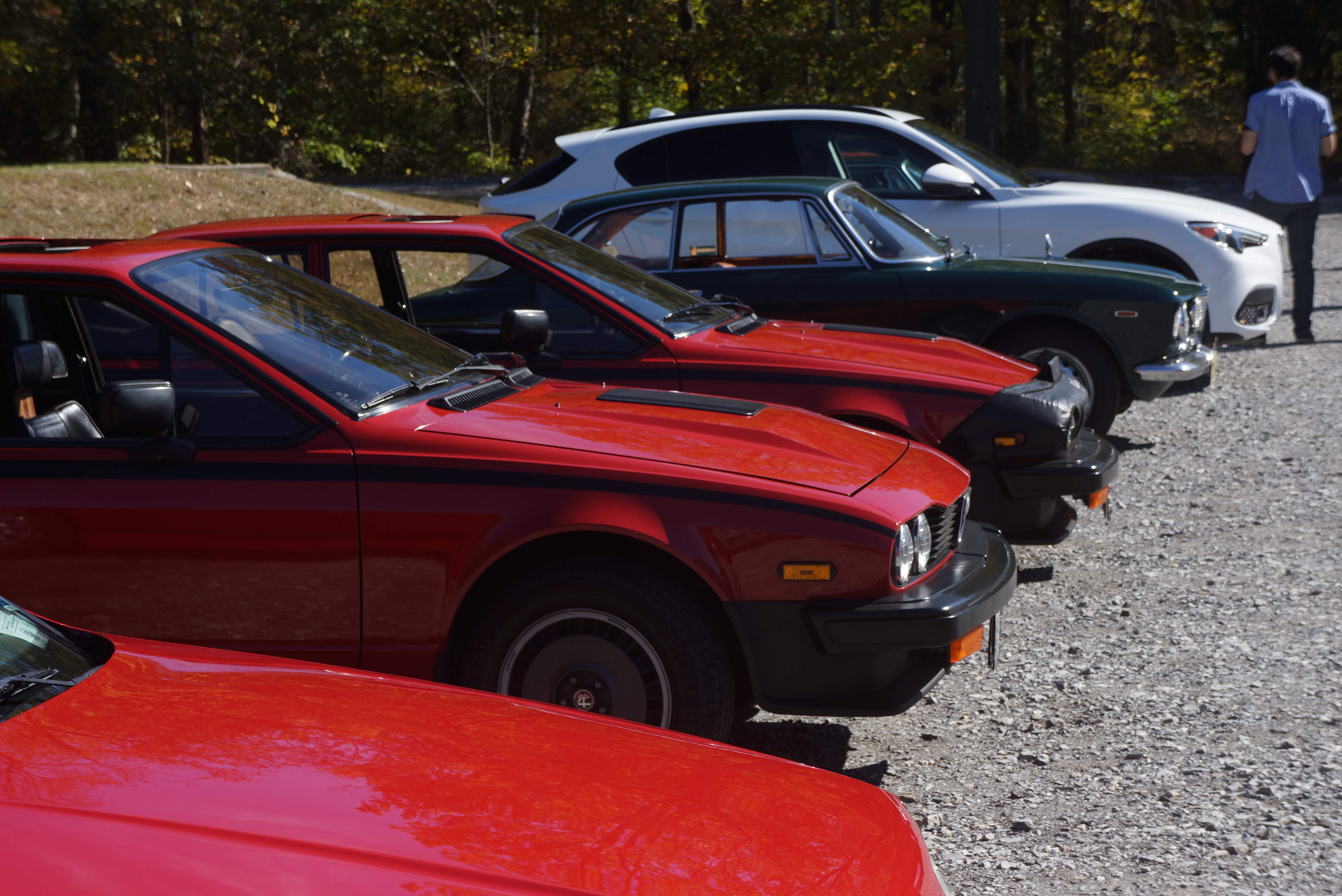 The rough count of participatory vehicles was 23. It was especially delightful to see the wide variety of models represented. The oldest car was a Giulietta spider. The numerous Giulia coupes and Duettos were hard to miss. The decades of the ‘70s and ‘80s were well-represented by Alfetta coupes and an Alfetta sedan. There was one example each of the Milano and the 164. Plentiful late-model Spiders took advantage of the top-down weather. There were perhaps four or five new Giulia sedans, and the dealer sent a Stelvio to be used as a photo/chase car.