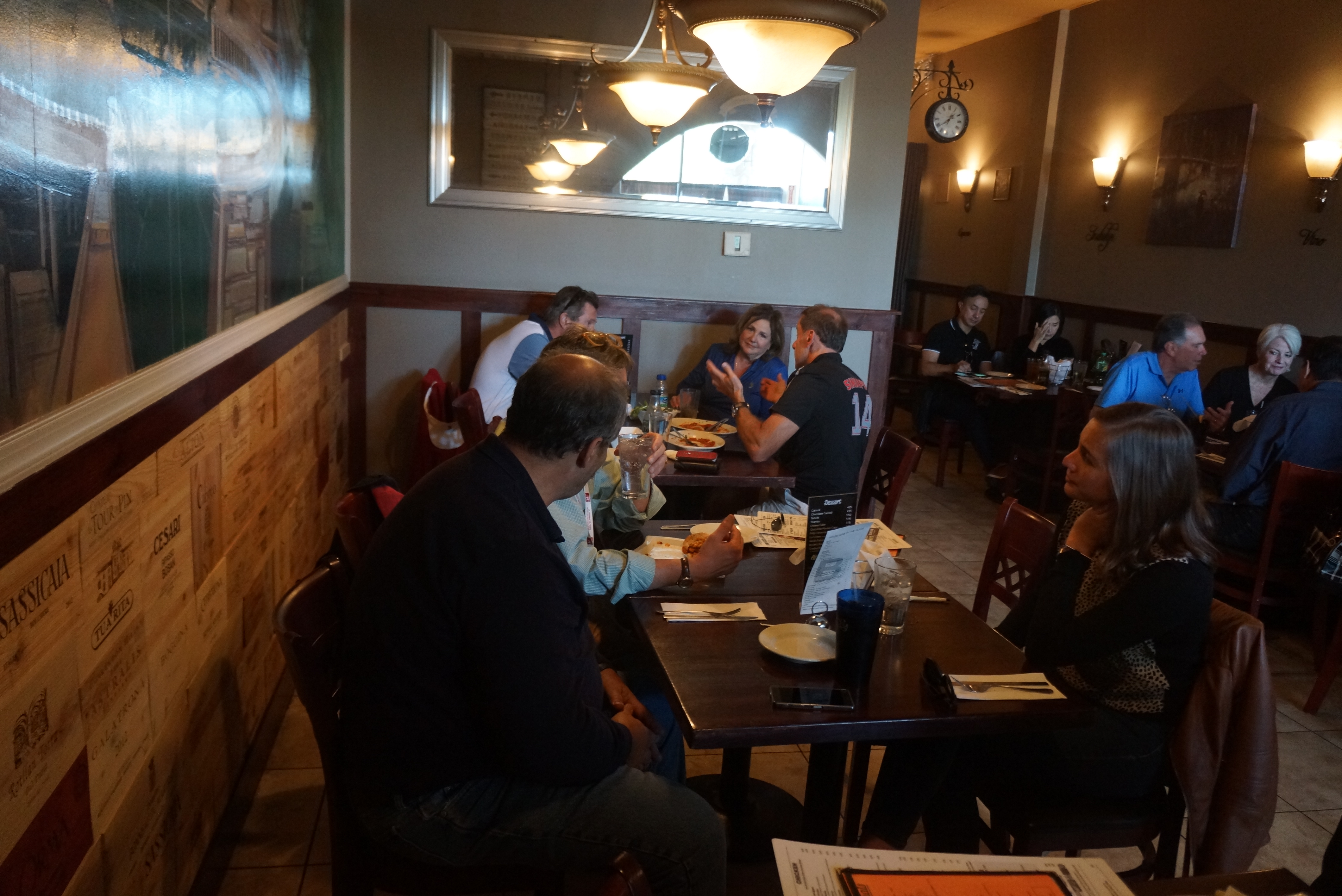 Brother Bruno’s was in a strip mall with ample parking; the club actually cordoned off a row of spots so the cars could park together, and remain distant from the non-Alfas in the lot. Lunch was Italian food (of course), and one person at our table commented that the day was being spent doing just what Italians like to do: drive, talk, and eat!