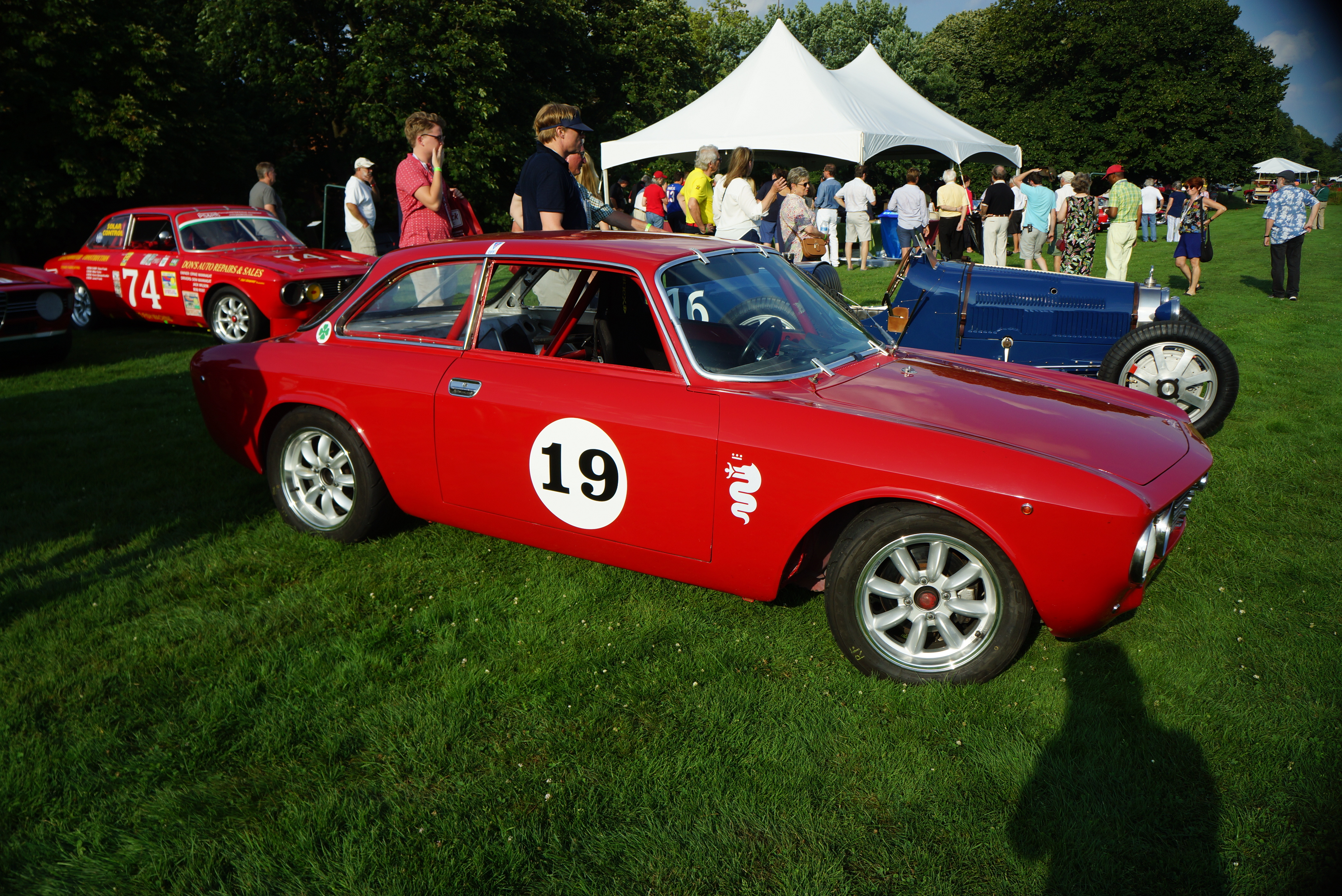 Let’s get this bit of disappointing news out of the way: while this Alfista was in attendance, his ’67 Alfa GT Junior was not. Four days before the scheduled departure, the car’s right front brake caliper locked up, and although repair parts were obtained, there wasn’t enough time to effect a safe and sufficient repair. So the green stepnose stayed home. Every cloud, though, has its silver lining, and in this case, I drove a modern car with fully functioning climate control in the 99 degree weather. (The brake failure and its ongoing repairs will be the subject of future blog posts.)